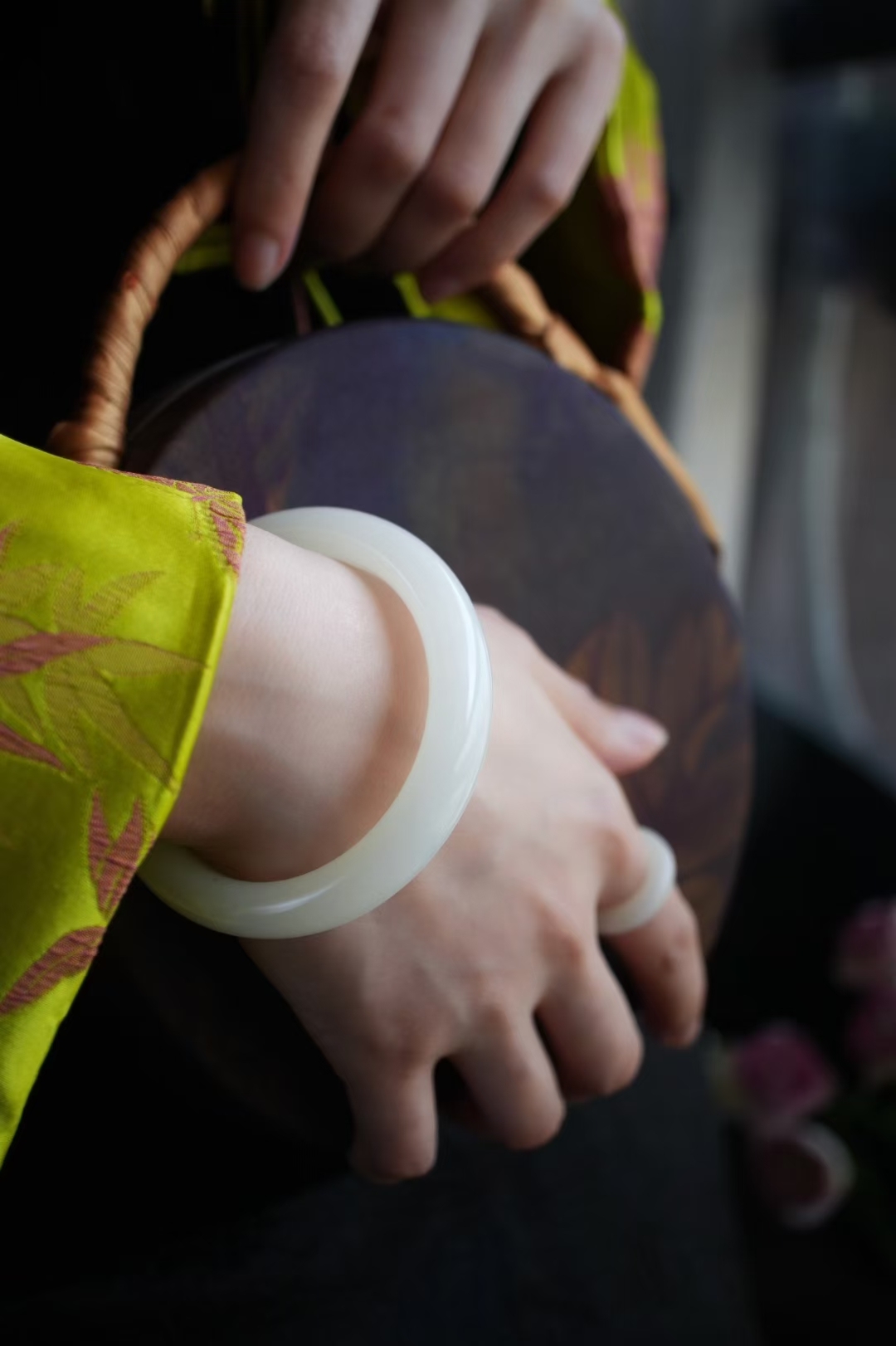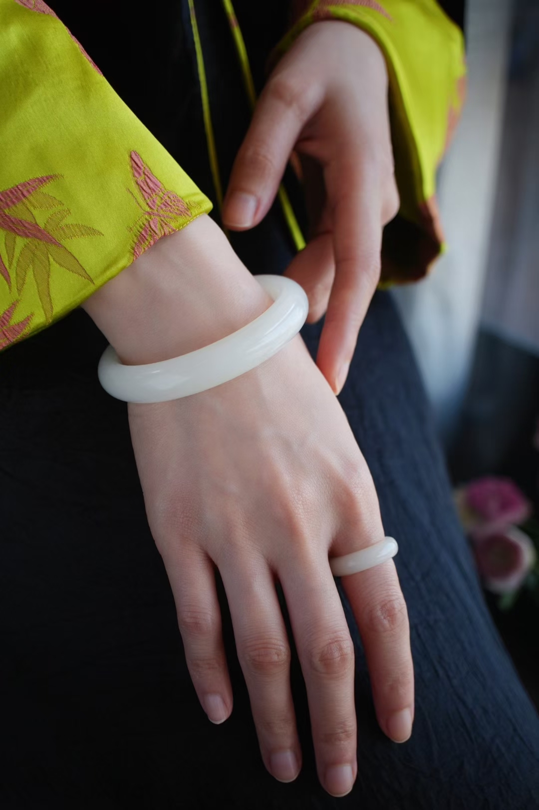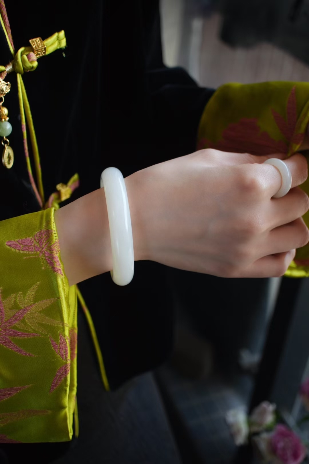 和田玉,俄料羊脂玉,老坑料,白度達羊脂,細膩溫潤,打燈看微微棉紋結構,一處天然桂花糖點,完美無紋裂,性價比巨高了,上手優雅婉約,年輕女生也能駕馭的古典美。