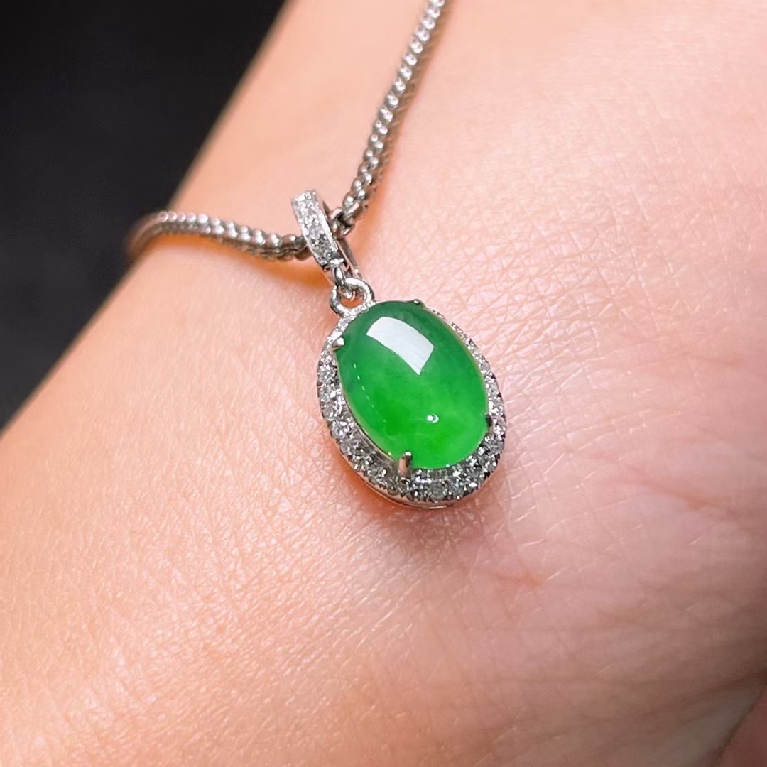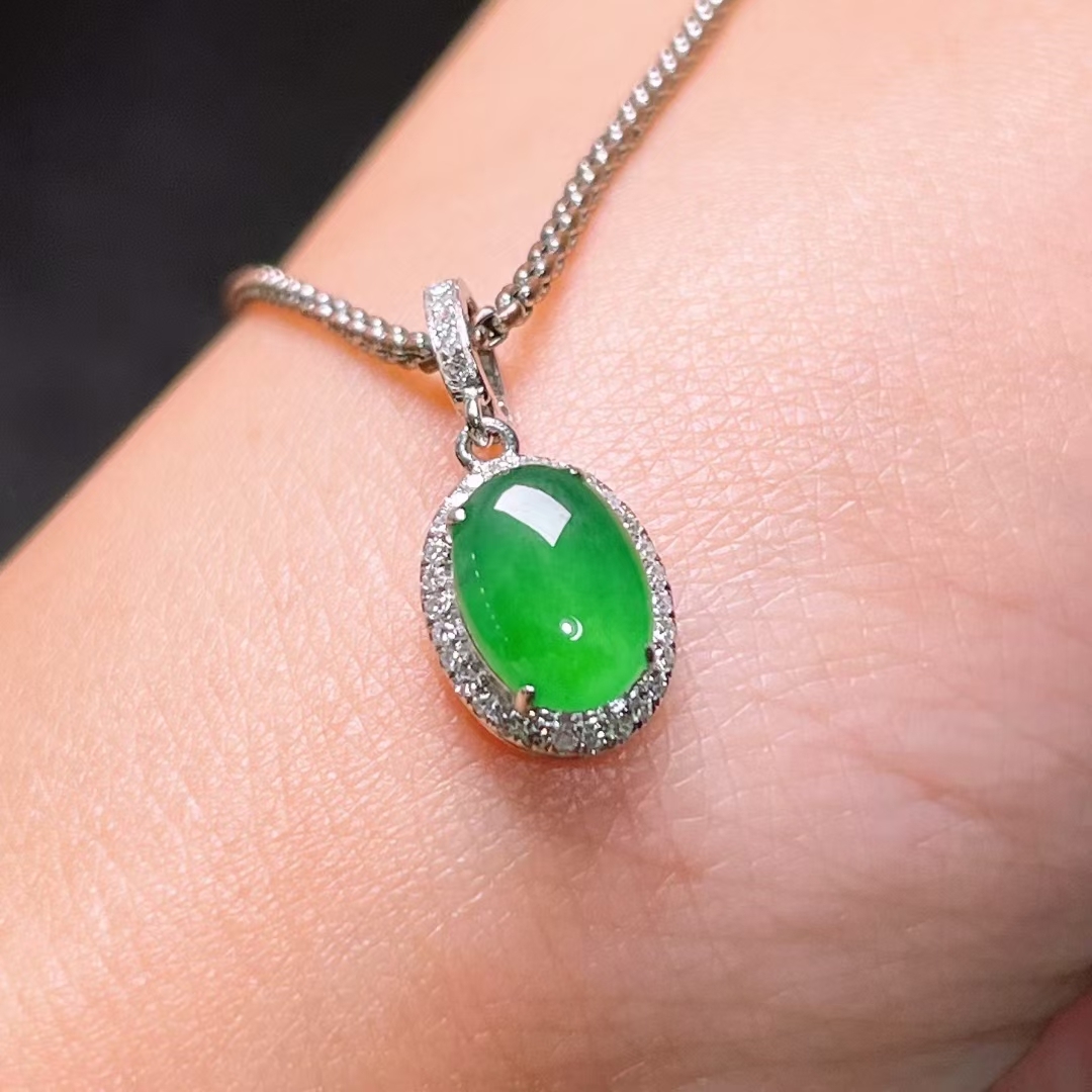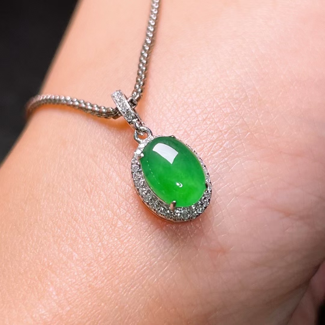 • 翡翠鴿子蛋吊墜,天然翡翠A玉, 緬甸玉, Jade, Jadeite