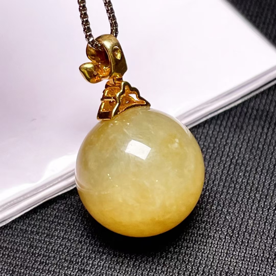 天然翡翠A玉,緬料,老坑冰種,黃翡,18K金鑲嵌。