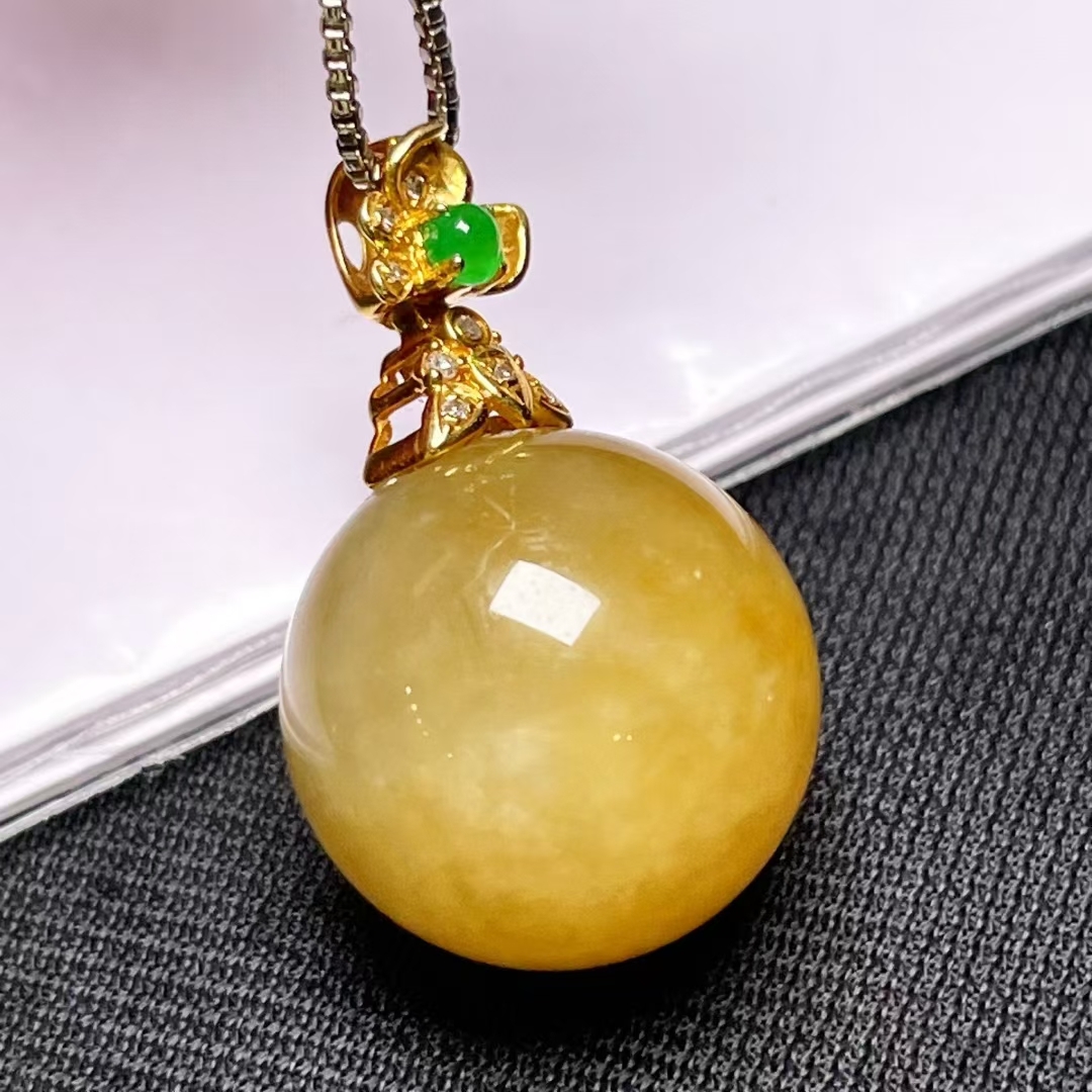 • 翡翠圓珠吊墜 (15.6mm直徑),天然翡翠A玉, 緬甸玉, Jade, Jadeite