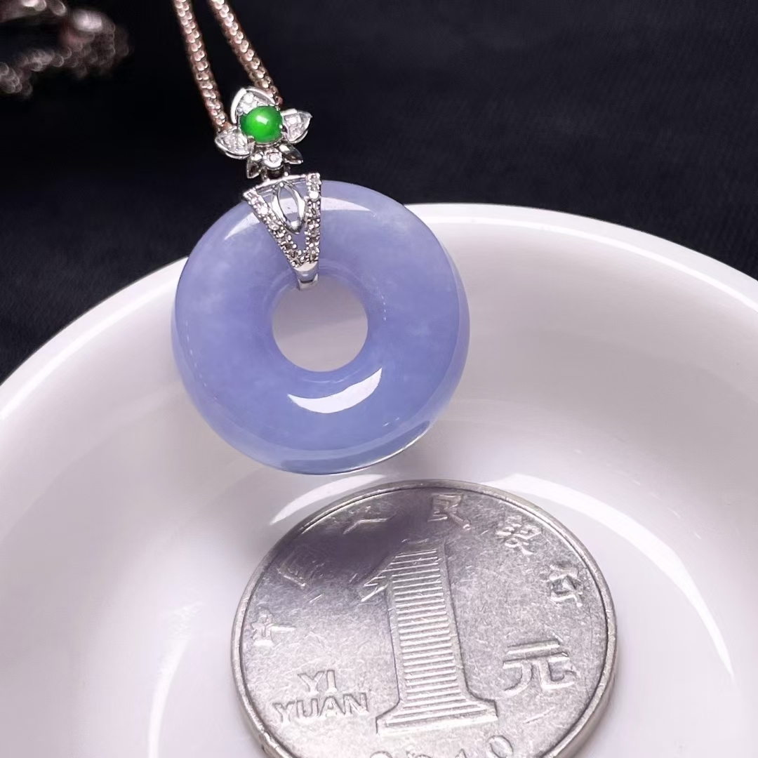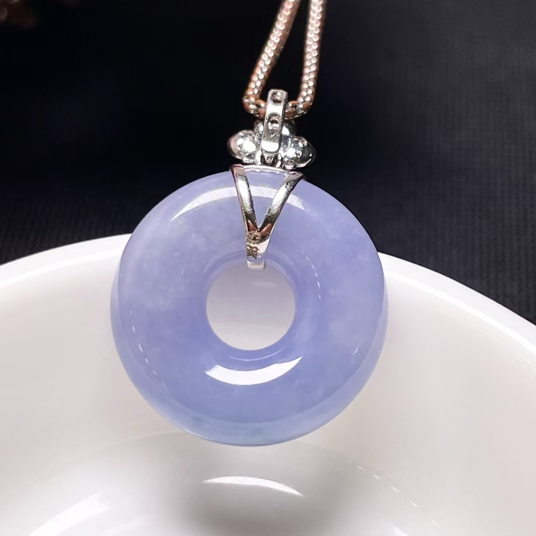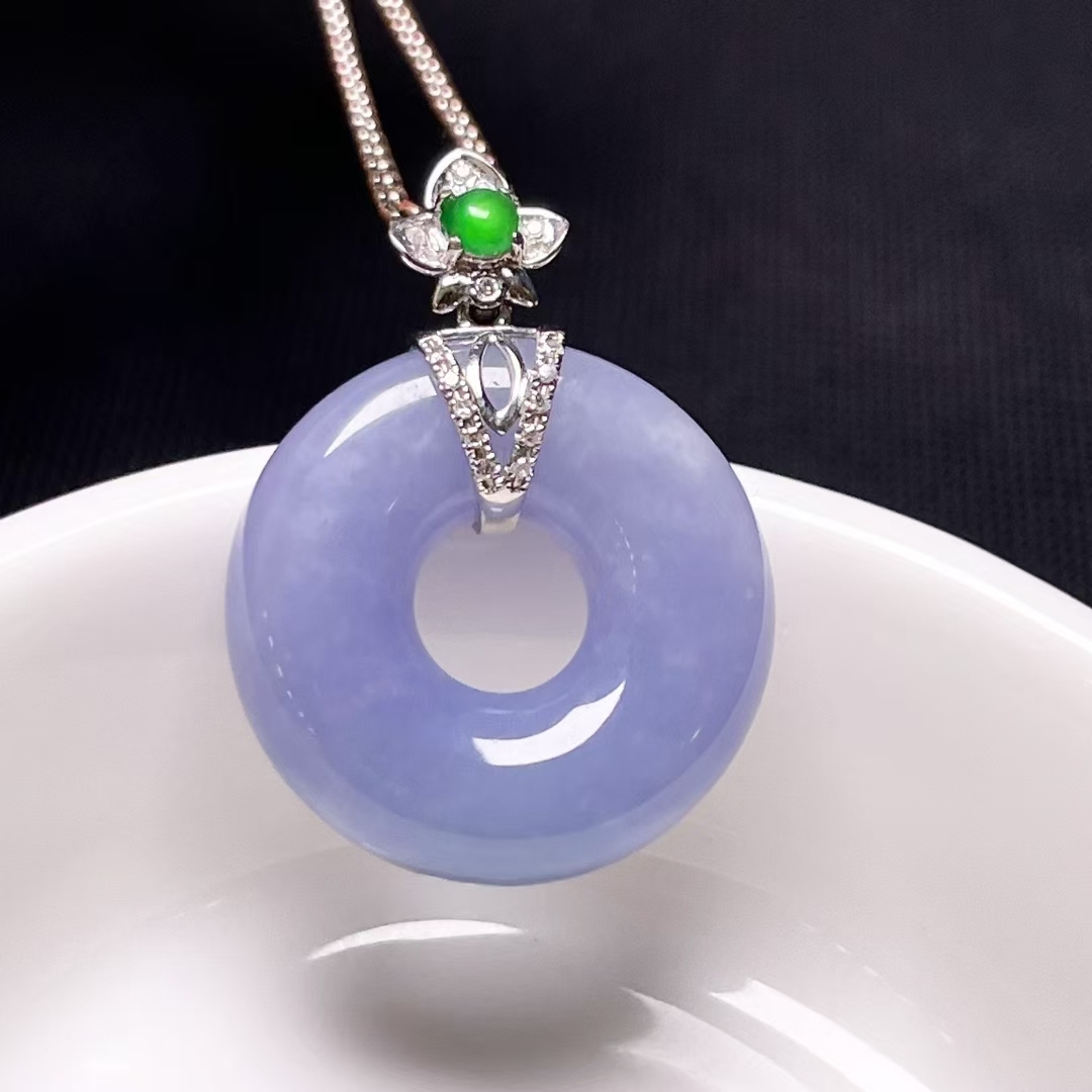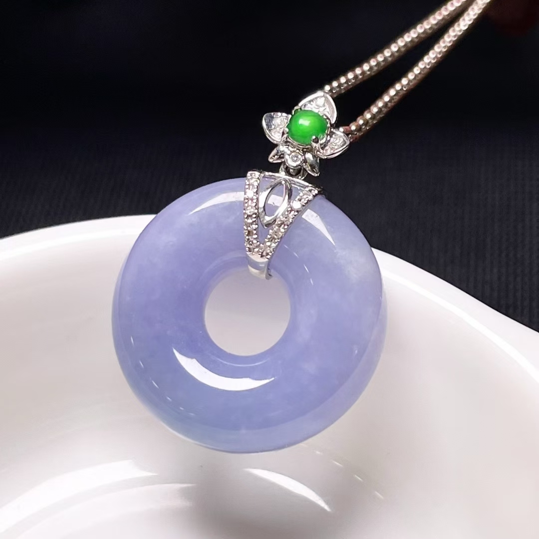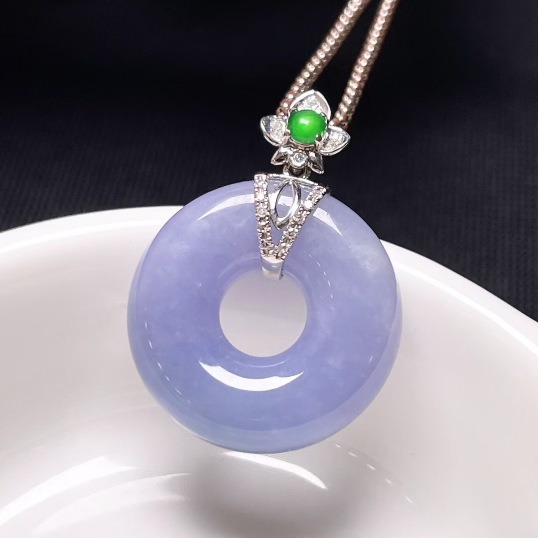 天然翡翠A玉,緬料,老坑冰種,紫羅蘭,18K金鑲嵌。