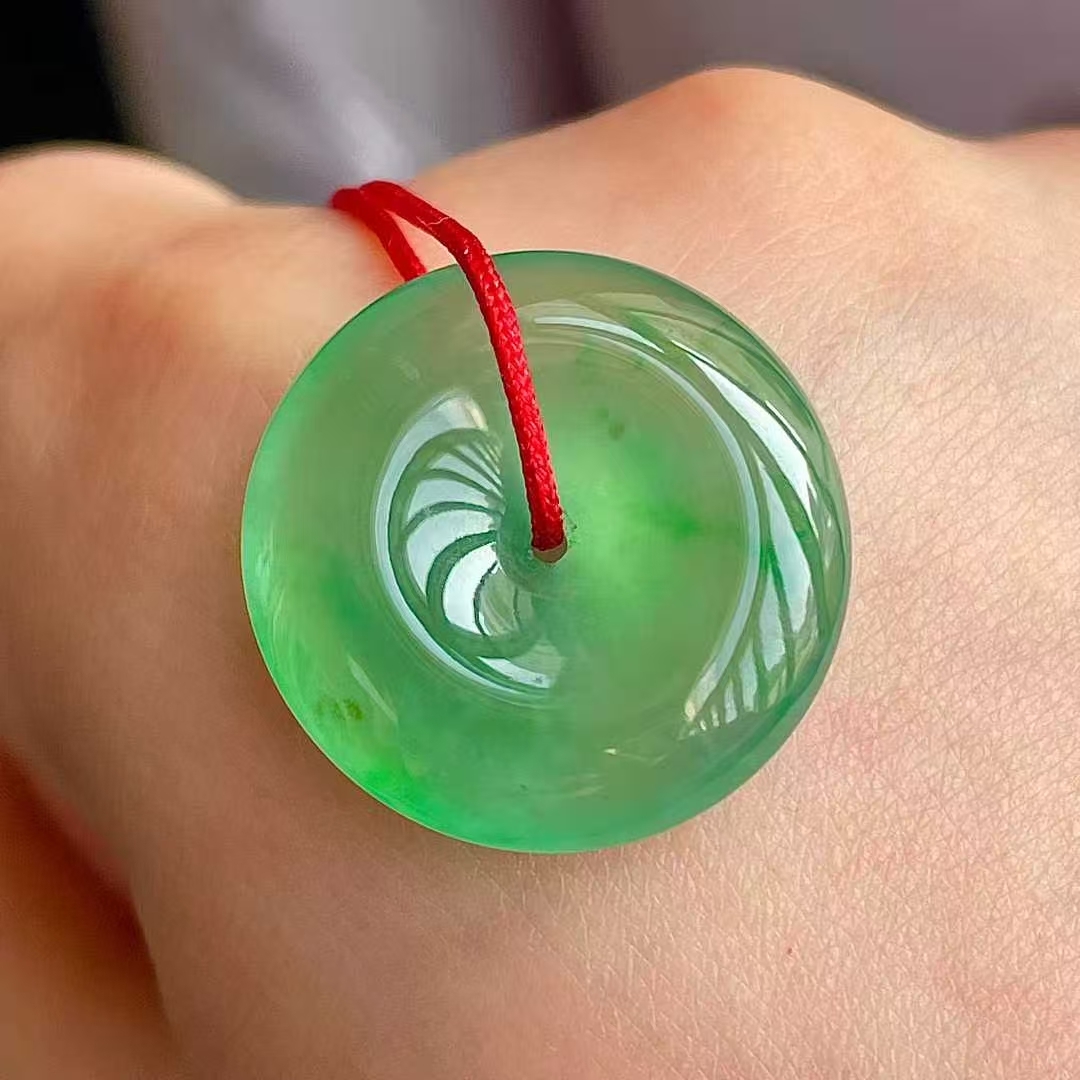 • 翡翠高冰木那綠平安扣吊墜 (20.6mm直徑),天然翡翠A玉, 緬甸玉, Jade, Jadeite