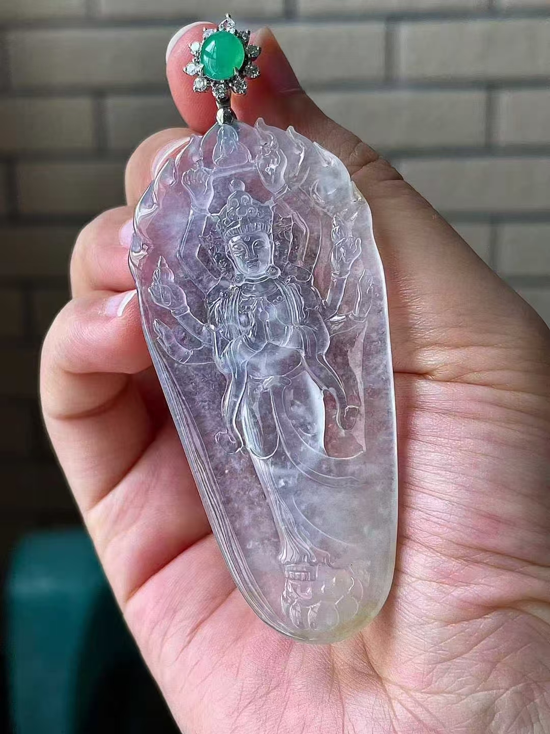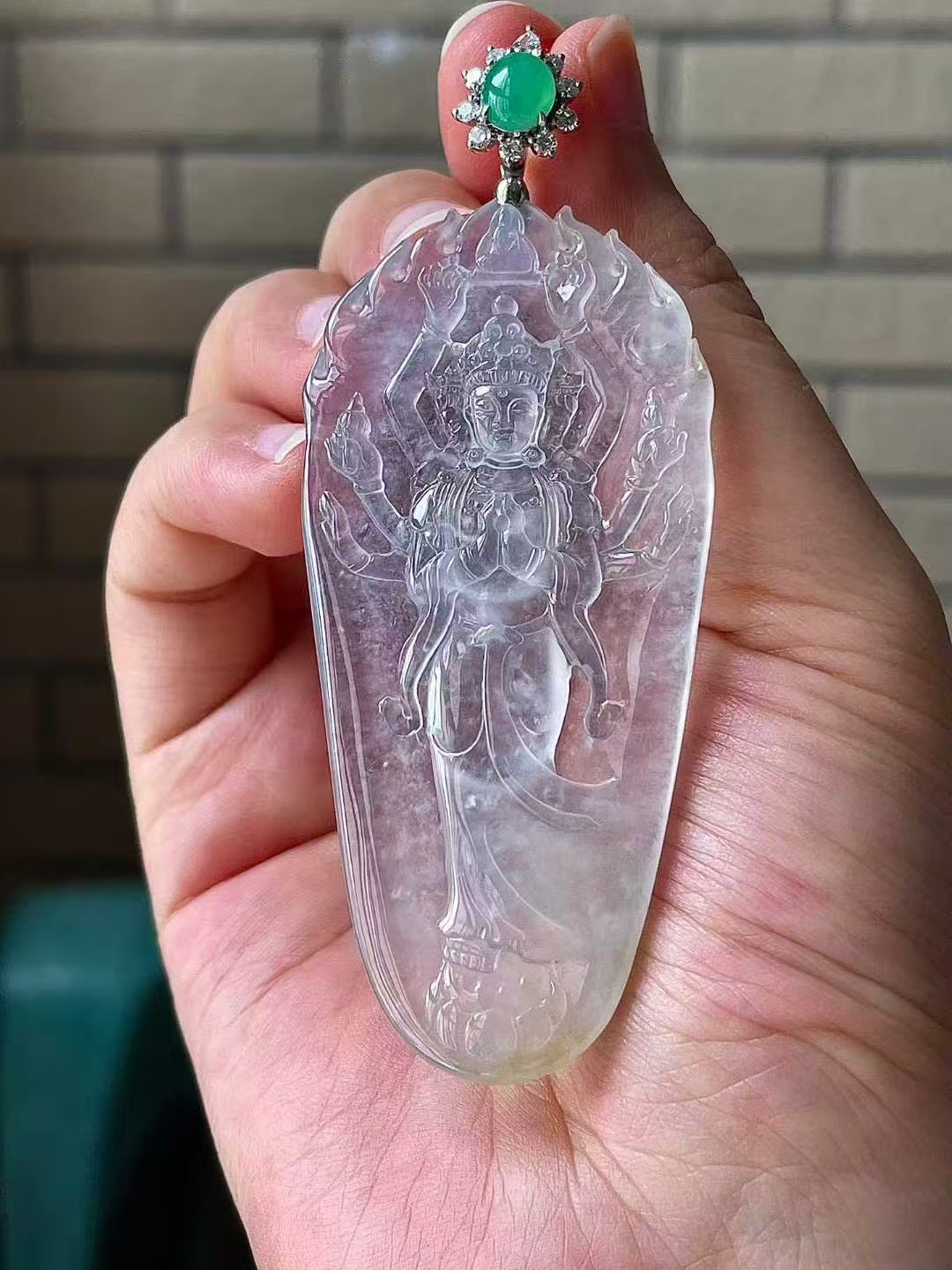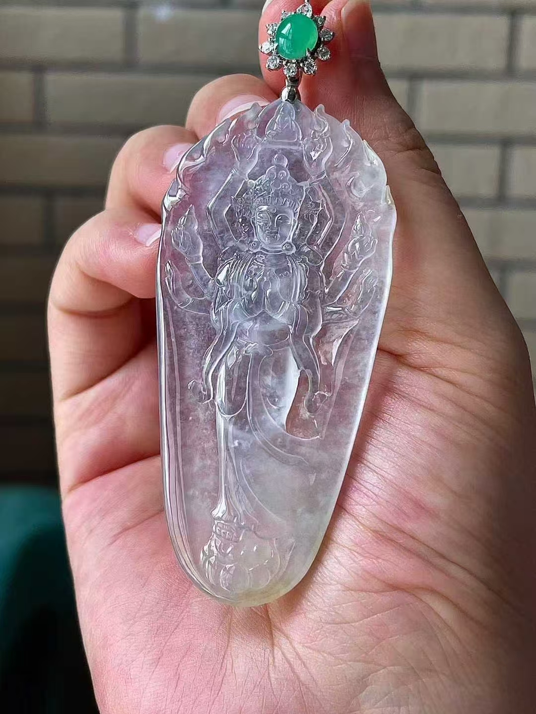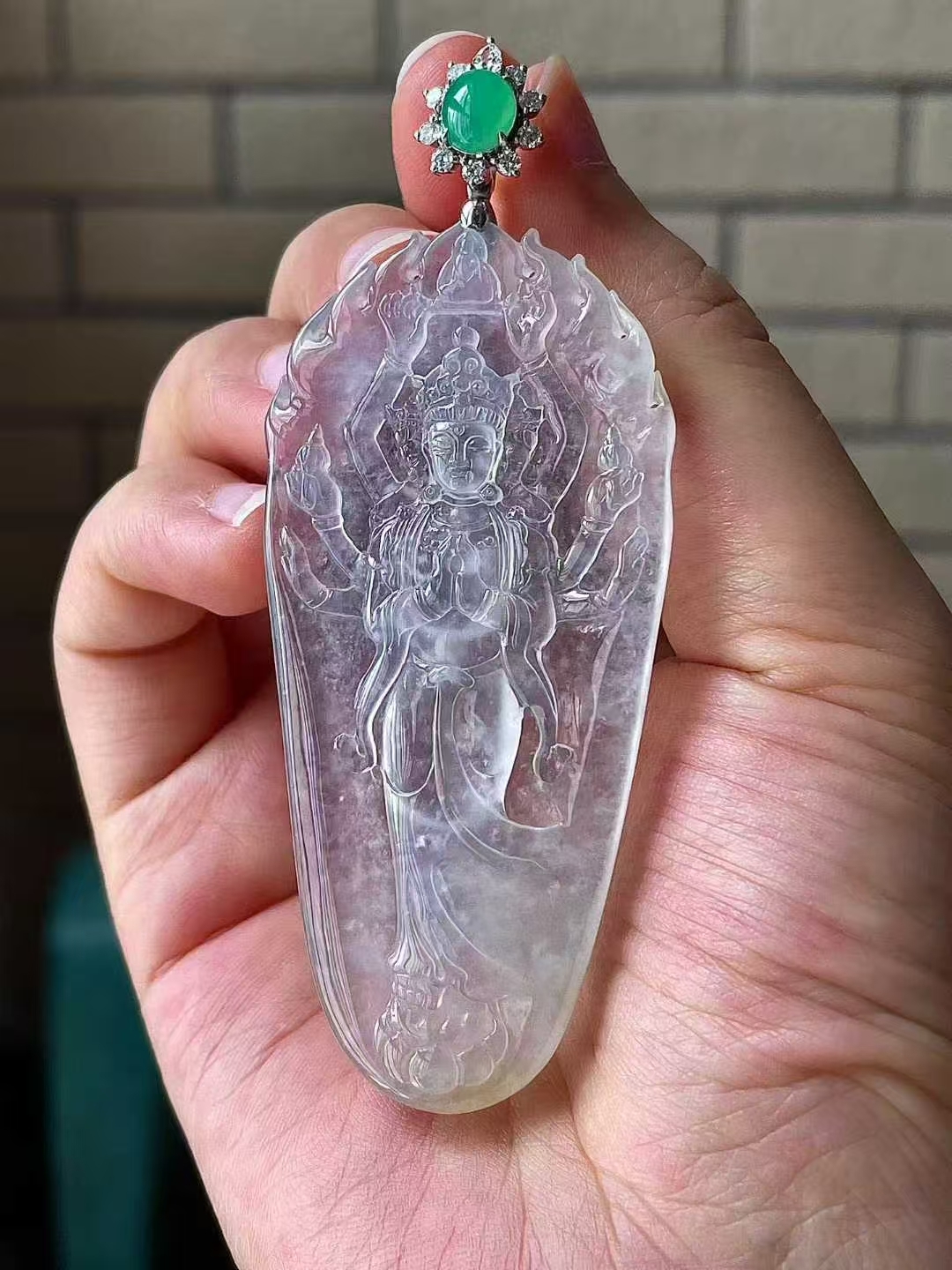 • 翡翠冰種千手觀音吊墜,天然翡翠A玉, 緬甸玉, Jade, Jadeite