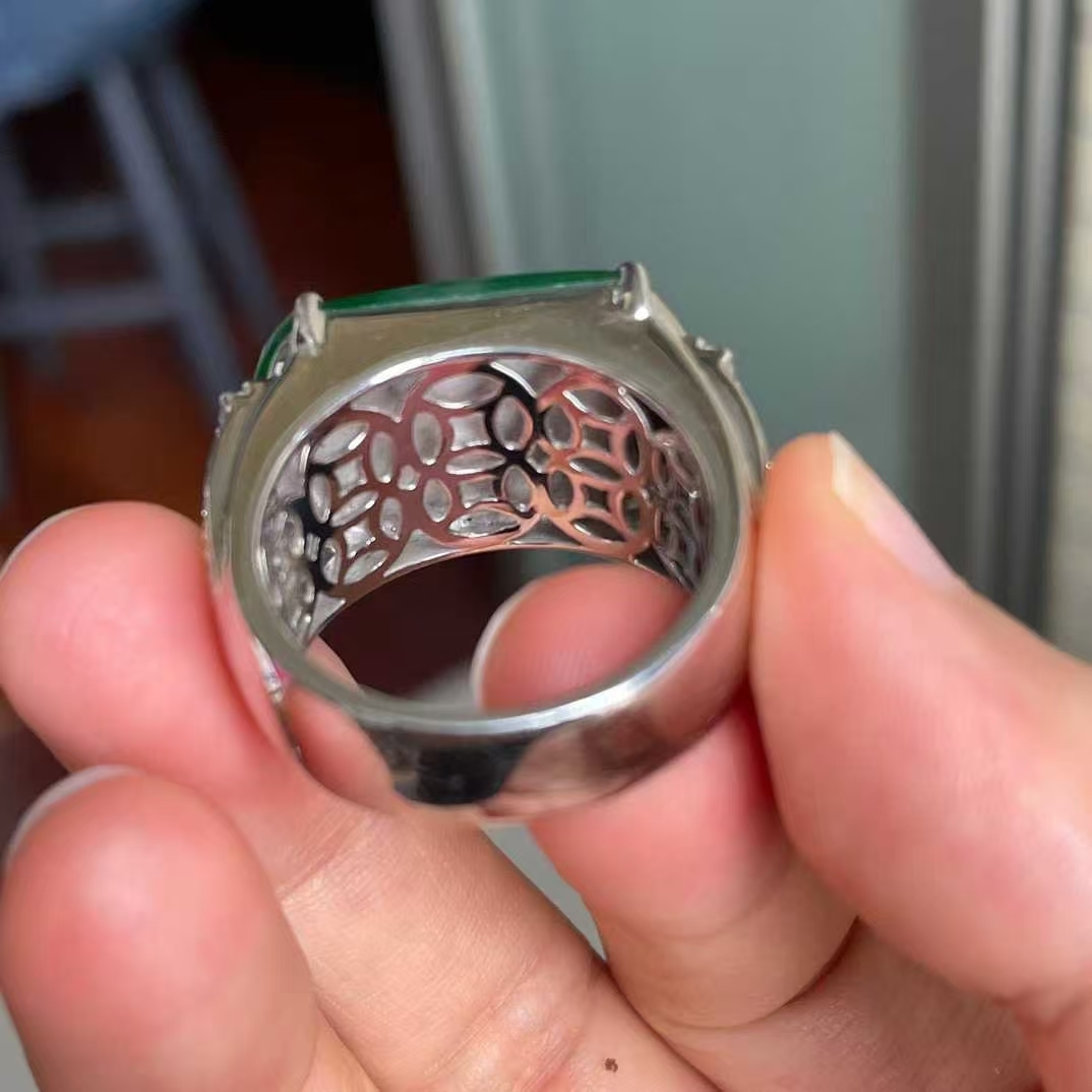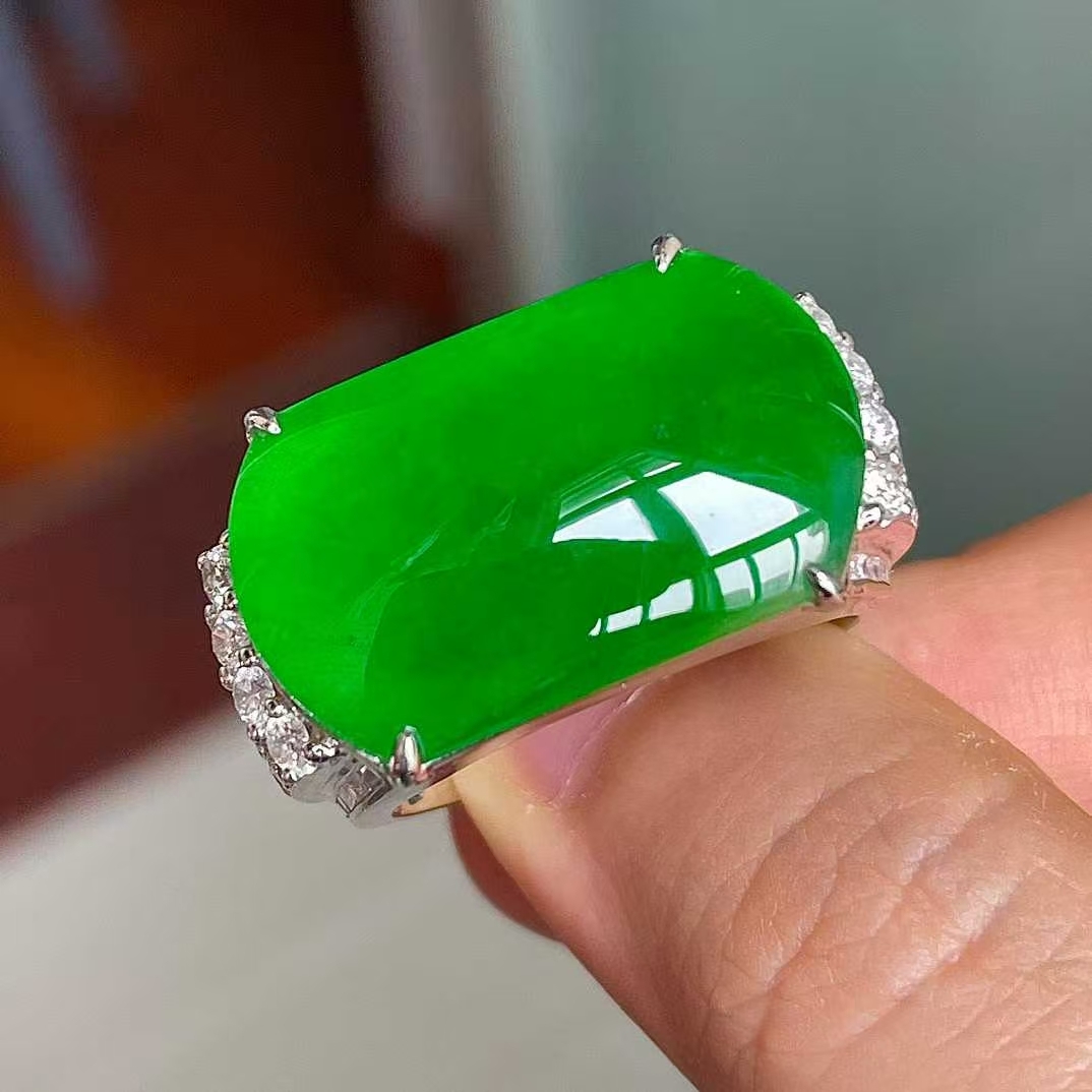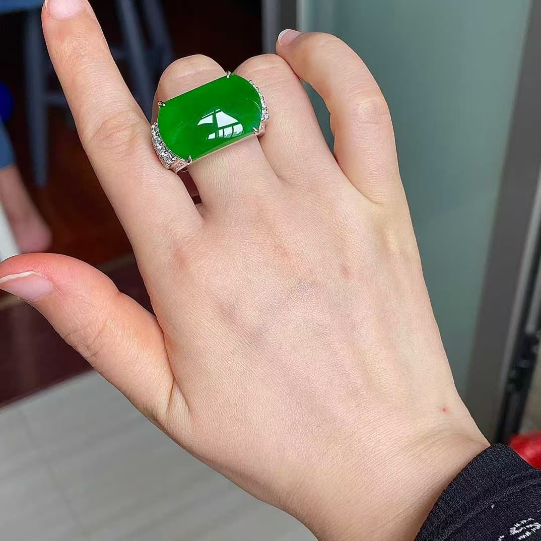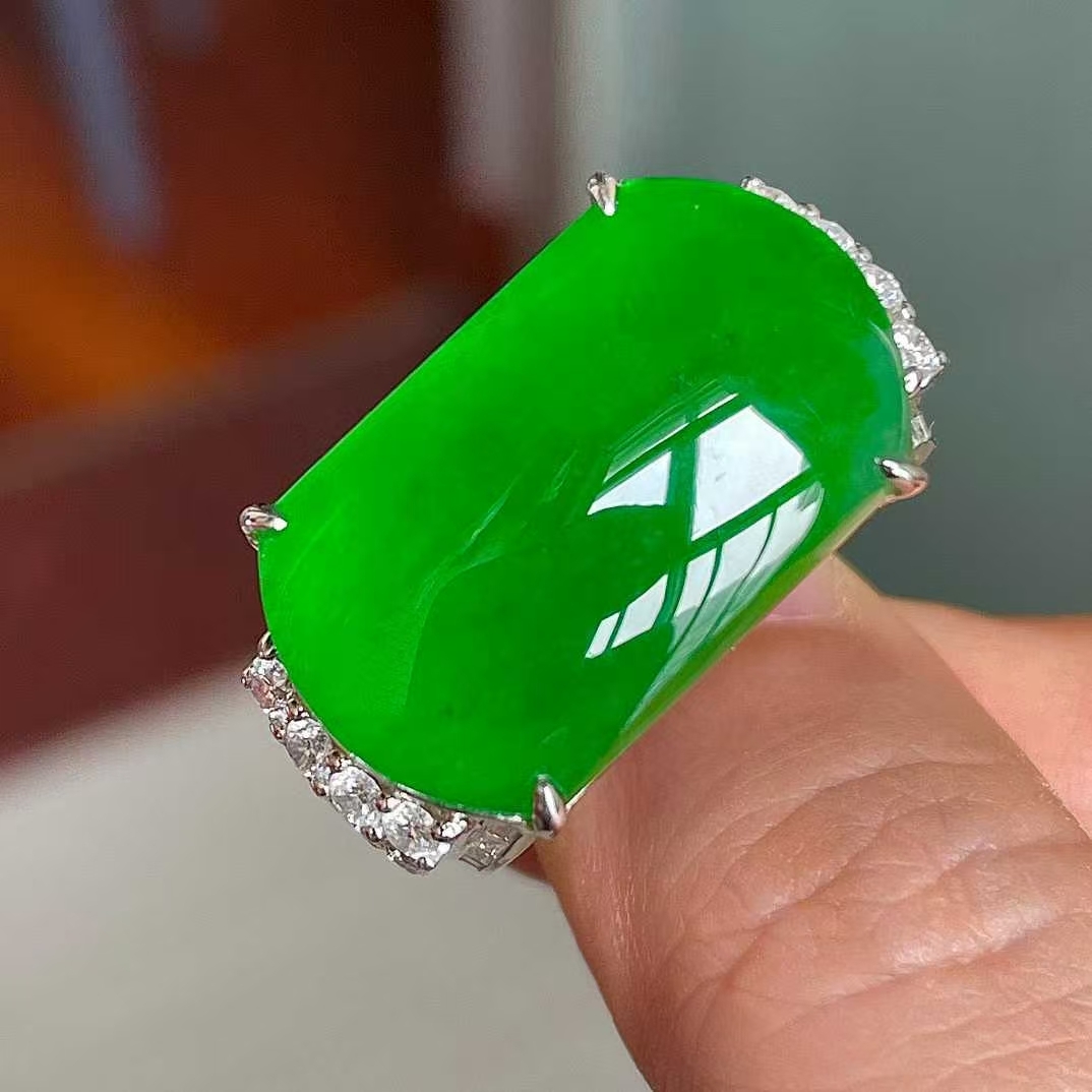 • 翡翠冰陽綠馬鞍戒,天然翡翠A玉, 緬甸玉, Jade, Jadeite
