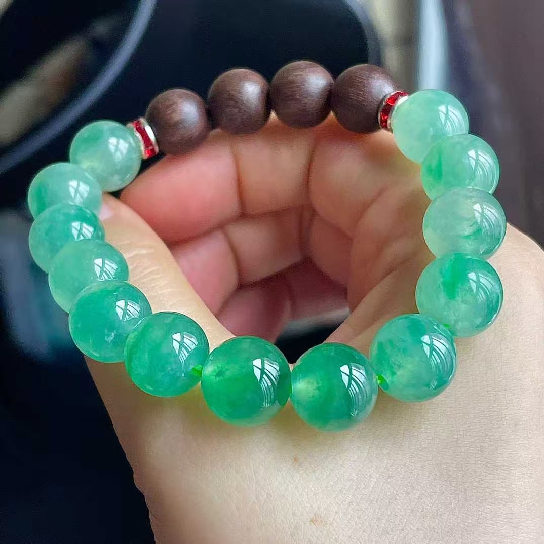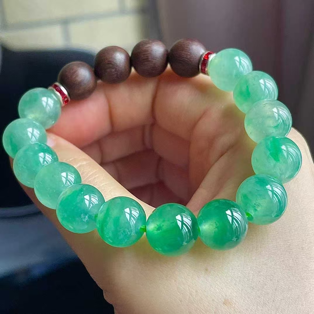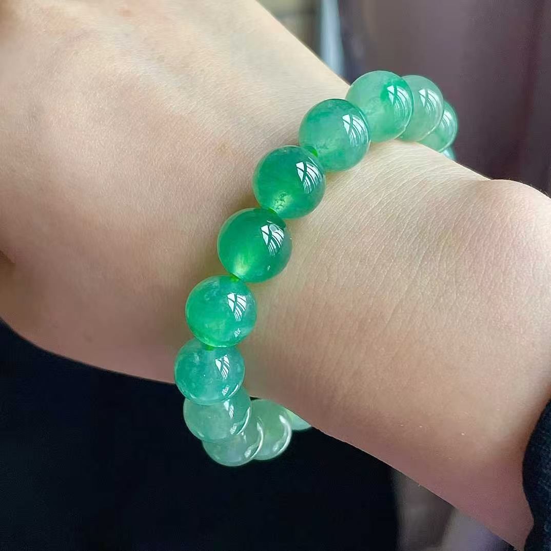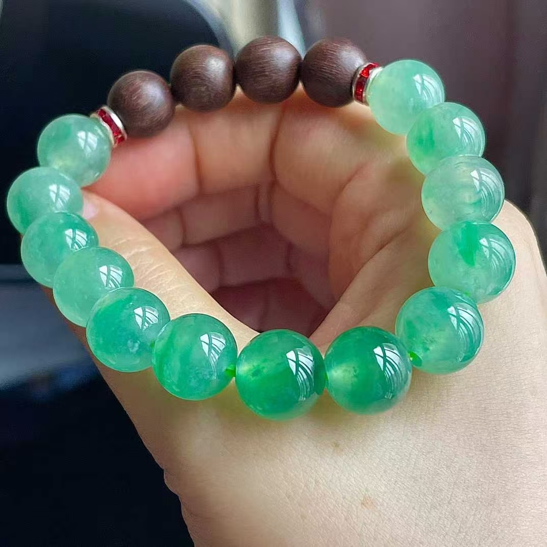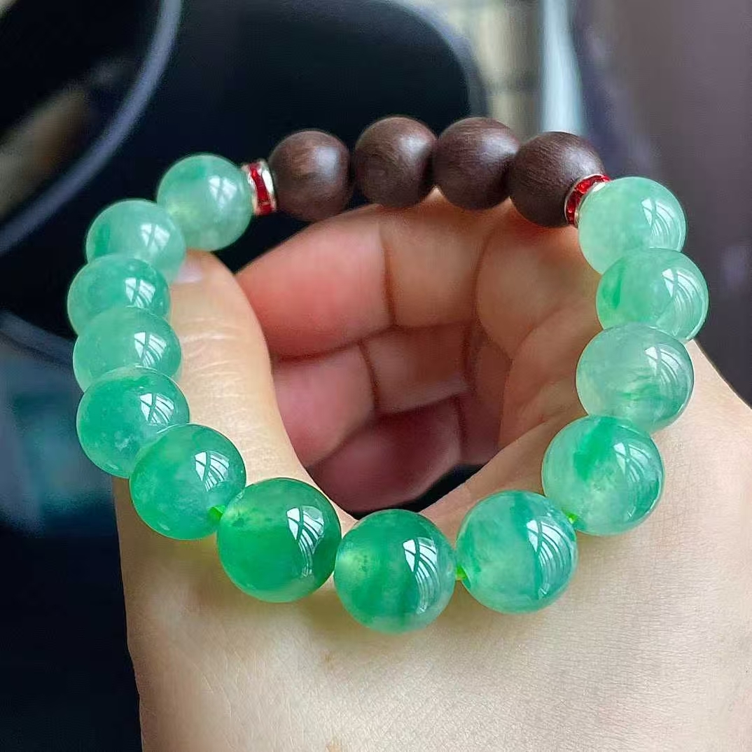 1225556 翡翠冰陽綠手串
