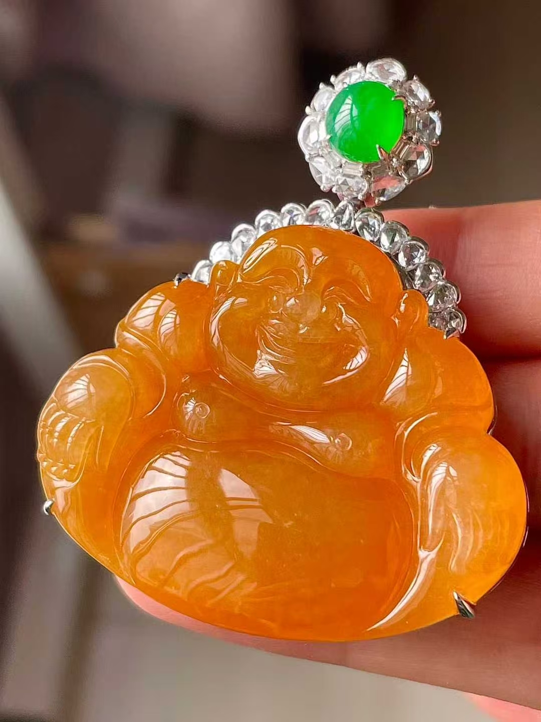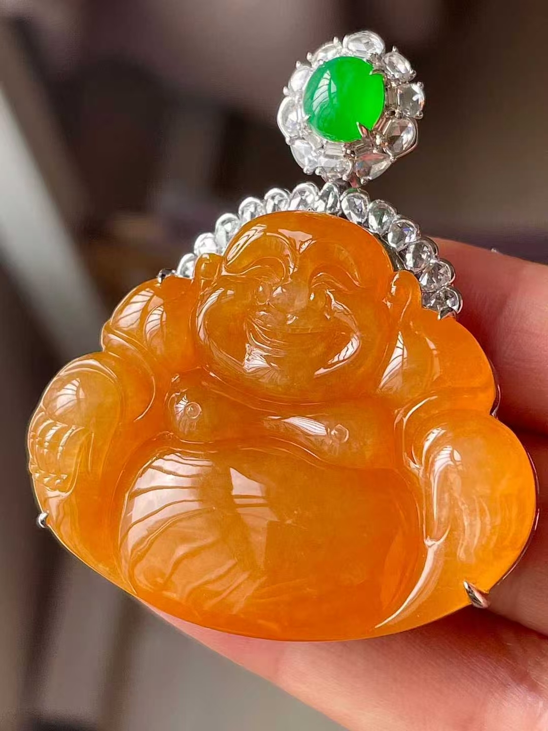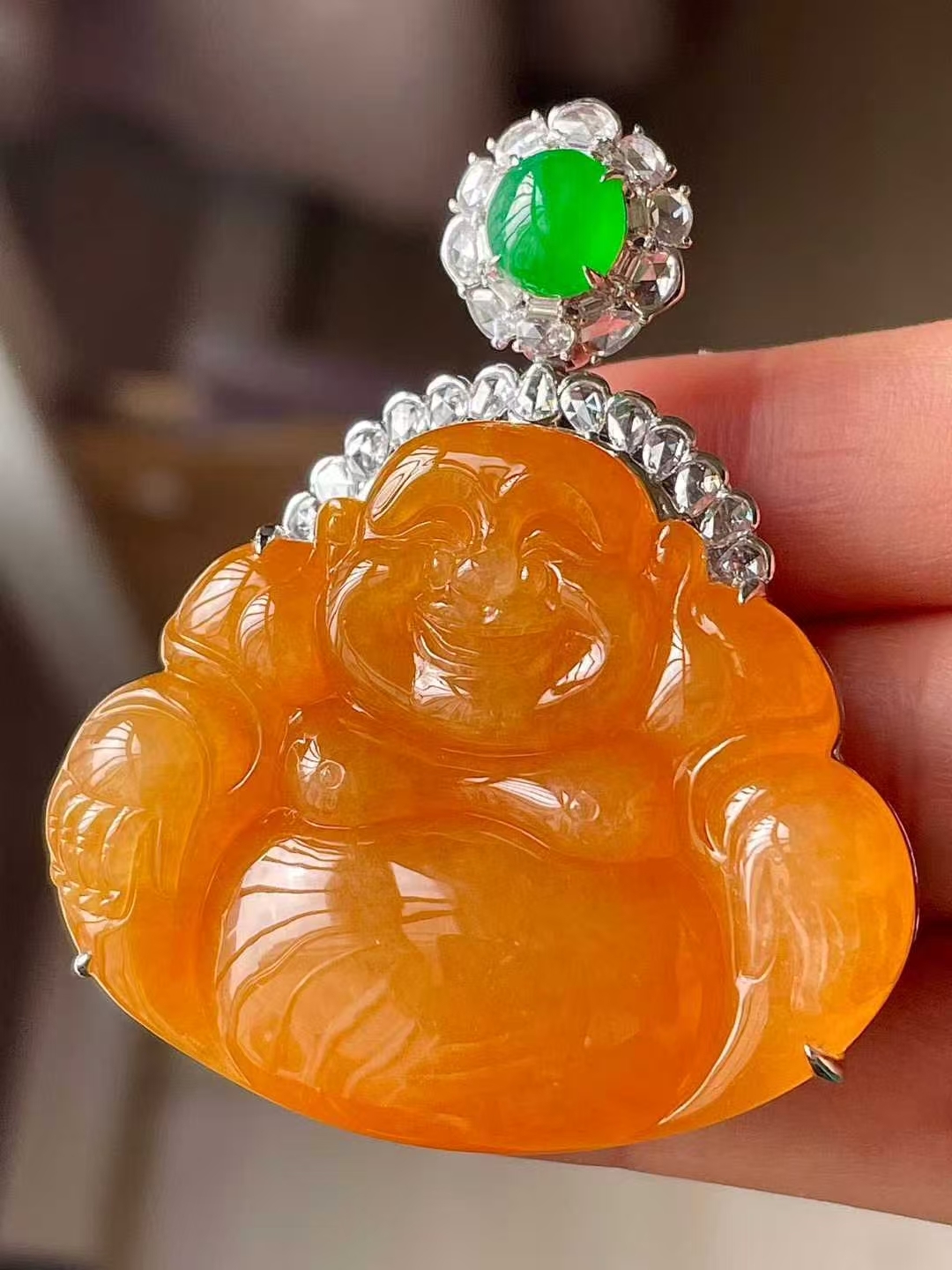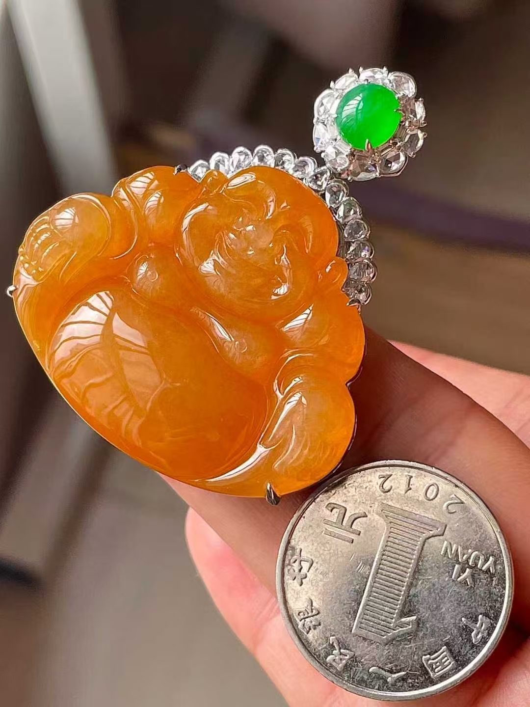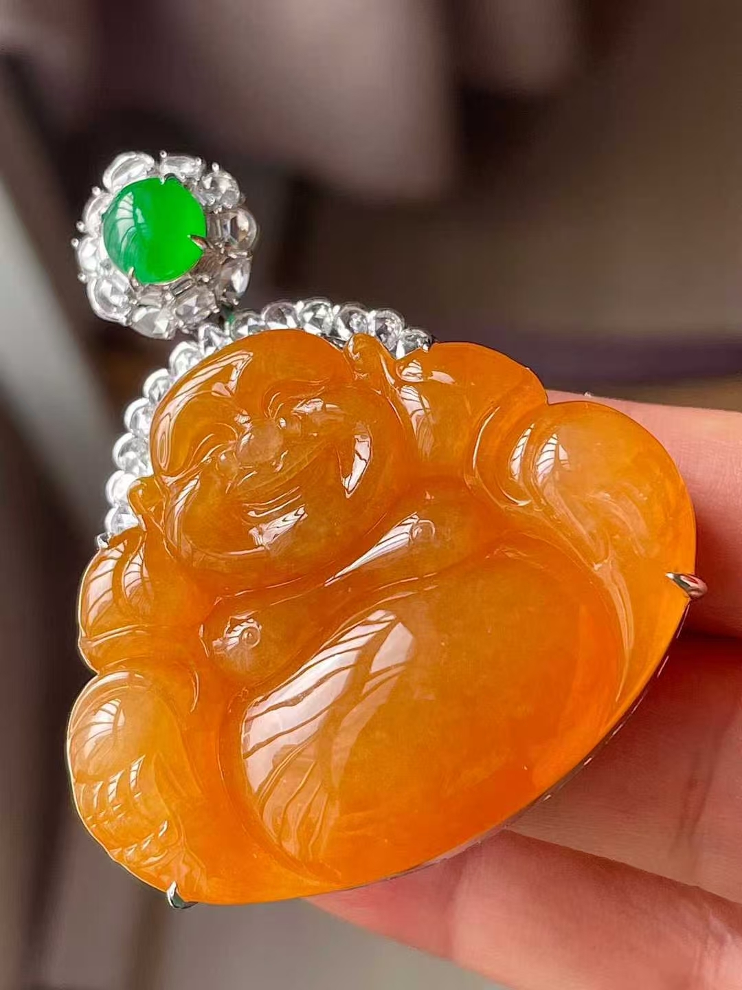 • 翡翠冰紅佛公吊墜,天然翡翠A玉, 緬甸玉, Jade, Jadeite