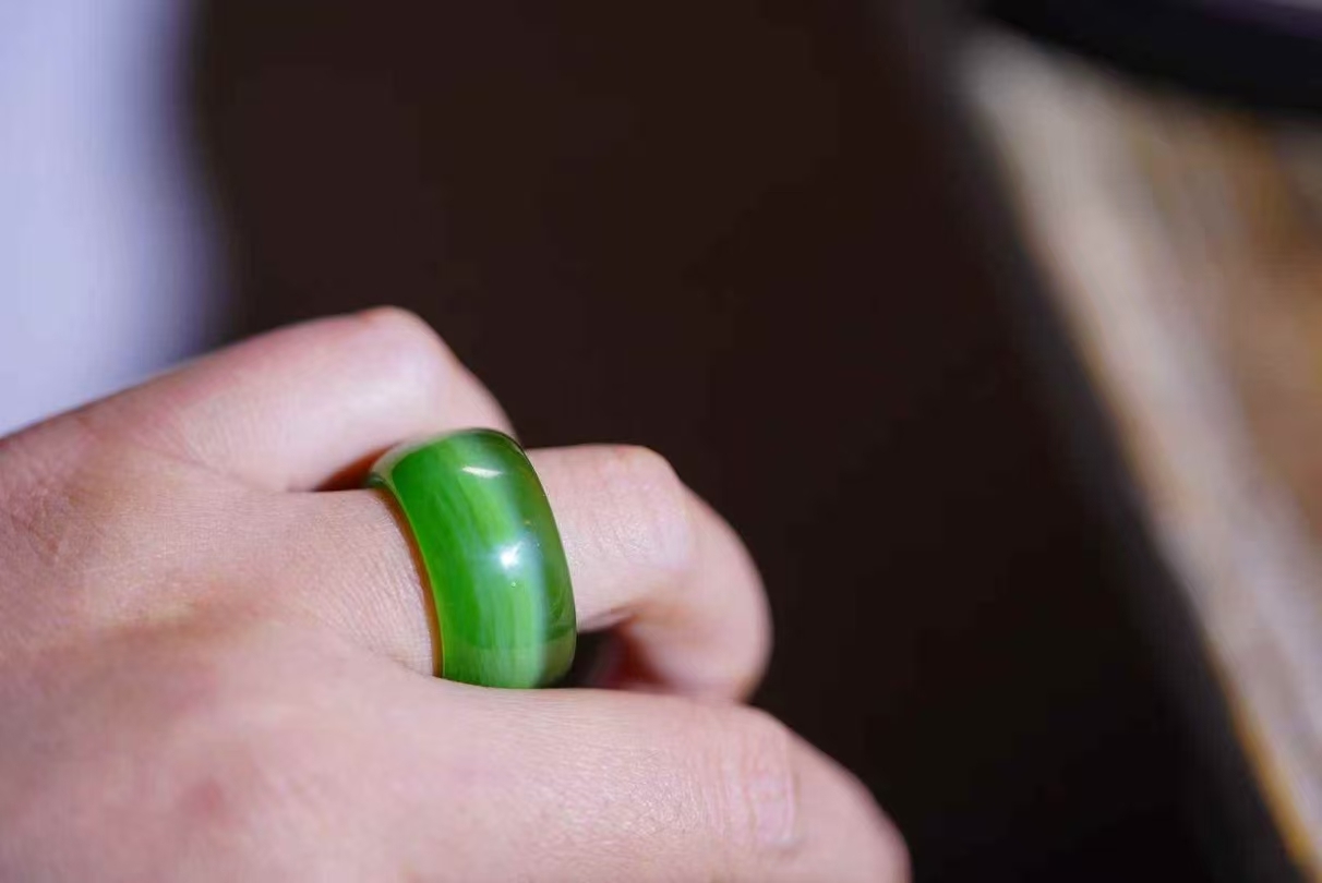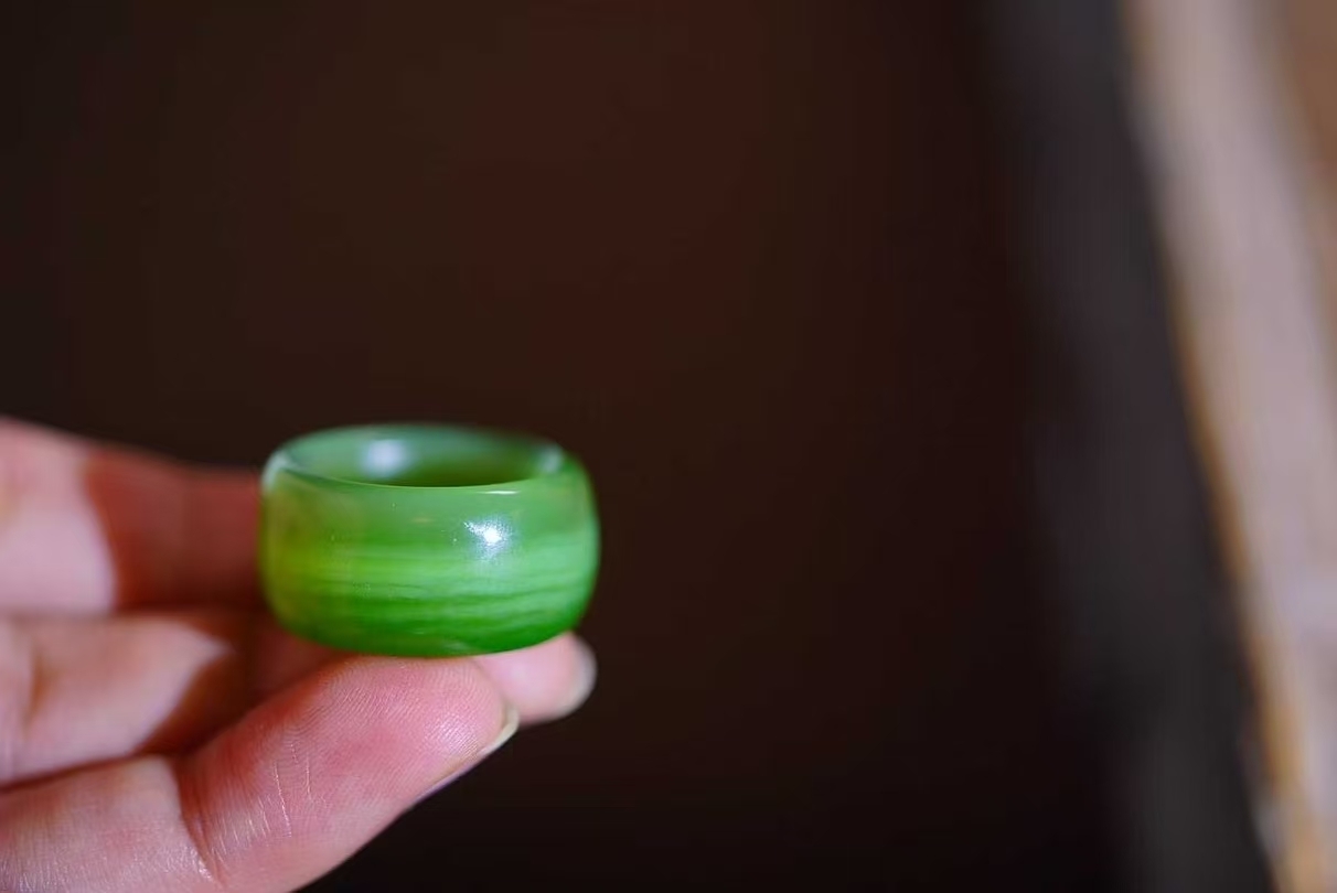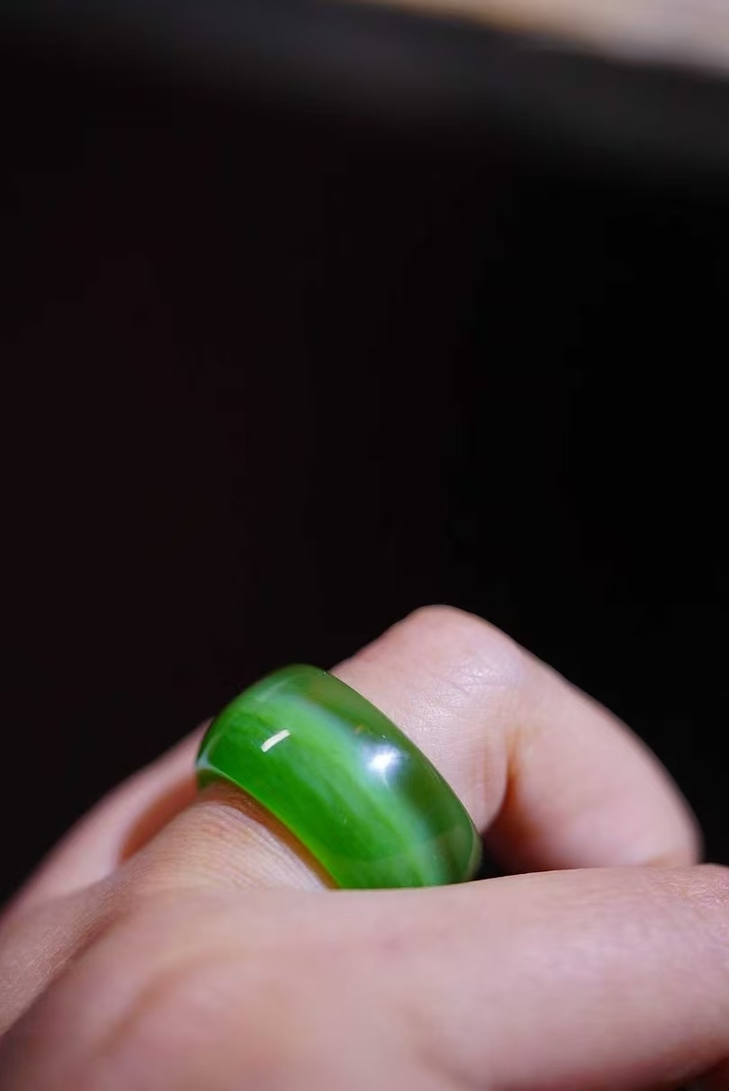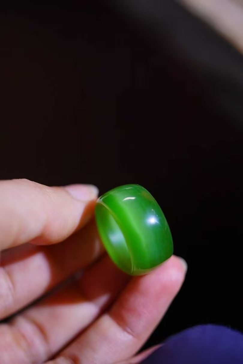 • 和田玉碧玉貓眼扳指,天然和田玉軟玉