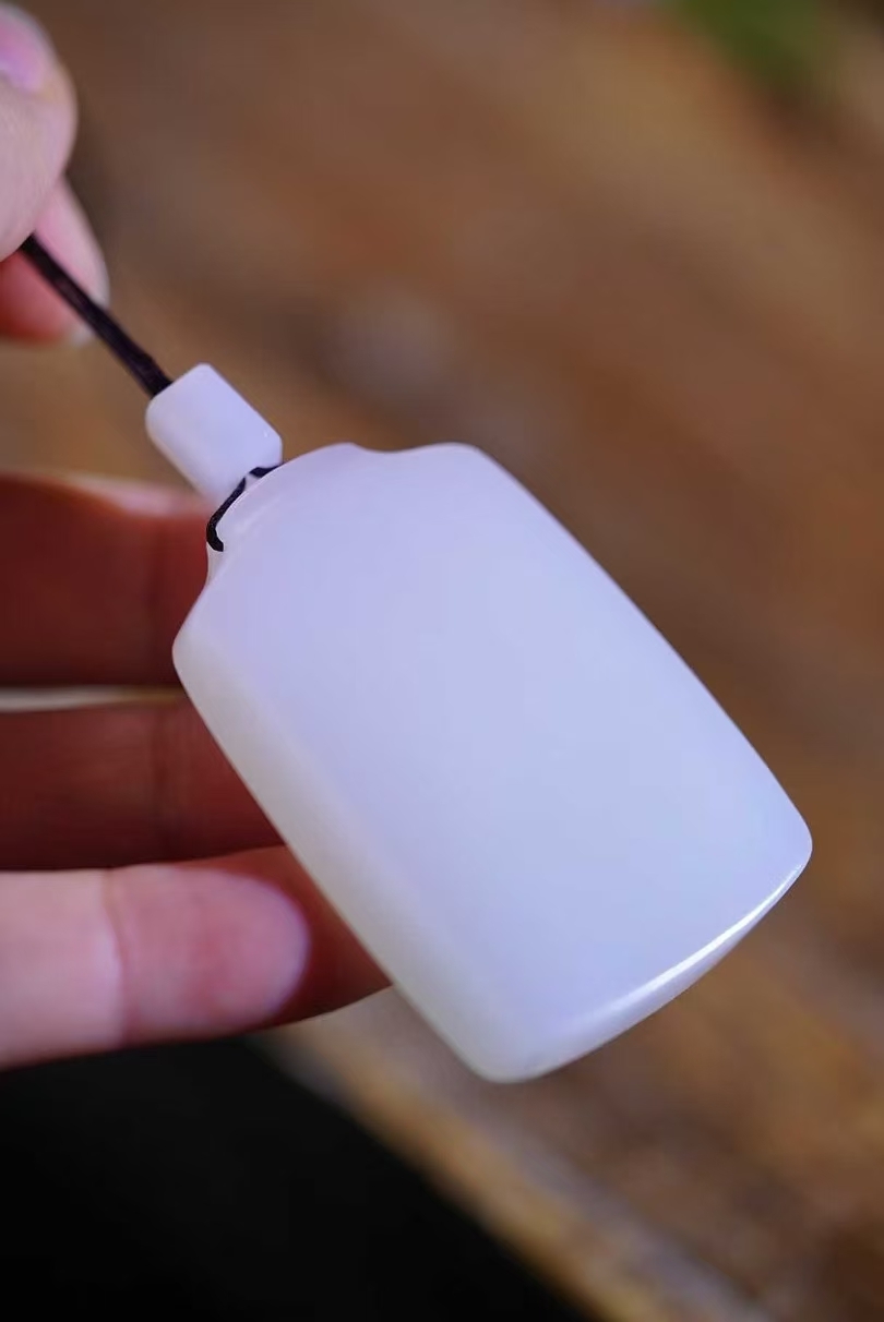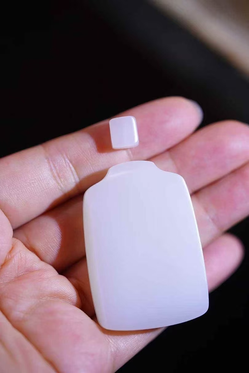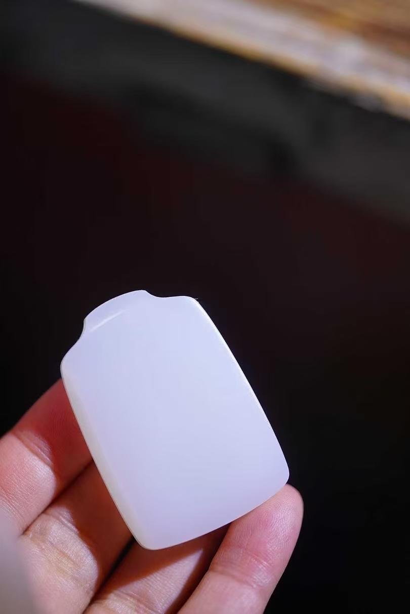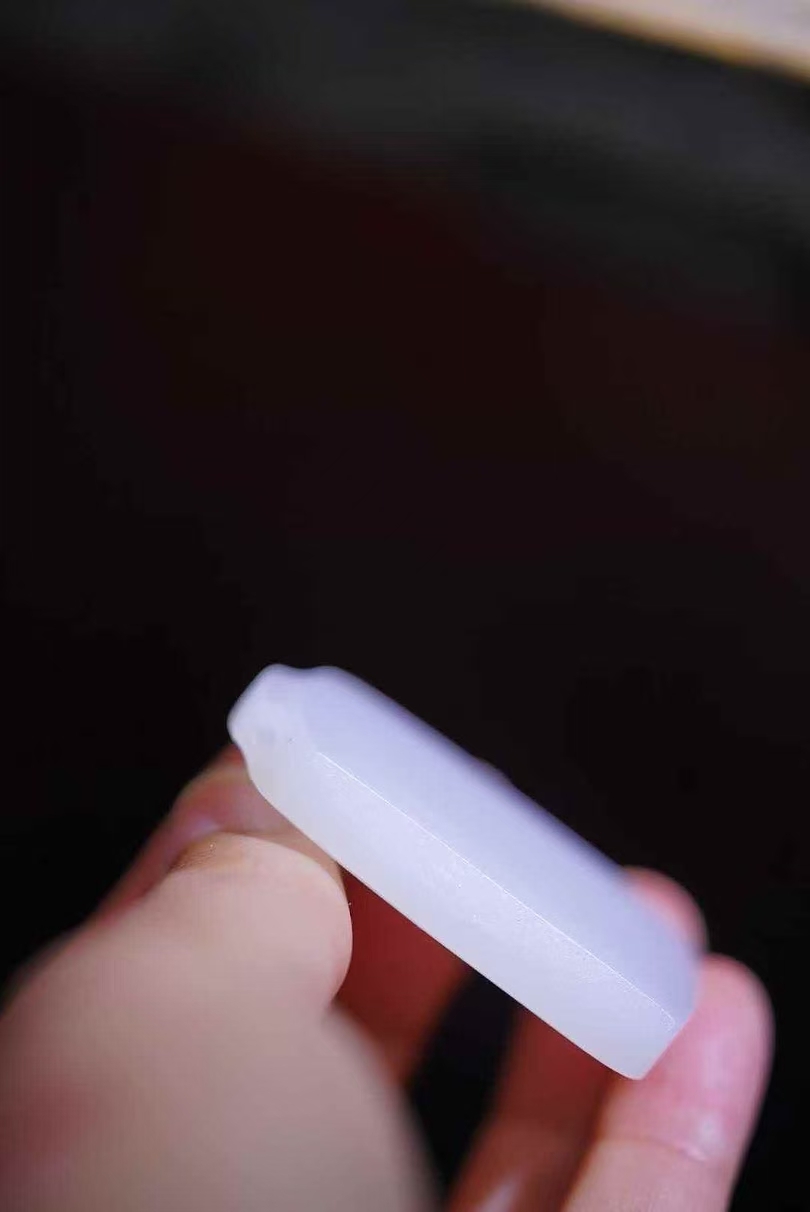 和田玉,像這樣的,也是越來越少了,籽大白平安牌,高油糯性,清水皮,特老熟,看看密密匝匝的小毛孔就知道咯!