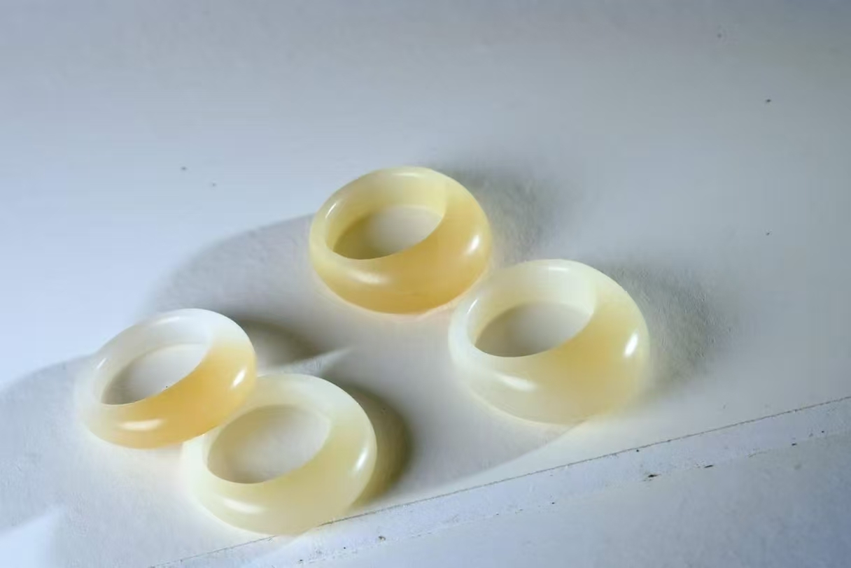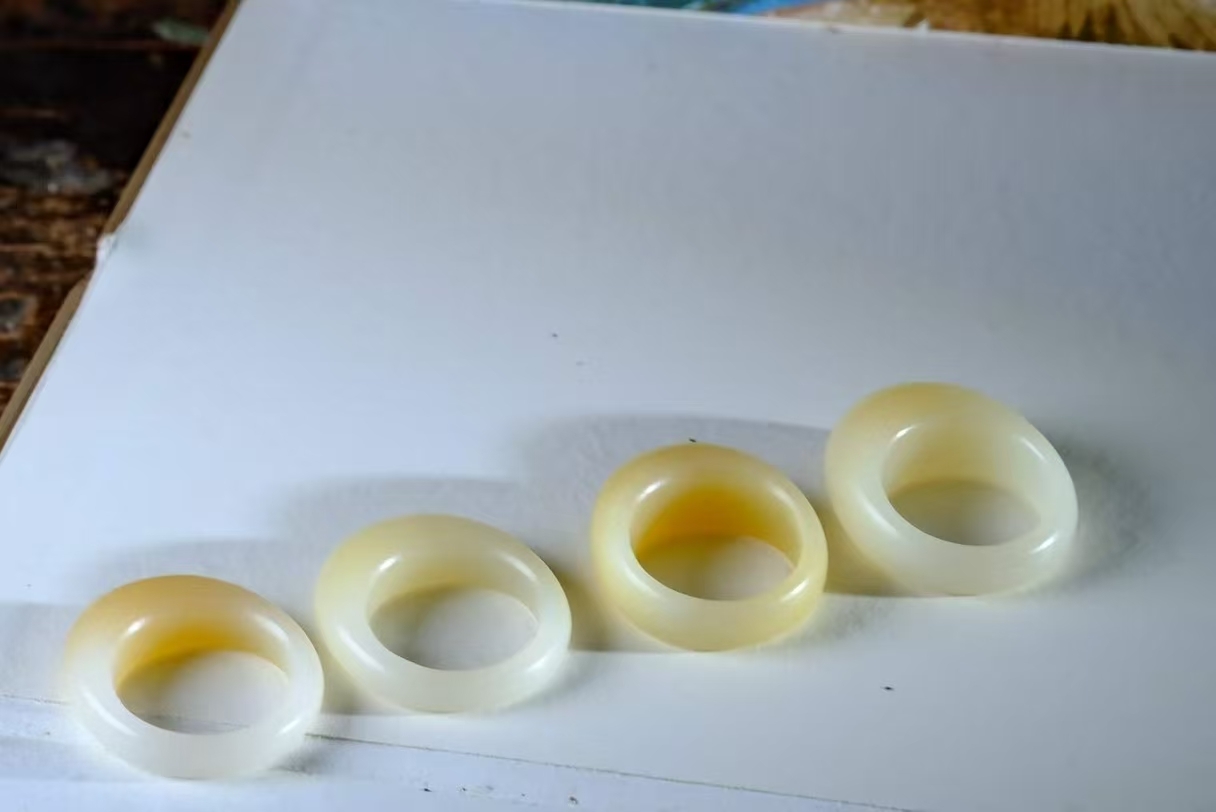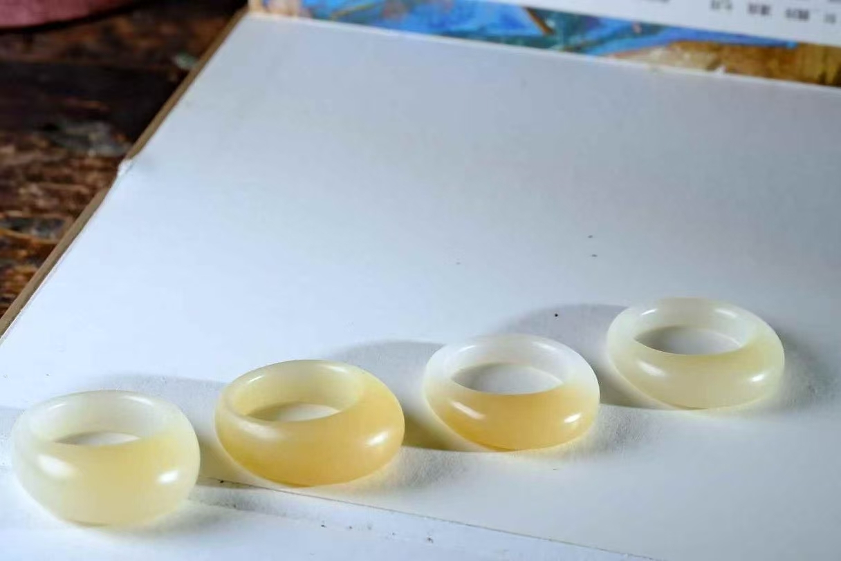 • 和田玉俄料芭莎金糖白饅頭戒 (圈口 14.5號),天然和田玉軟玉