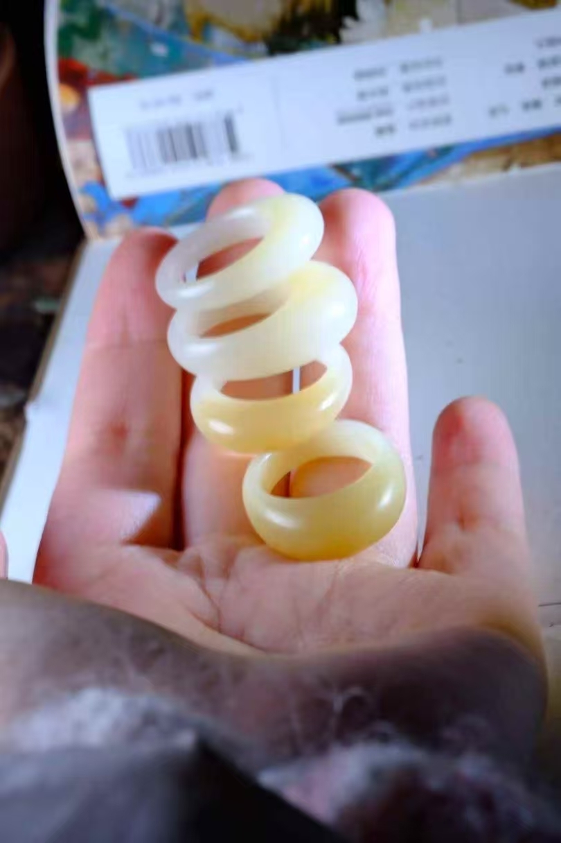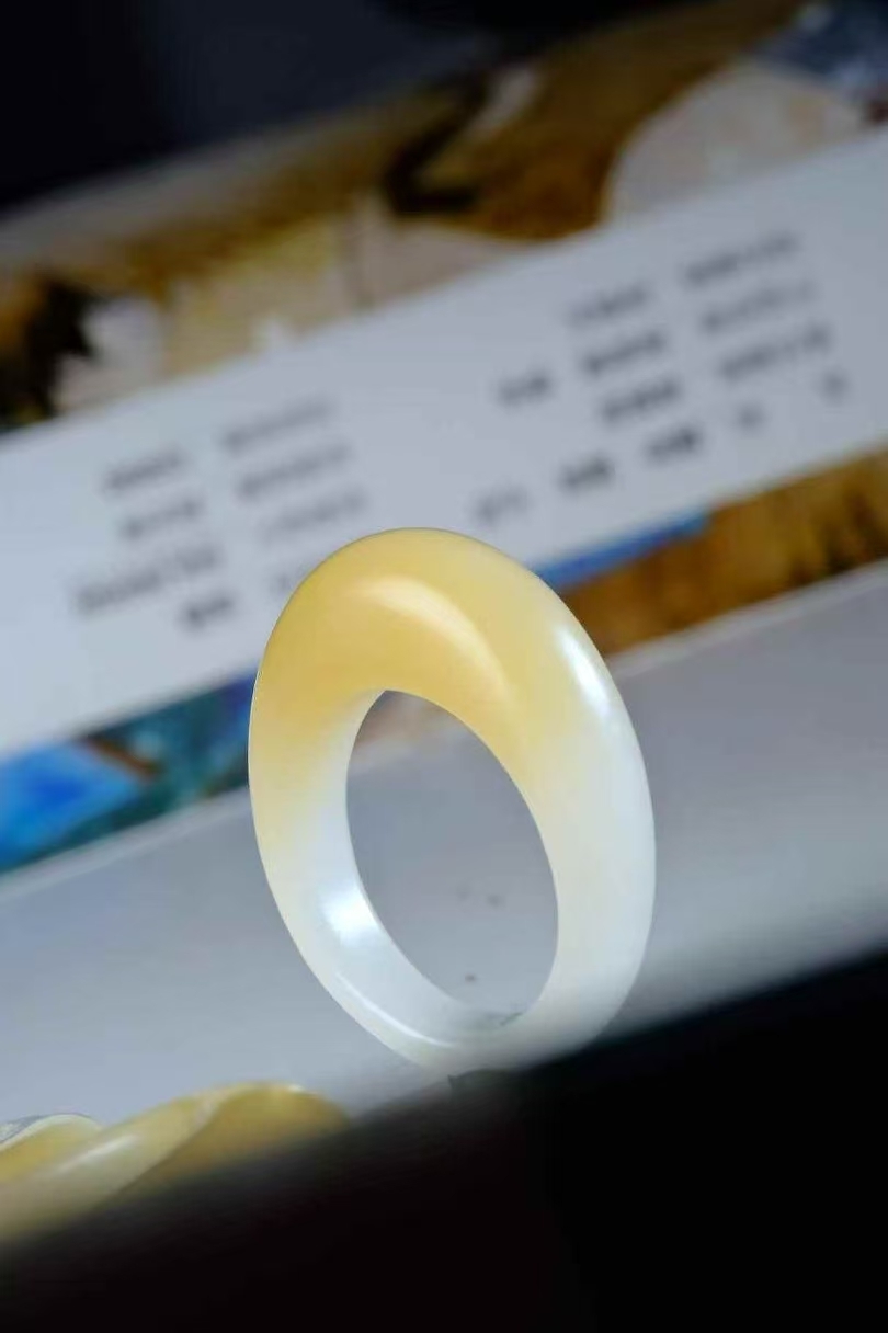 和田玉,暖洋洋的芭莎金糖白饅頭戒,俄料芭莎糖質地細膩,光澤度也巨好。