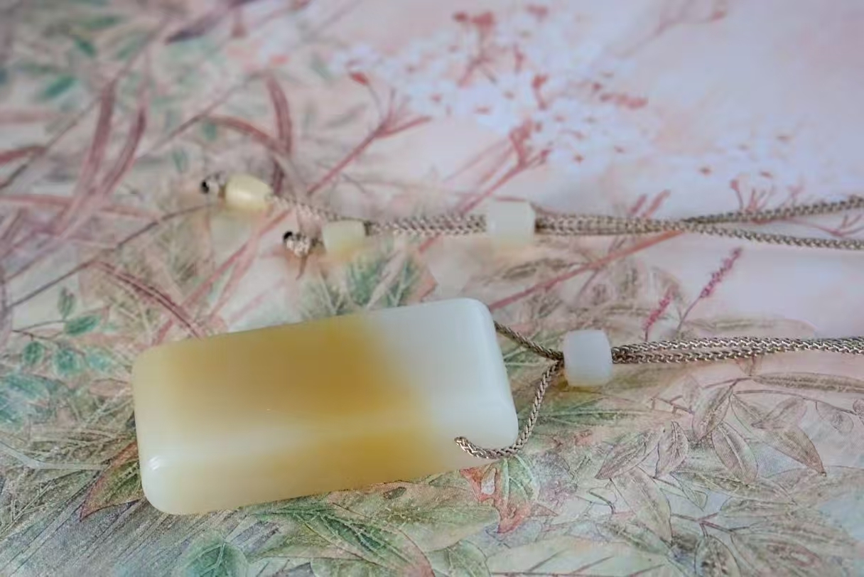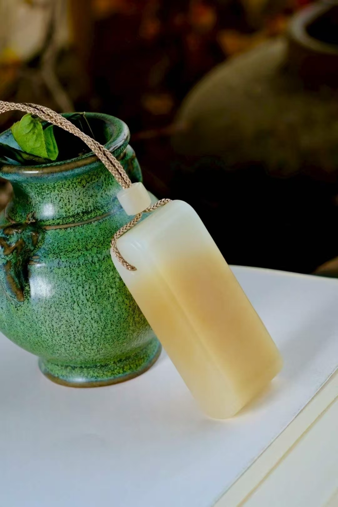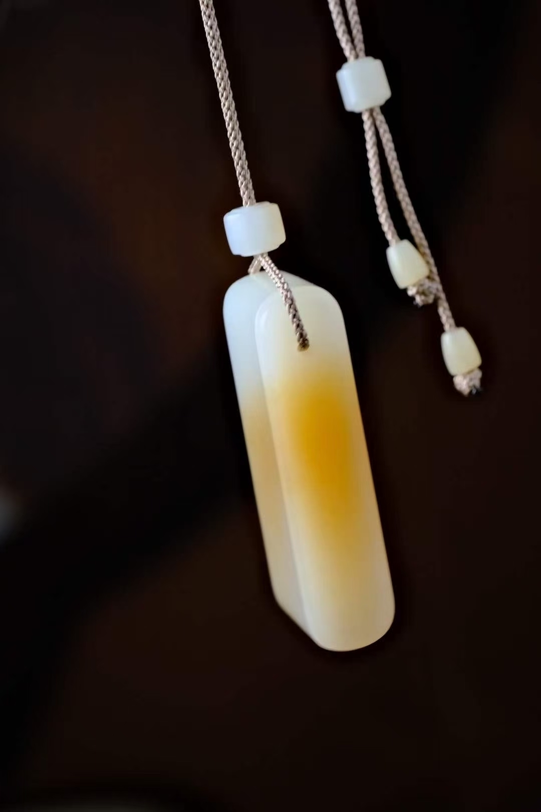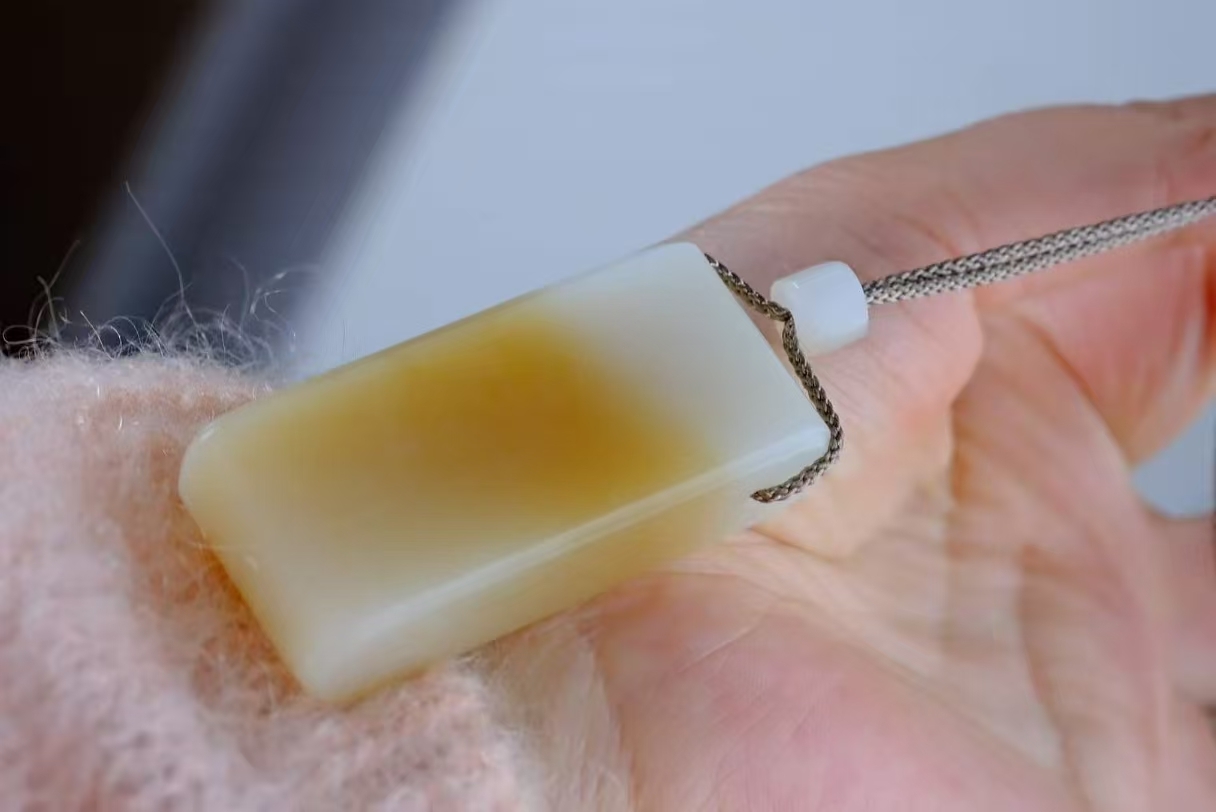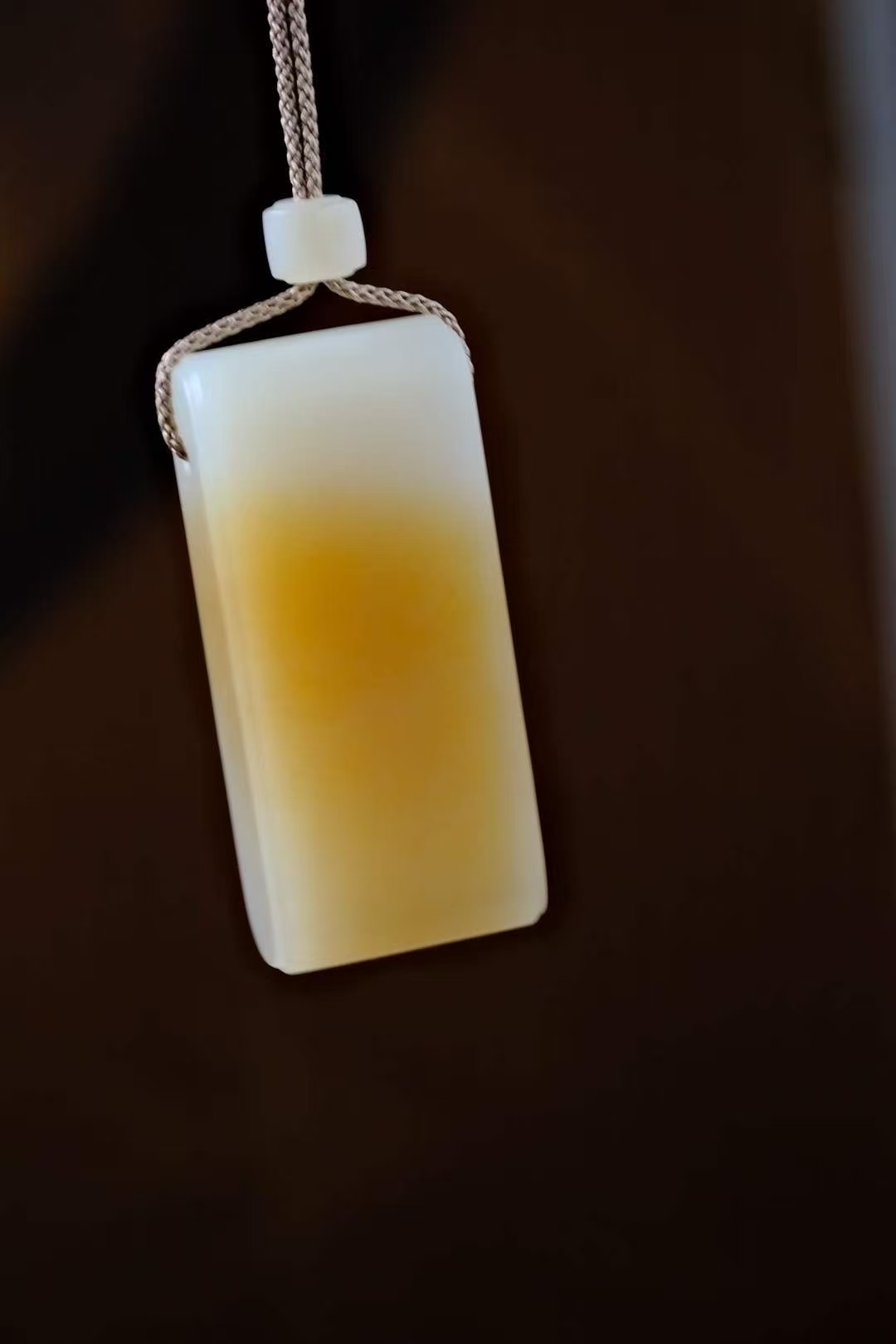和田玉,俄芭莎無事牌,糖白雙色,厚實大氣個性,形狀帥氣顏色溫暖,治愈系。