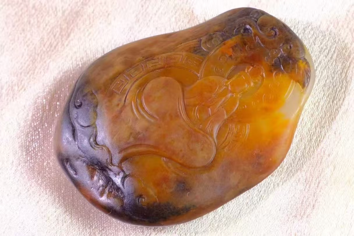 • 和田玉籽料黃沁隨形,天然和田玉軟玉