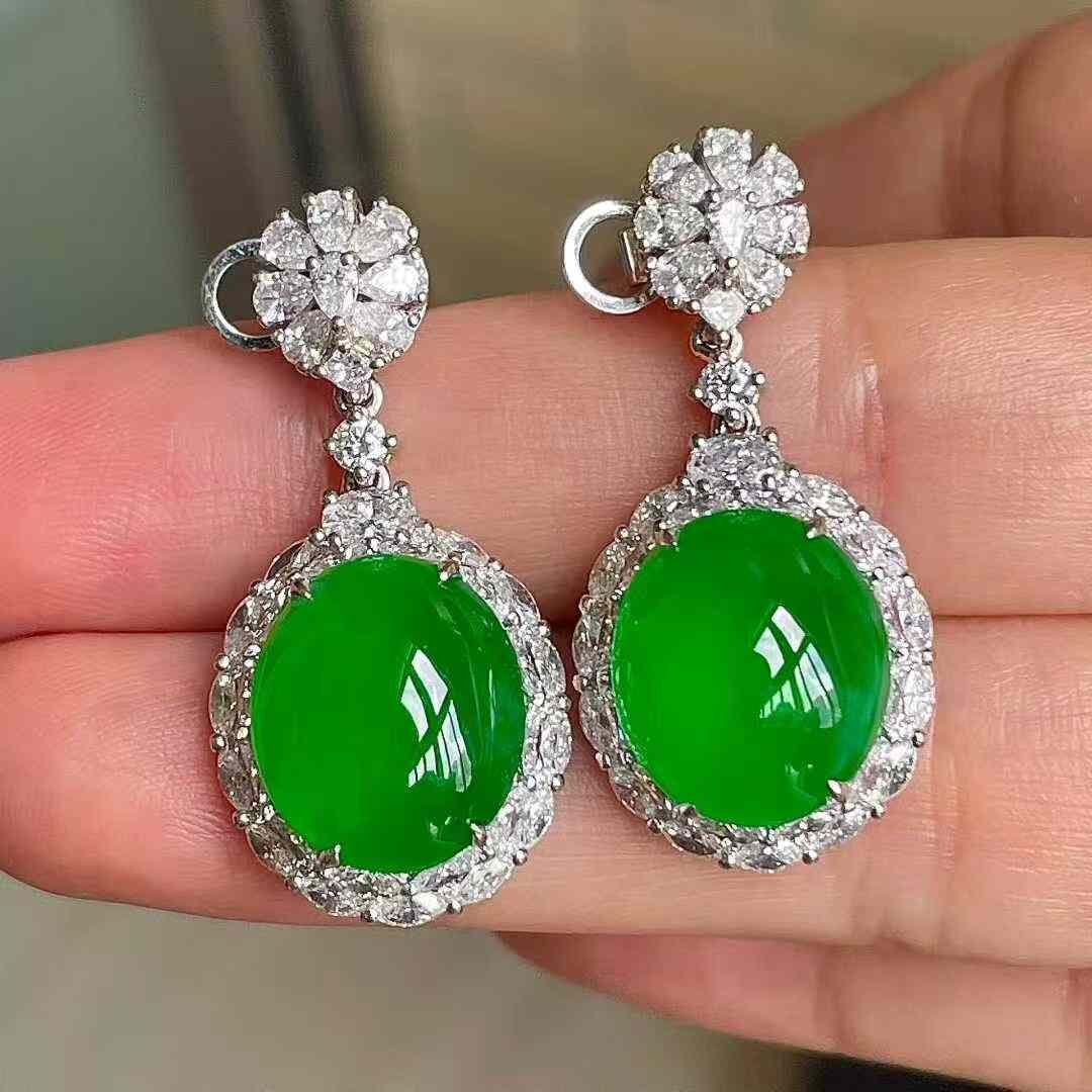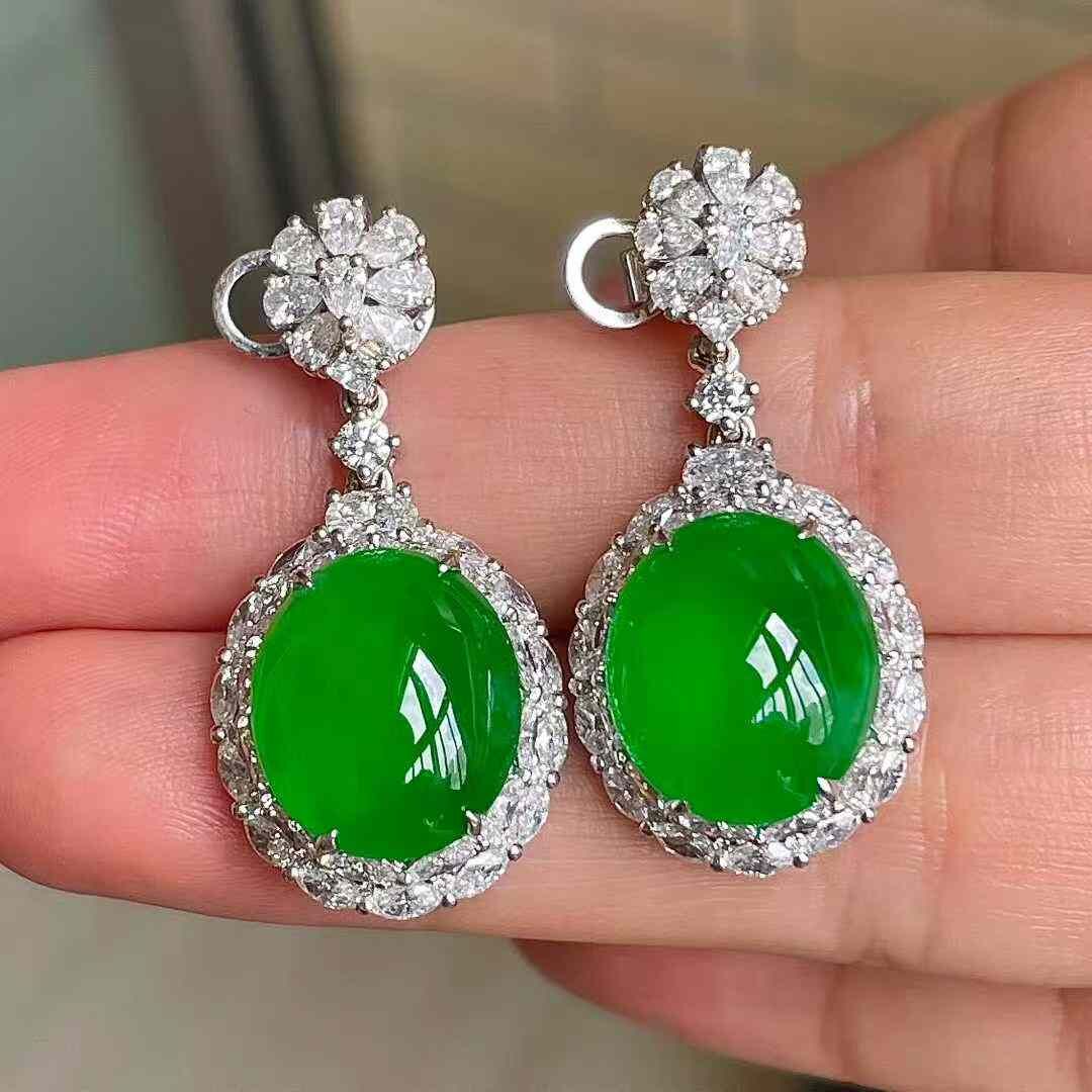 • 翡翠高冰陽綠耳墜,天然翡翠A玉, 緬甸玉, Jade, Jadeite