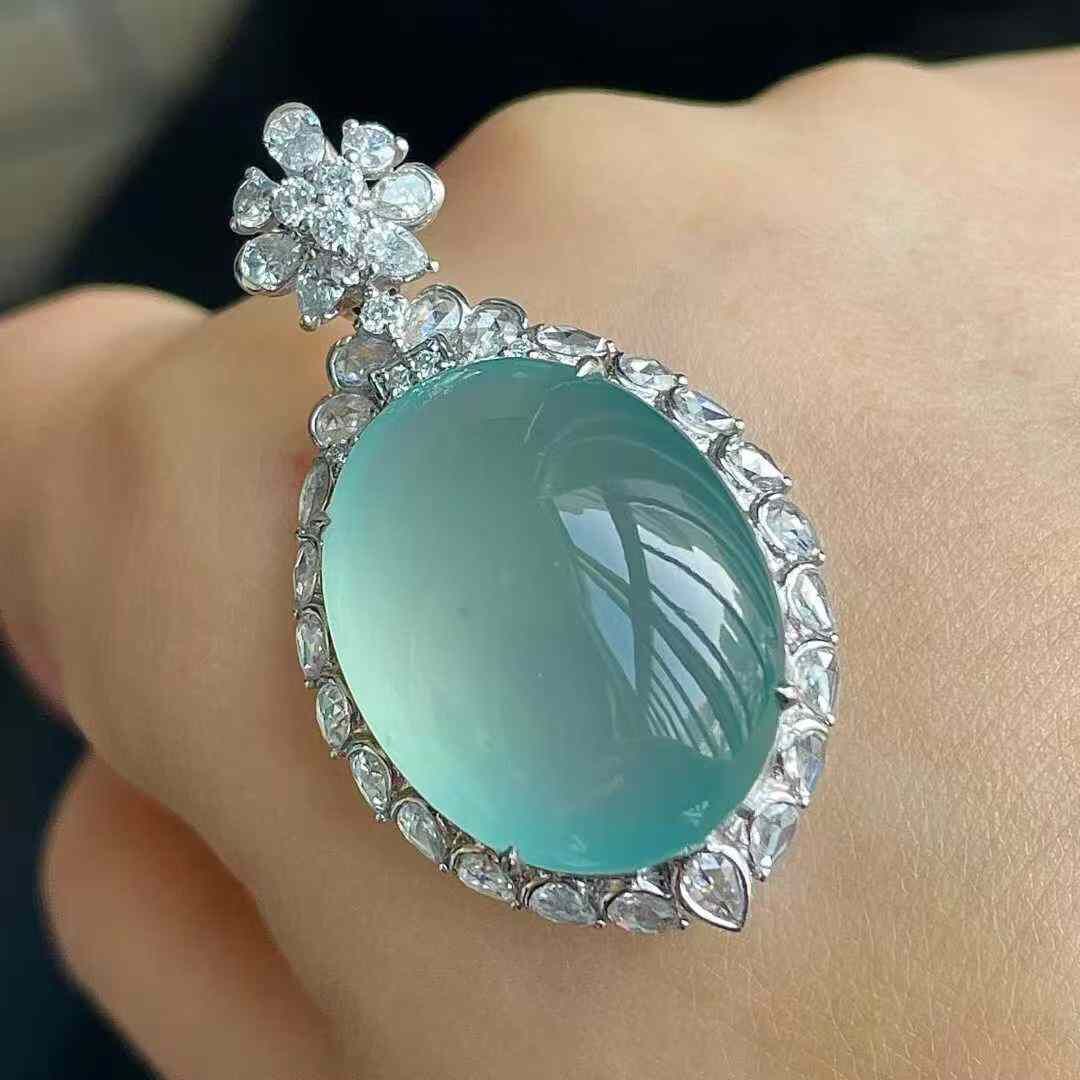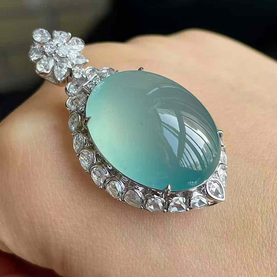 • 翡翠高冰天空藍鴿子蛋吊墜,天然翡翠A玉, 緬甸玉, Jade, Jadeite