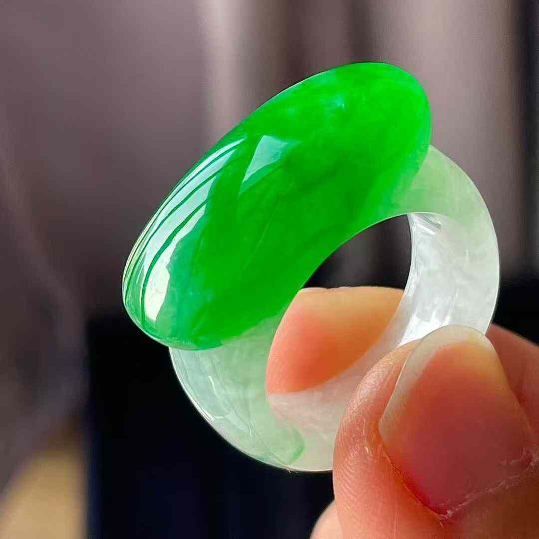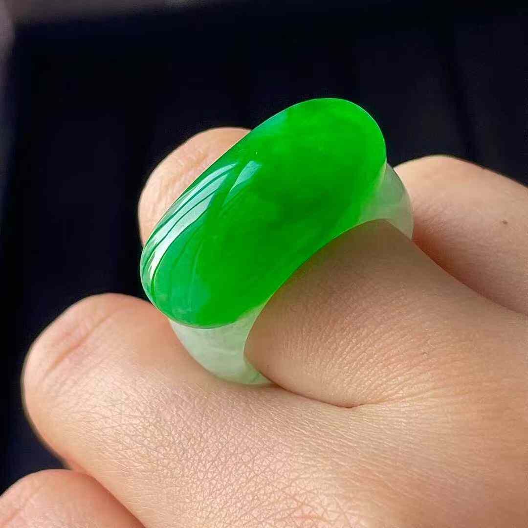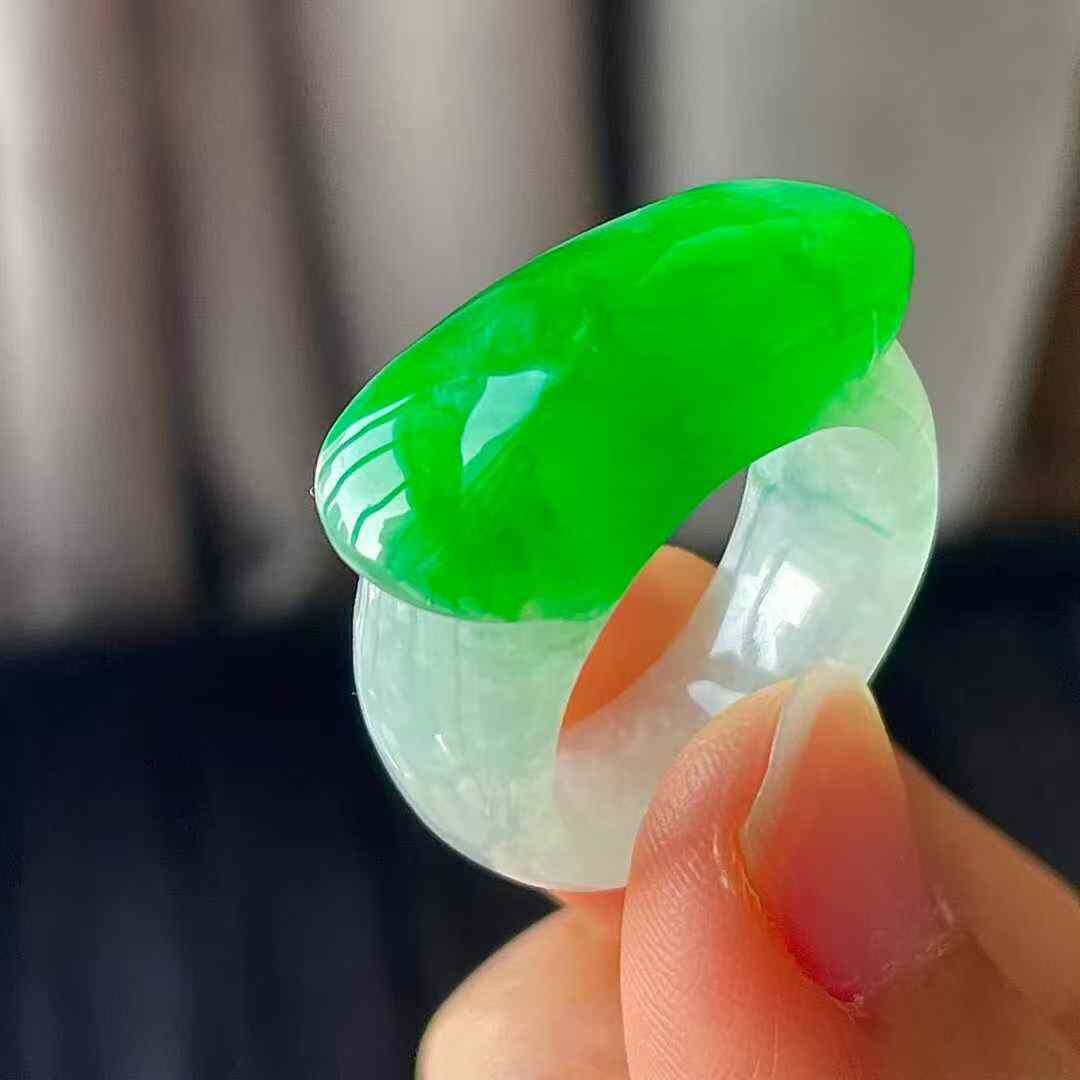 • 翡翠冰陽綠馬鞍扳指 (圈口 14號),天然翡翠A玉, 緬甸玉, Jade, Jadeite