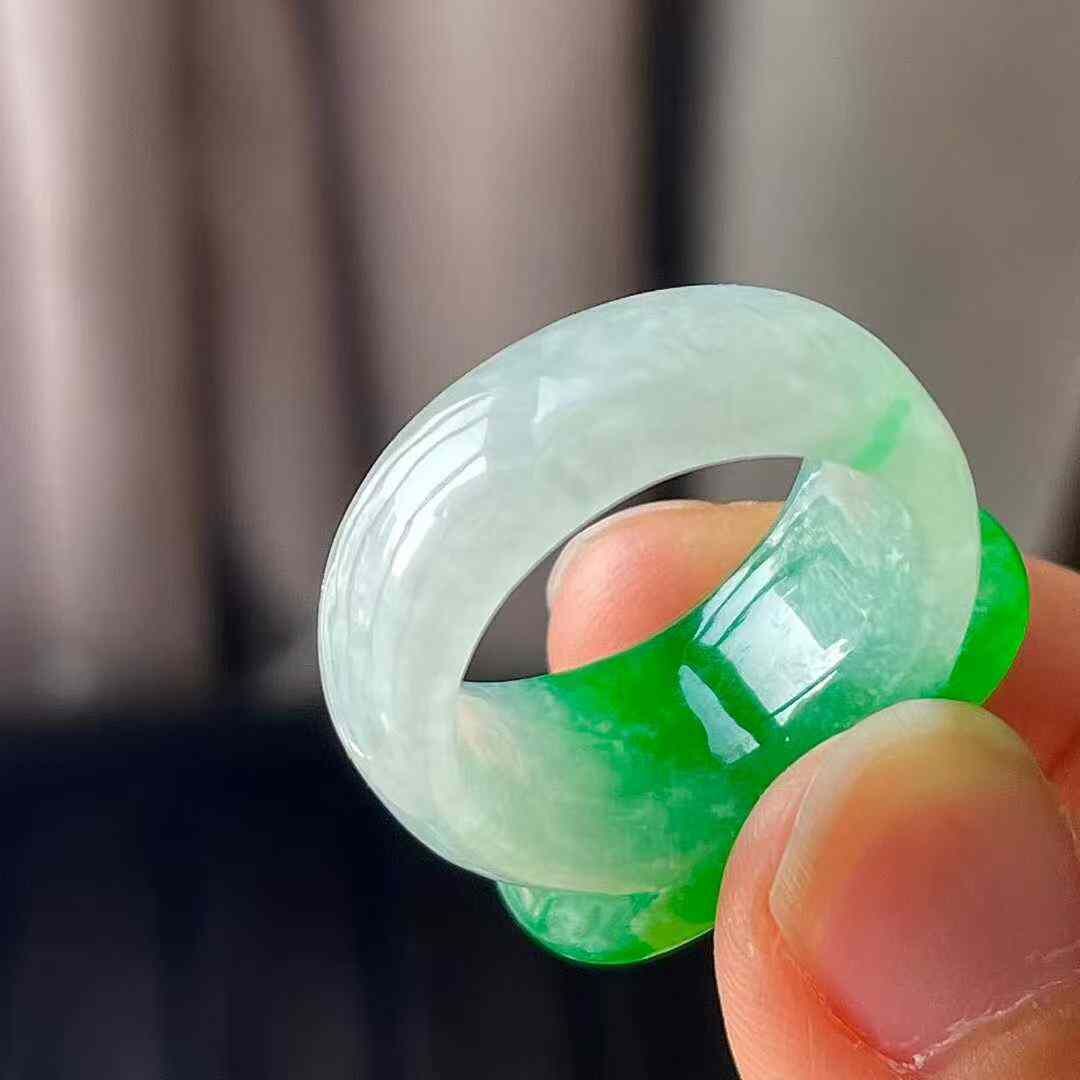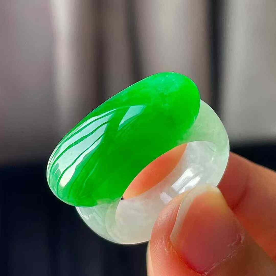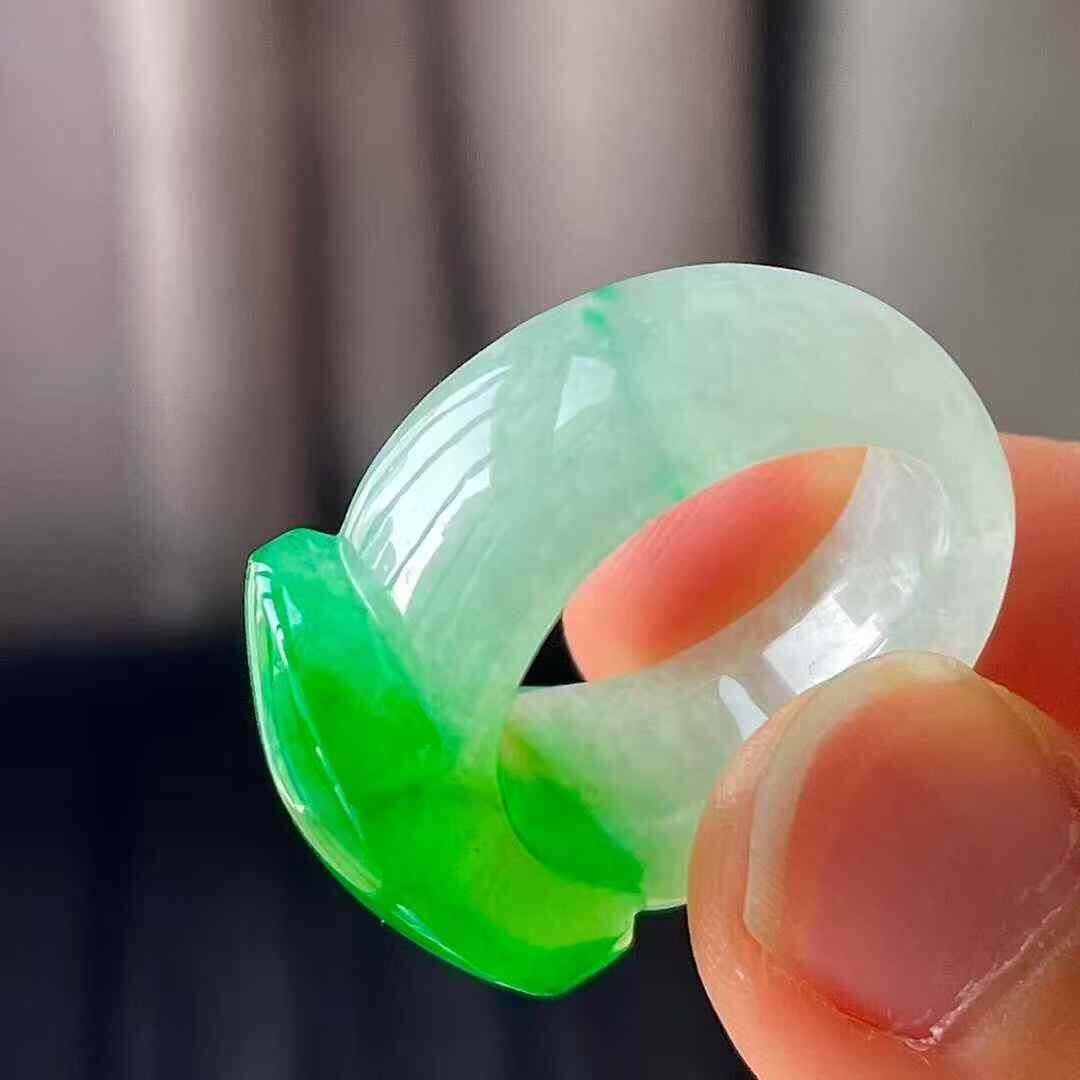 • 翡翠冰陽綠馬鞍扳指 (圈口 14號),天然翡翠A玉, 緬甸玉, Jade, Jadeite