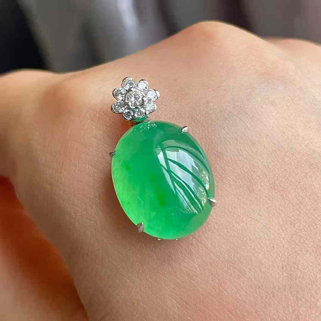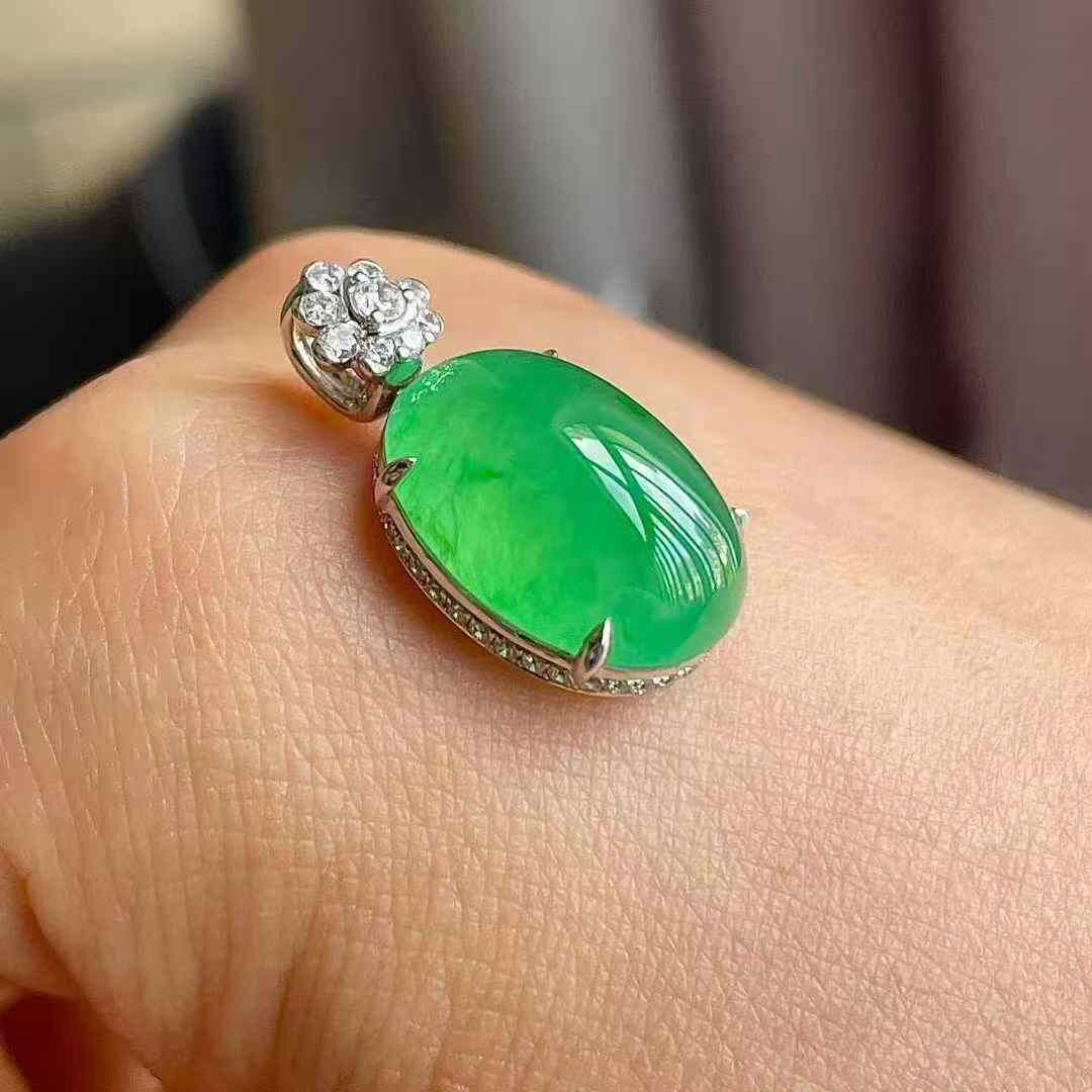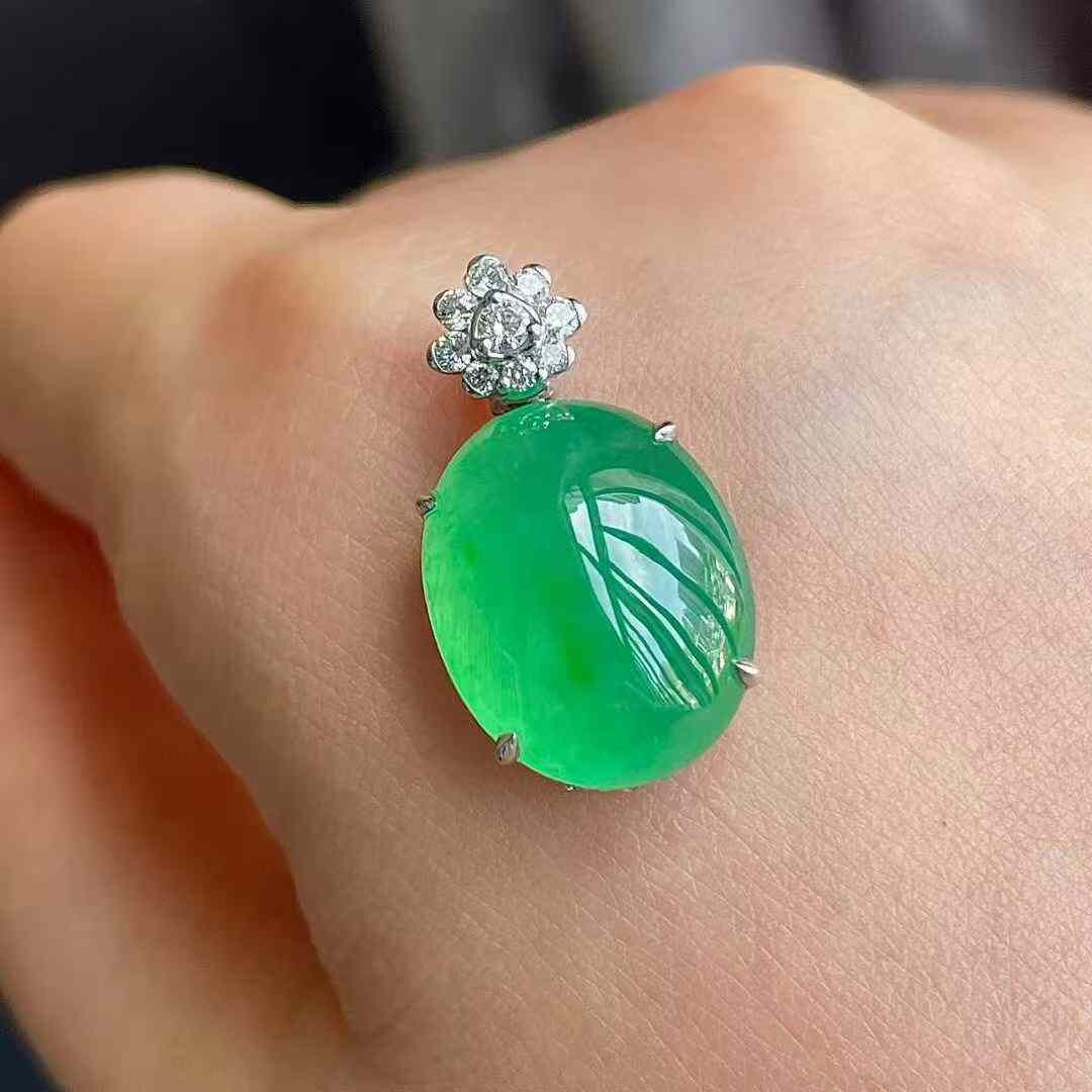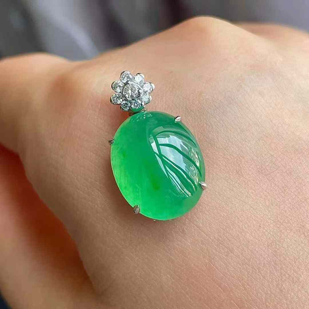 • 翡翠高冰陽綠鴿子蛋吊墜,天然翡翠A玉, 緬甸玉, Jade, Jadeite