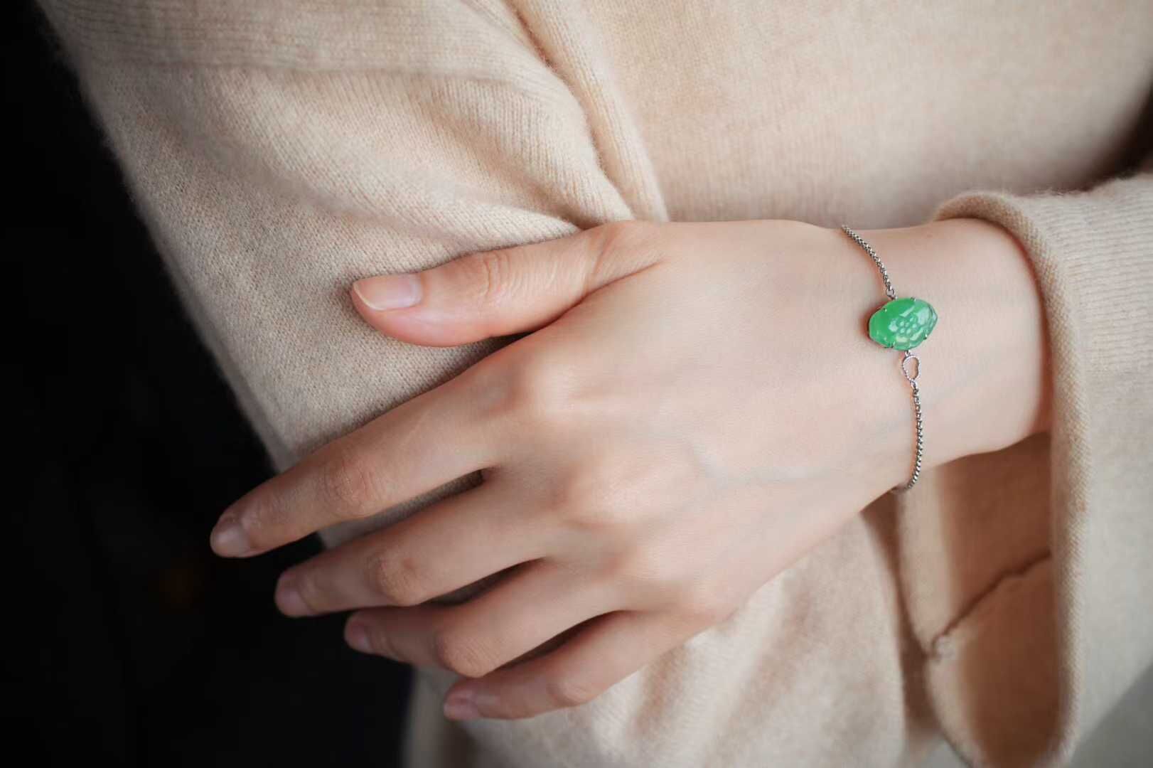 • 翡翠冰種陽綠好運連連手鏈,天然翡翠A玉, 緬甸玉, Jade, Jadeite