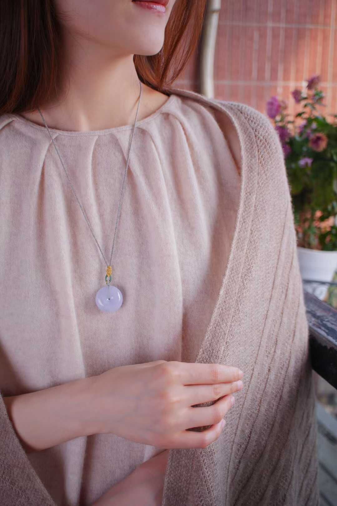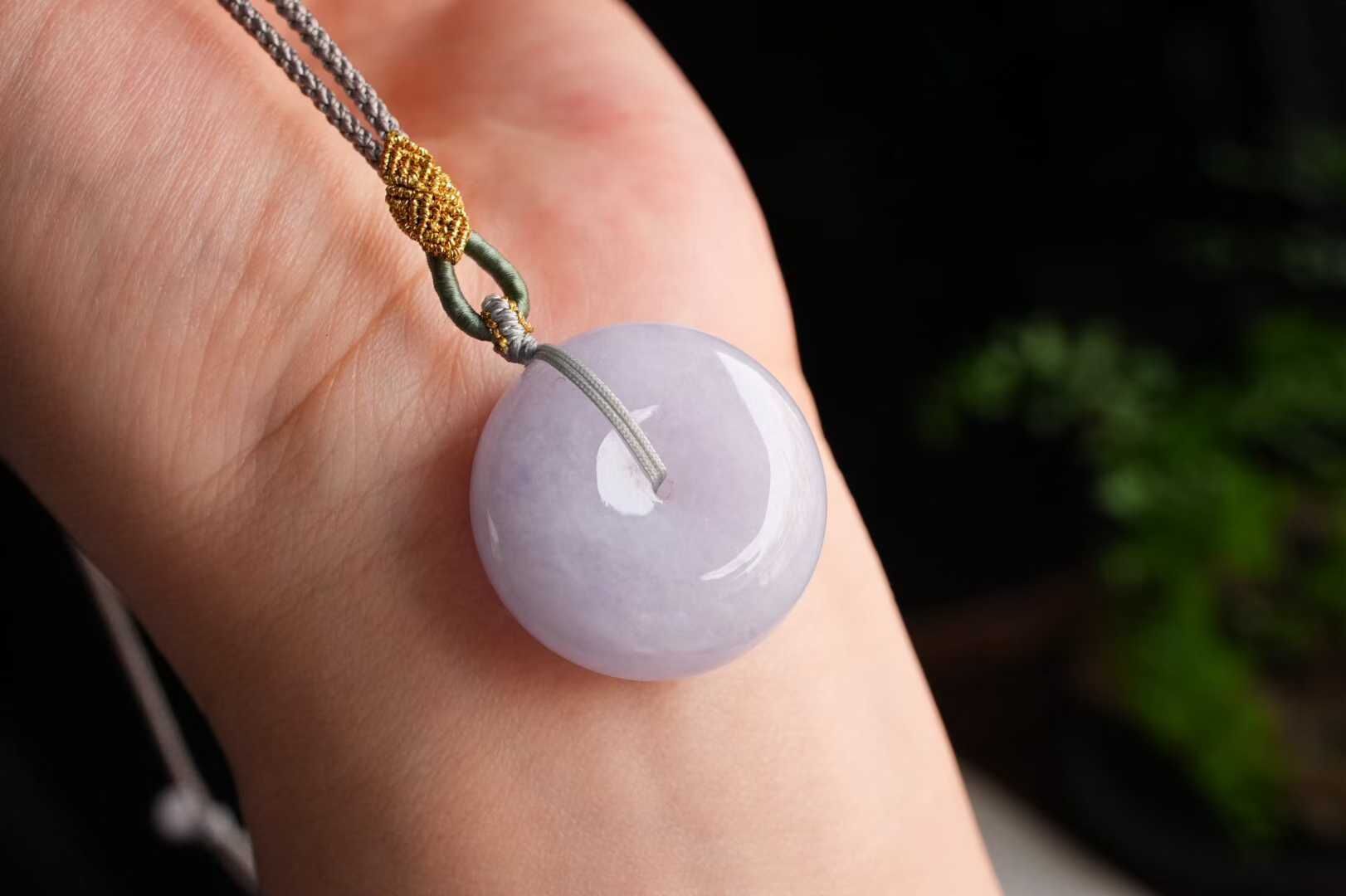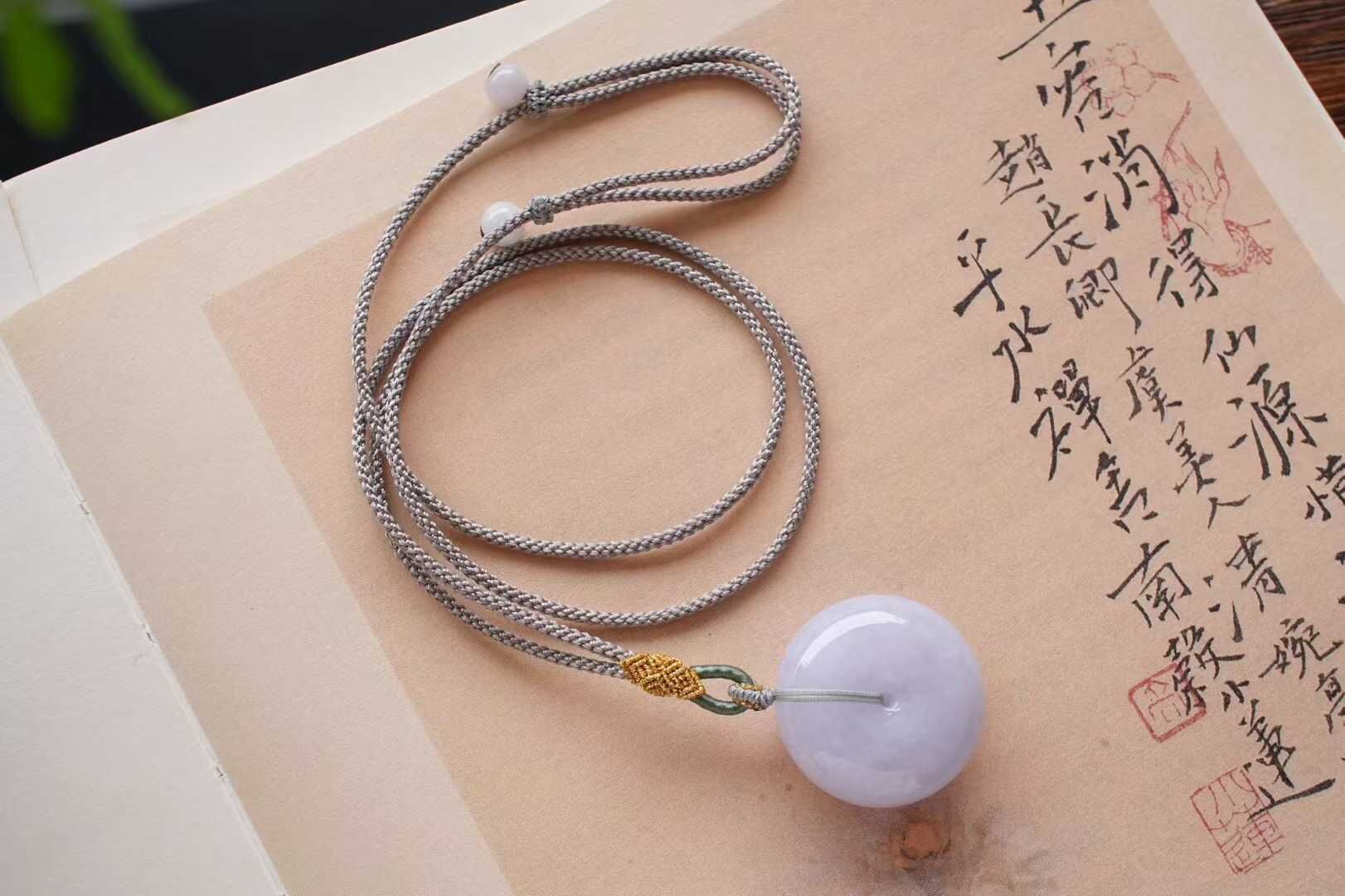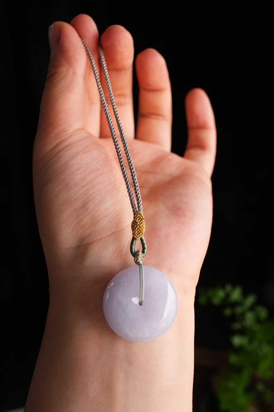 天然翡翠A玉,緬料紫羅蘭,冰潤溫柔,溫柔清新的調調,個頭也不小!純手工編繩設計,佩戴溫婉大方,飽滿厚實,品相絕佳。