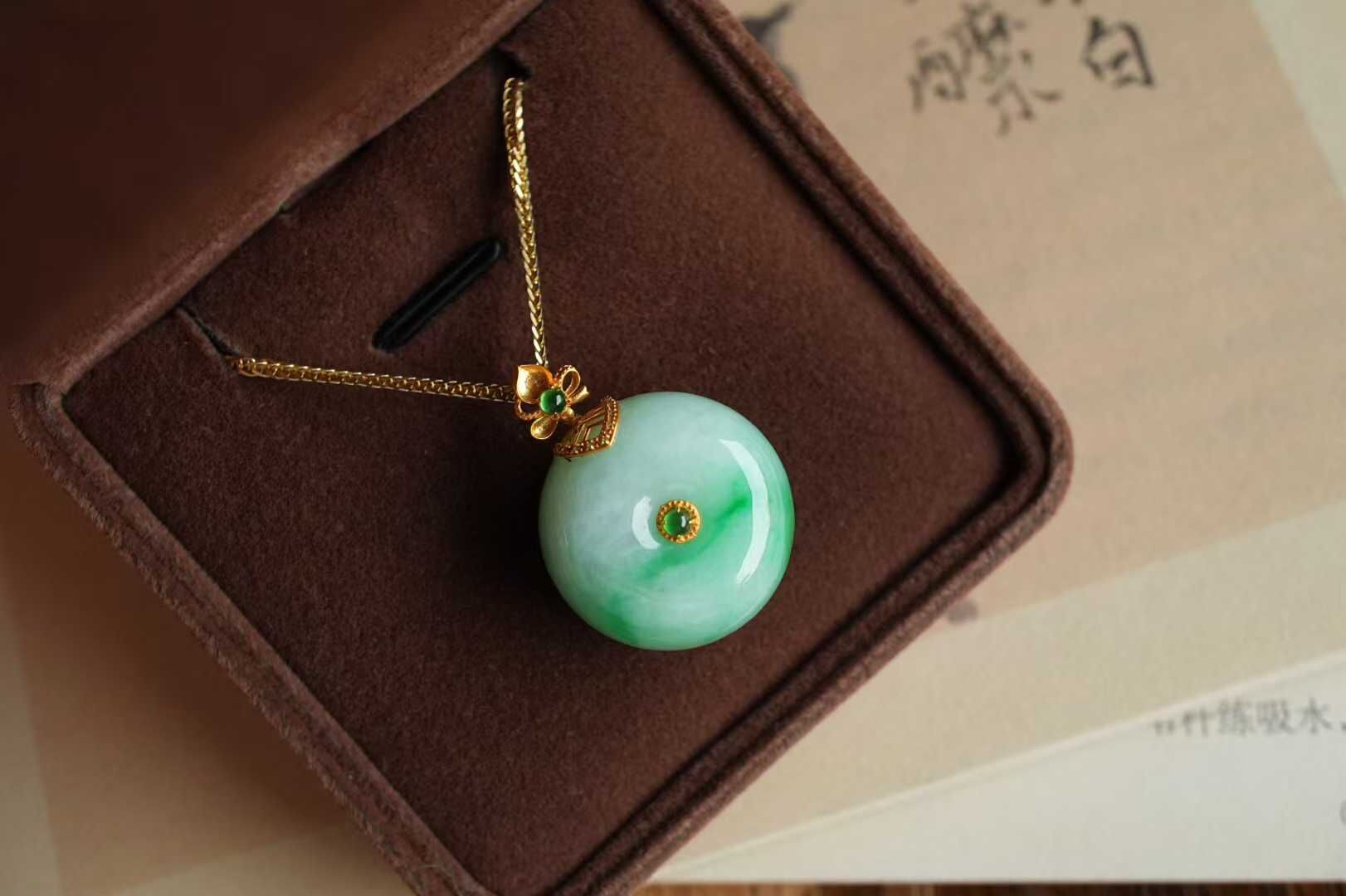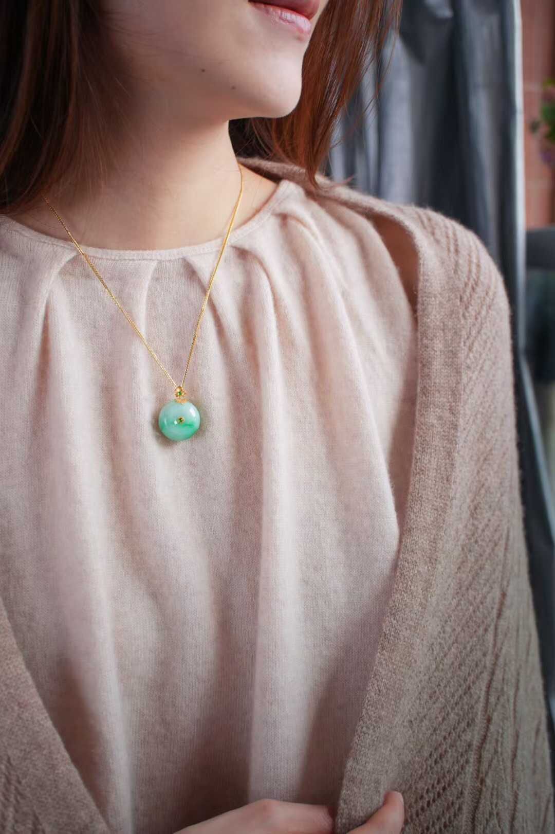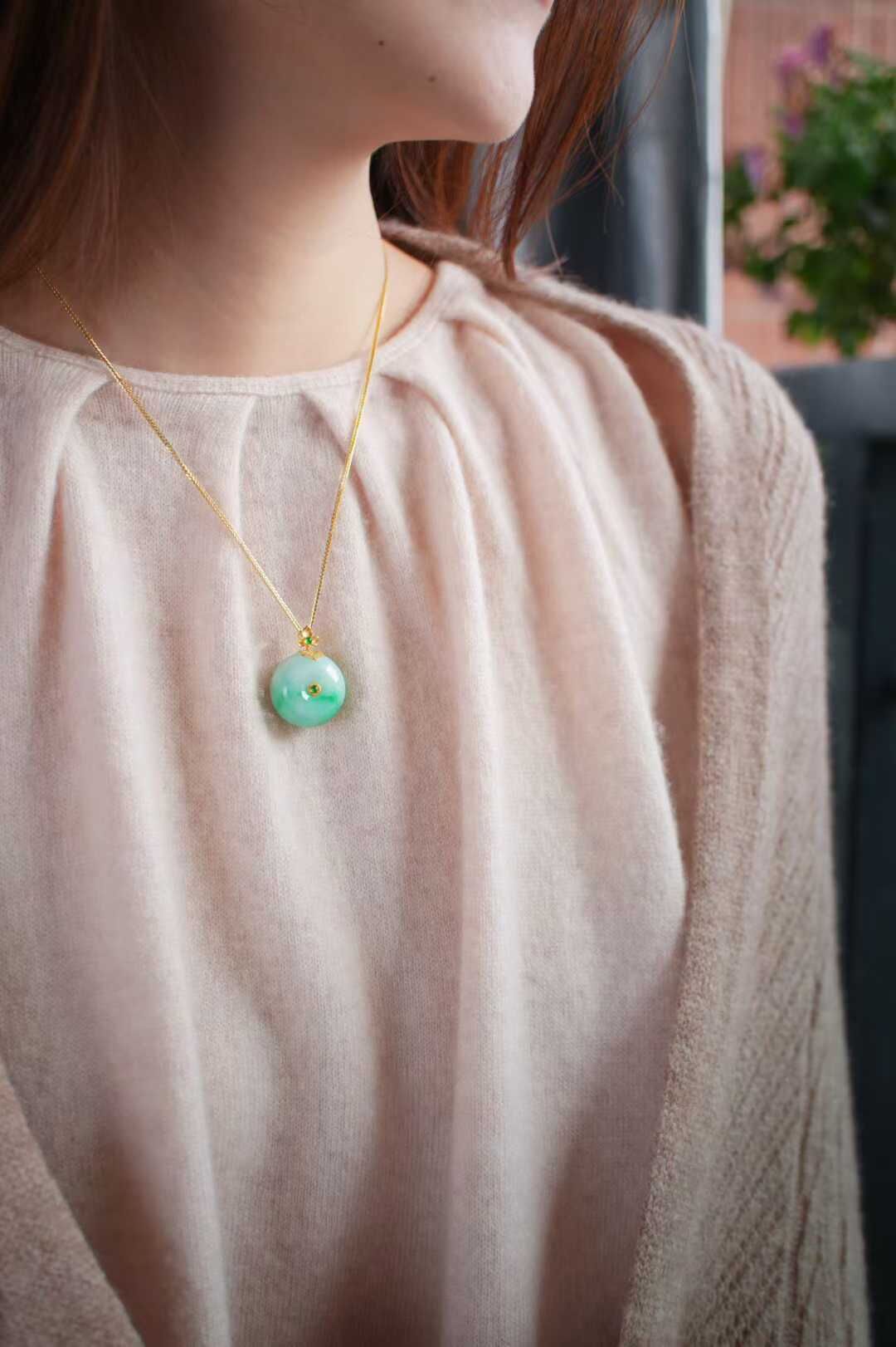 18K金花絲工藝打造扣頭,點綴正陽綠翡翠蛋面,戴在頸間自帶溫柔氣場。既是穿搭亮點,也是藏在細節里的護身符,新年送禮自戴,都很推薦。