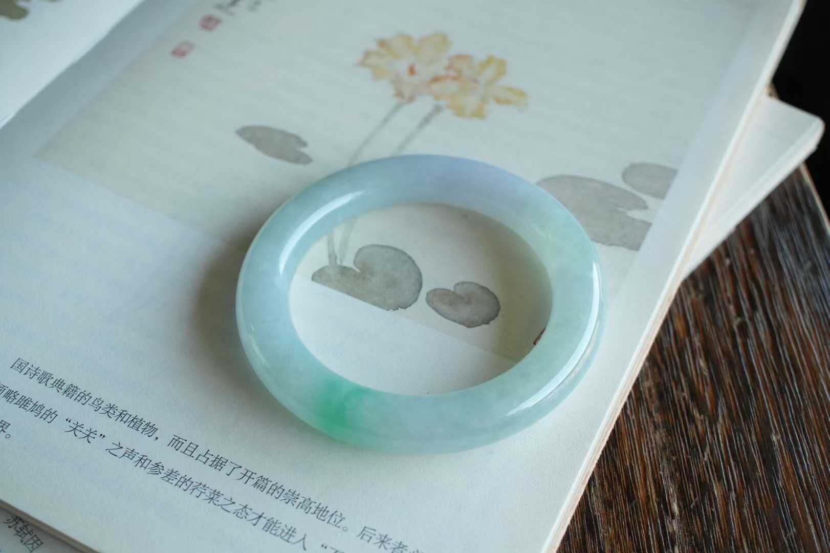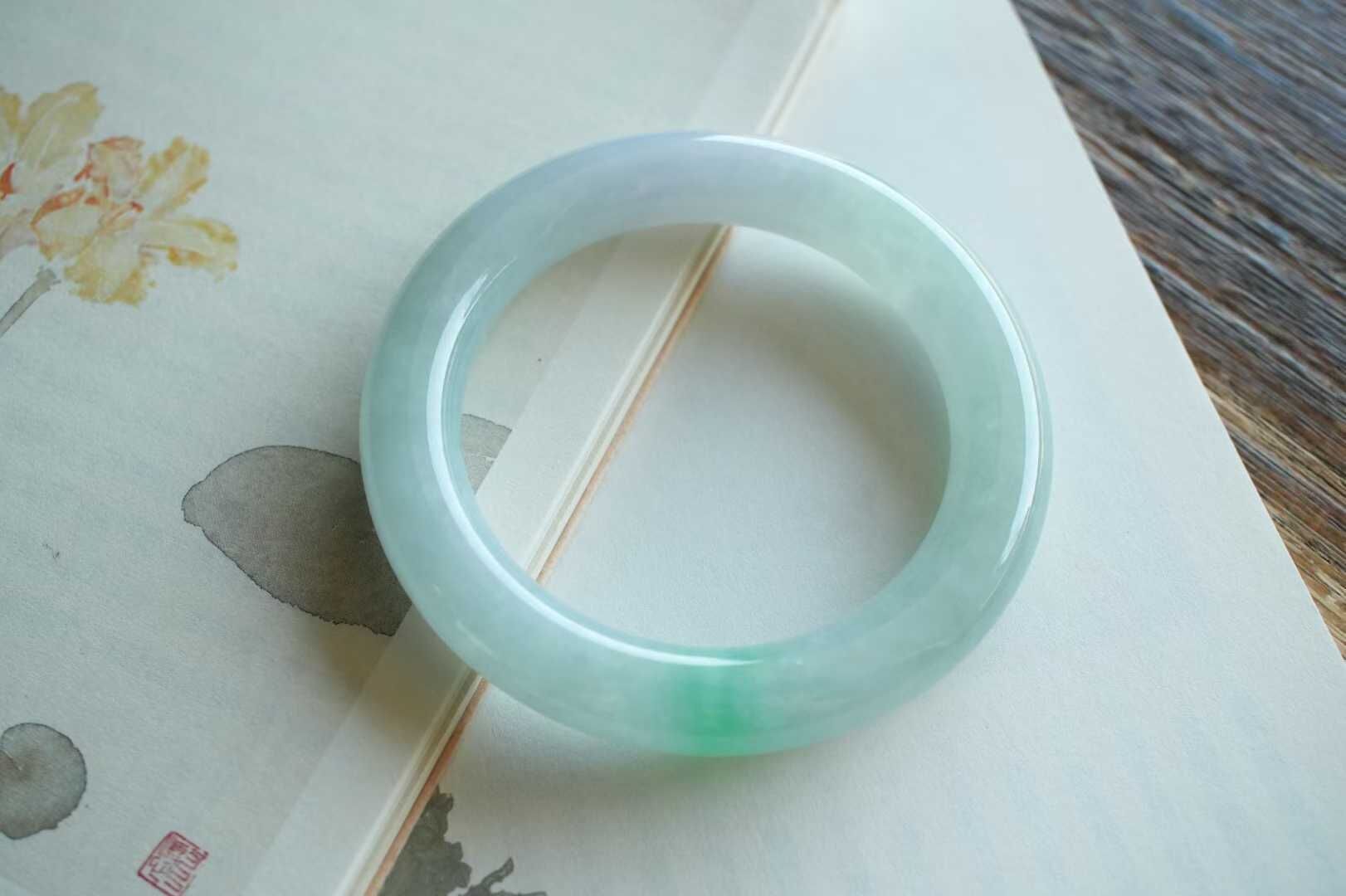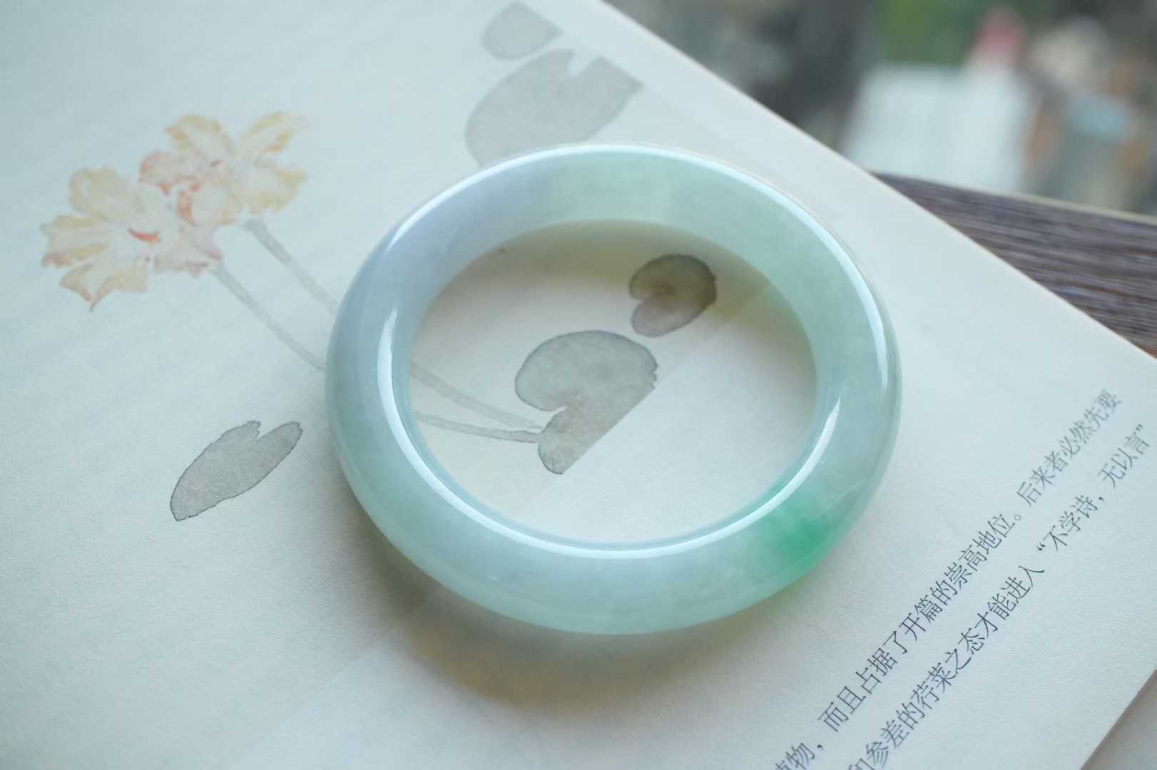 122845 56.5mm翡翠冰糯種白底青圓條手鐲