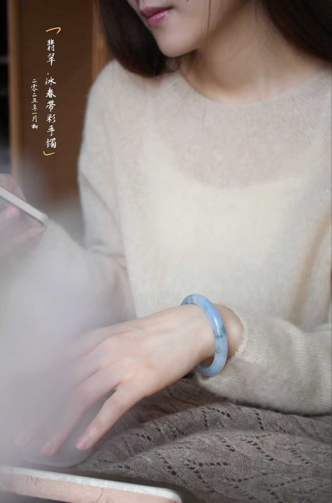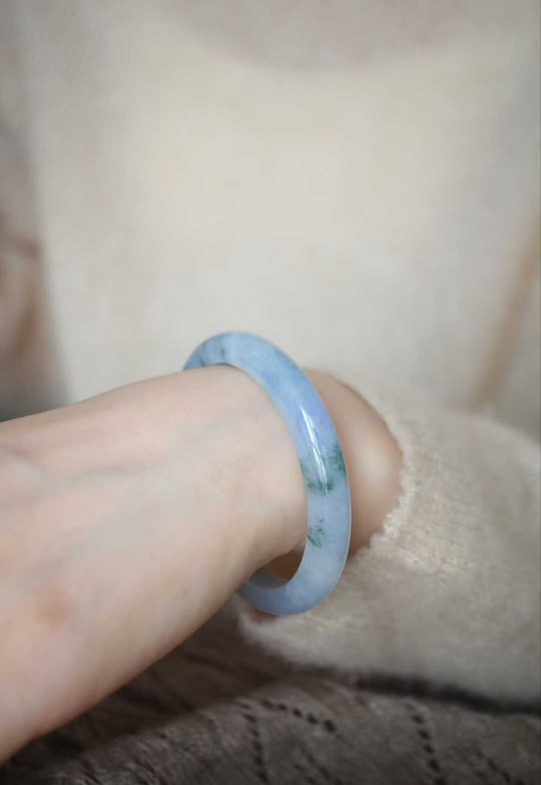 天然翡翠A玉,緬料老坑種。這條紫味好濃啊,可以說滿圈紫,飄花也很好看,而且難得的是種質很細膩,一點都不粗!要不是圈口偏小,這條價格肯定要翻一倍!