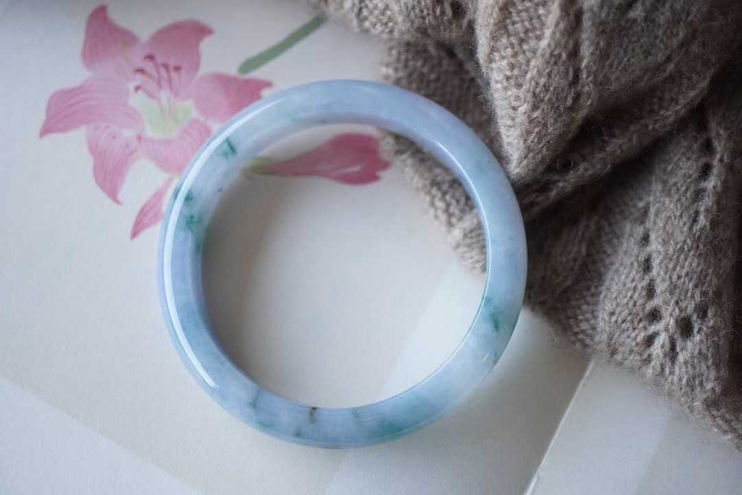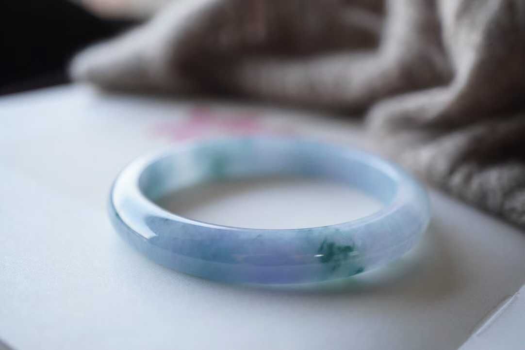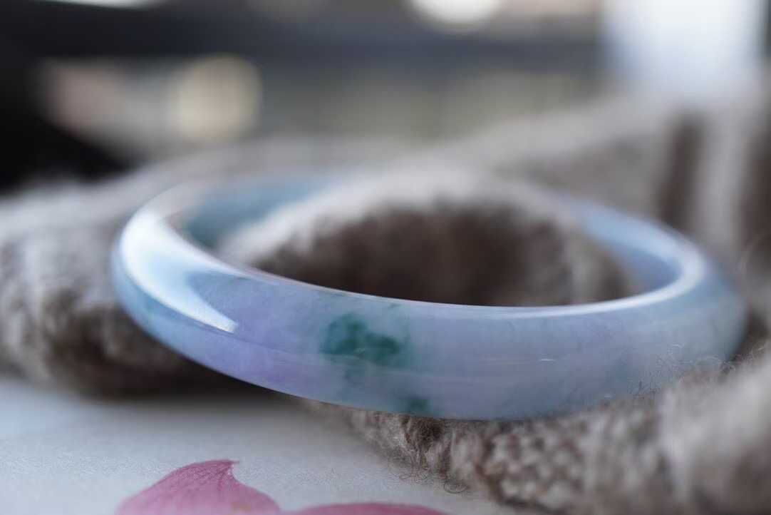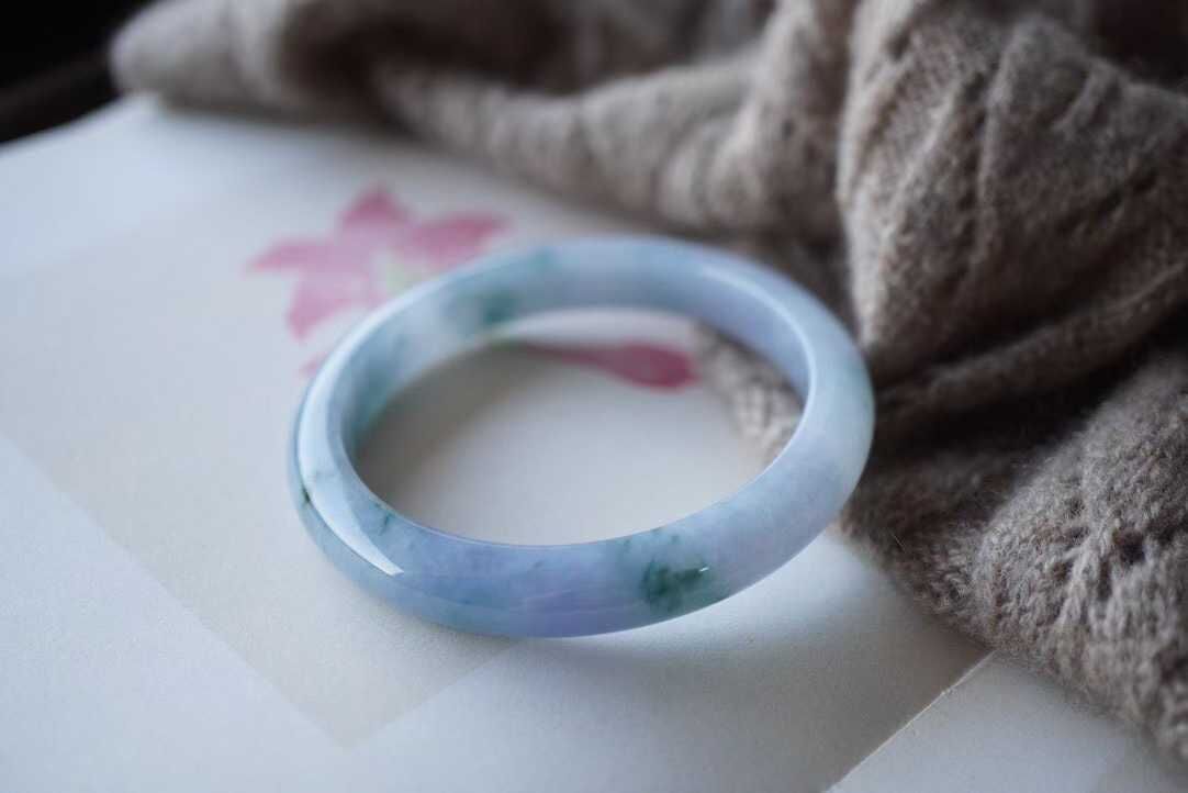 • 翡翠冰紫羅蘭飄花手鐲,天然翡翠A玉, 緬甸玉, Jade, Jadeite