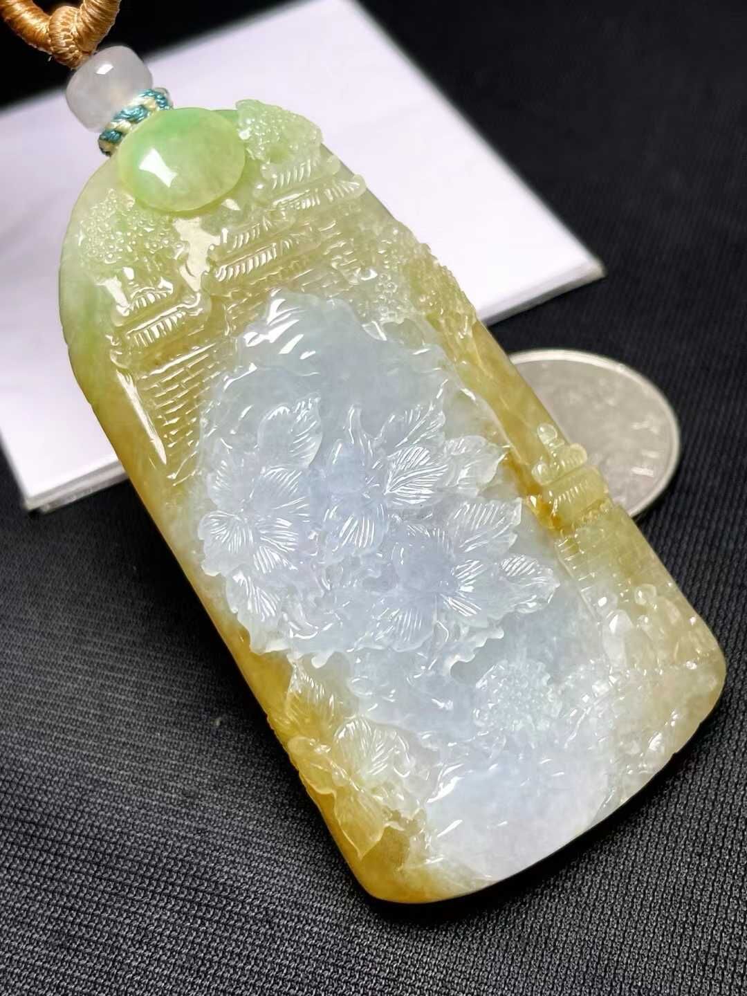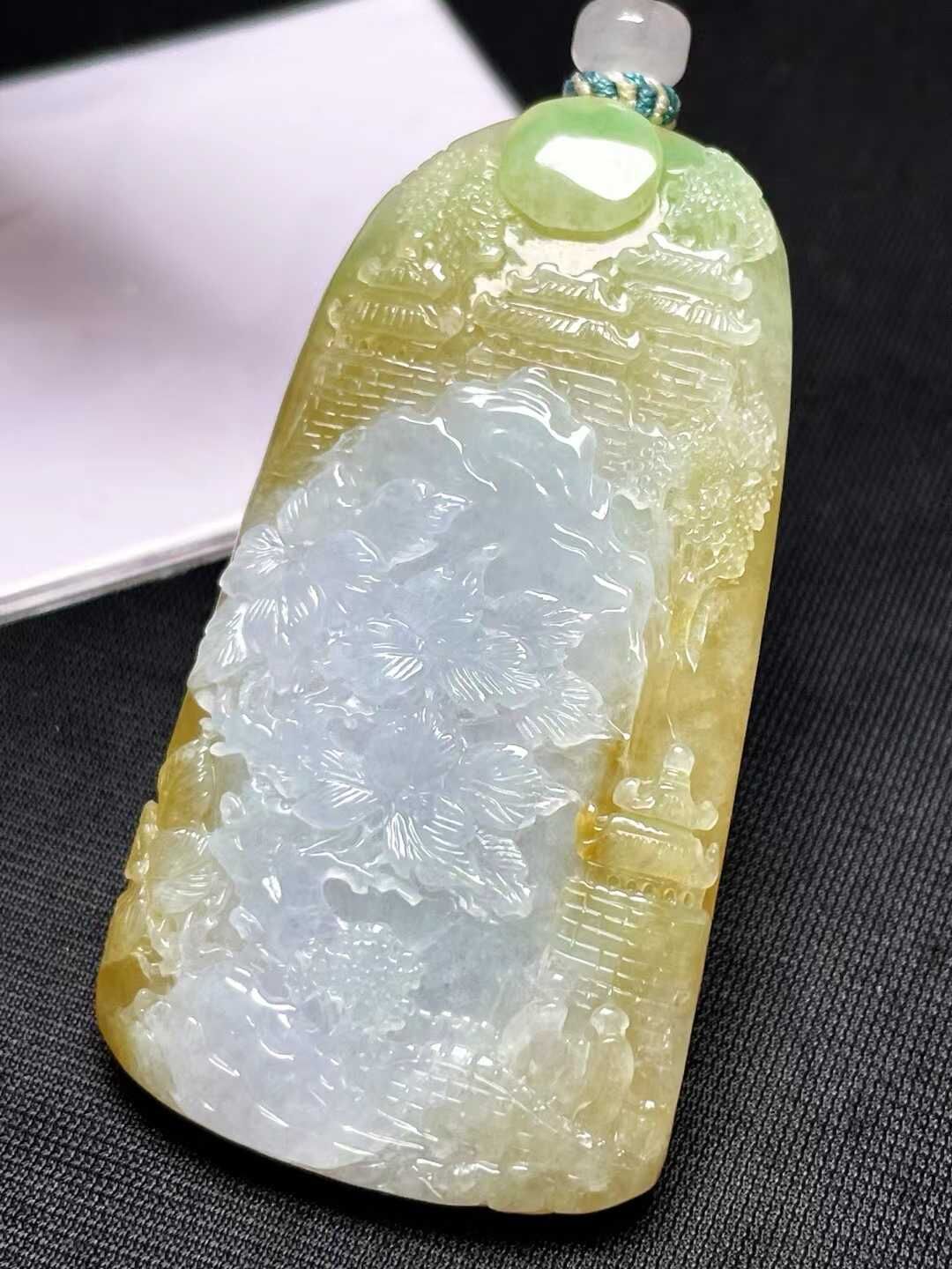 • 翡翠山水牌吊墜,天然翡翠A玉, 緬甸玉, Jade, Jadeite