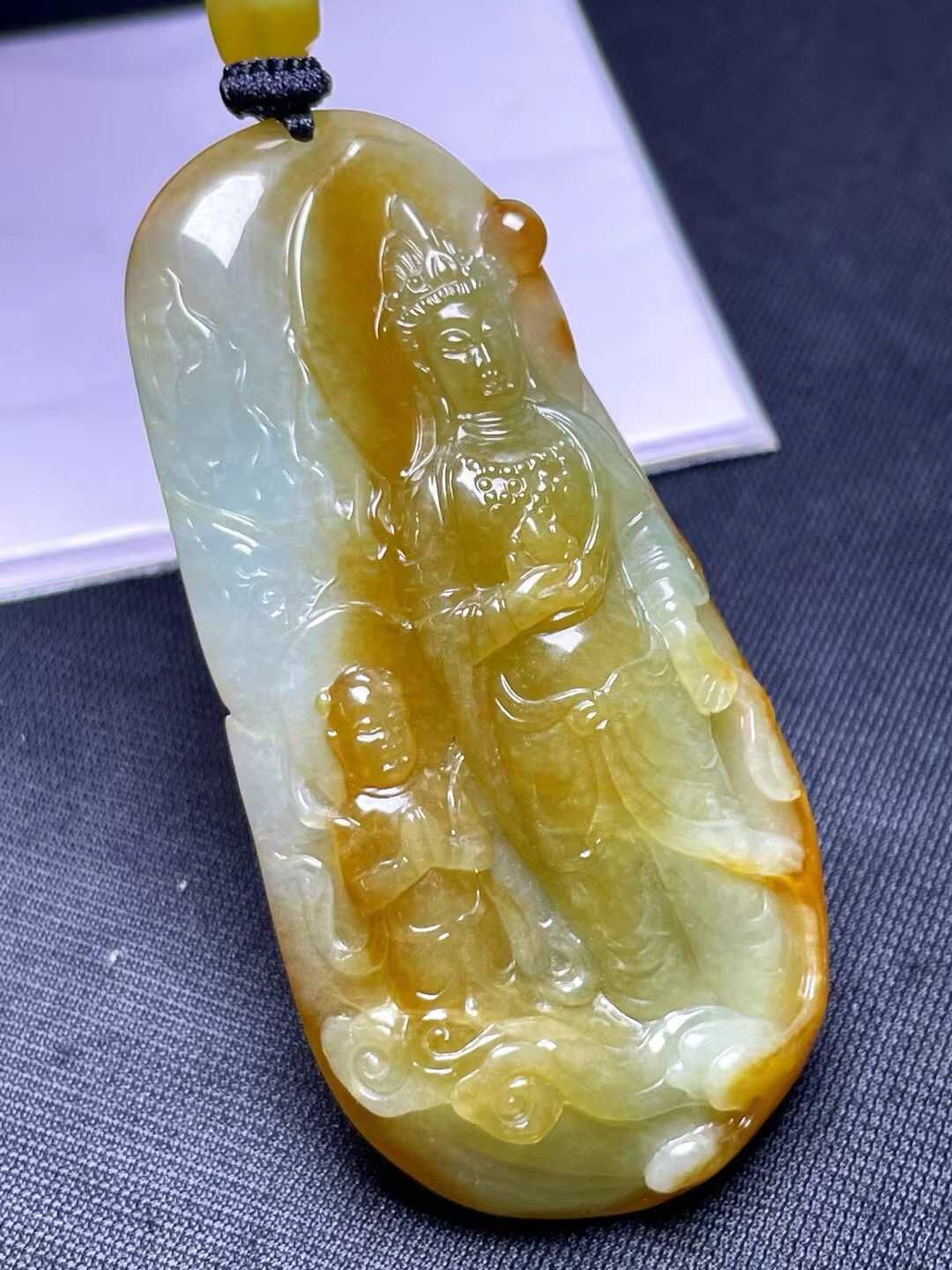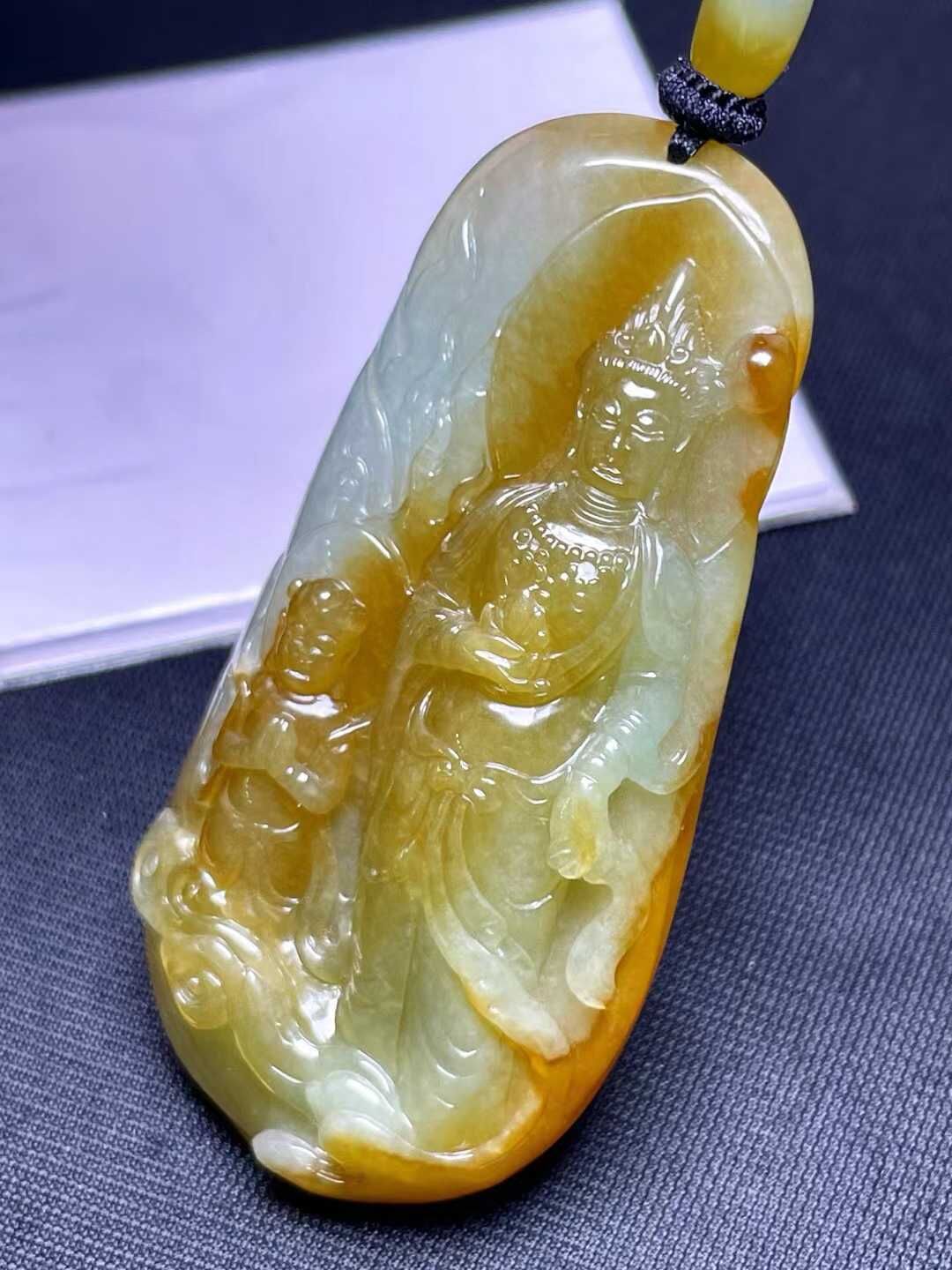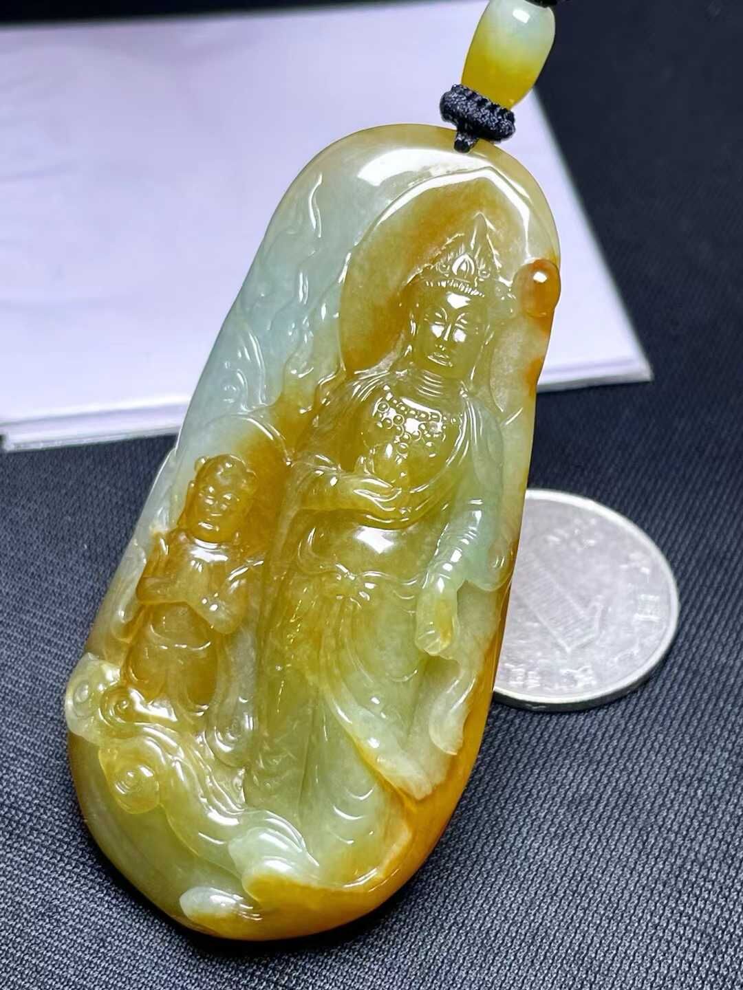 • 翡翠送子觀音吊墜,天然翡翠A玉, 緬甸玉, Jade, Jadeite