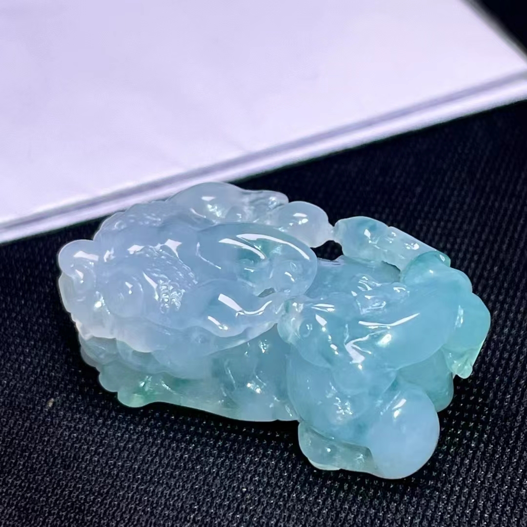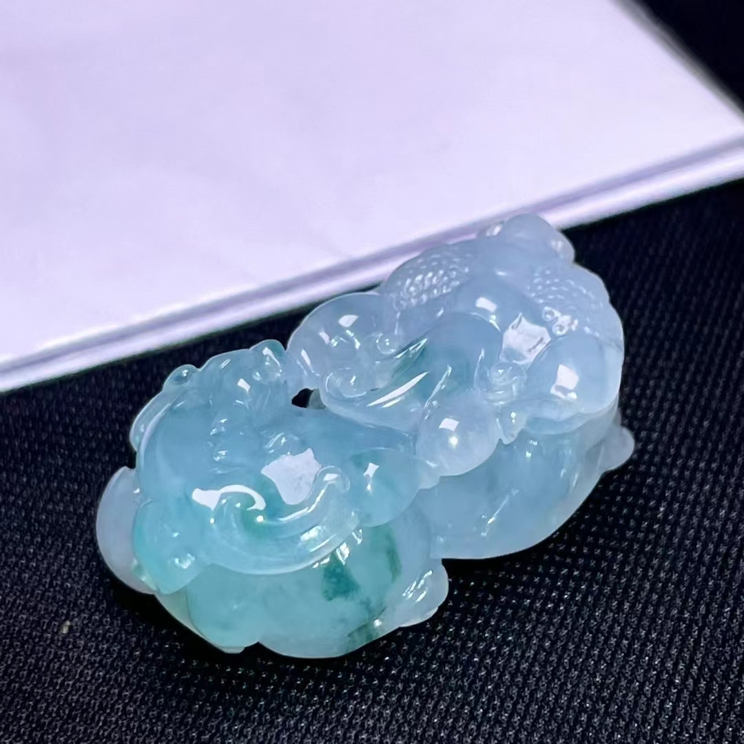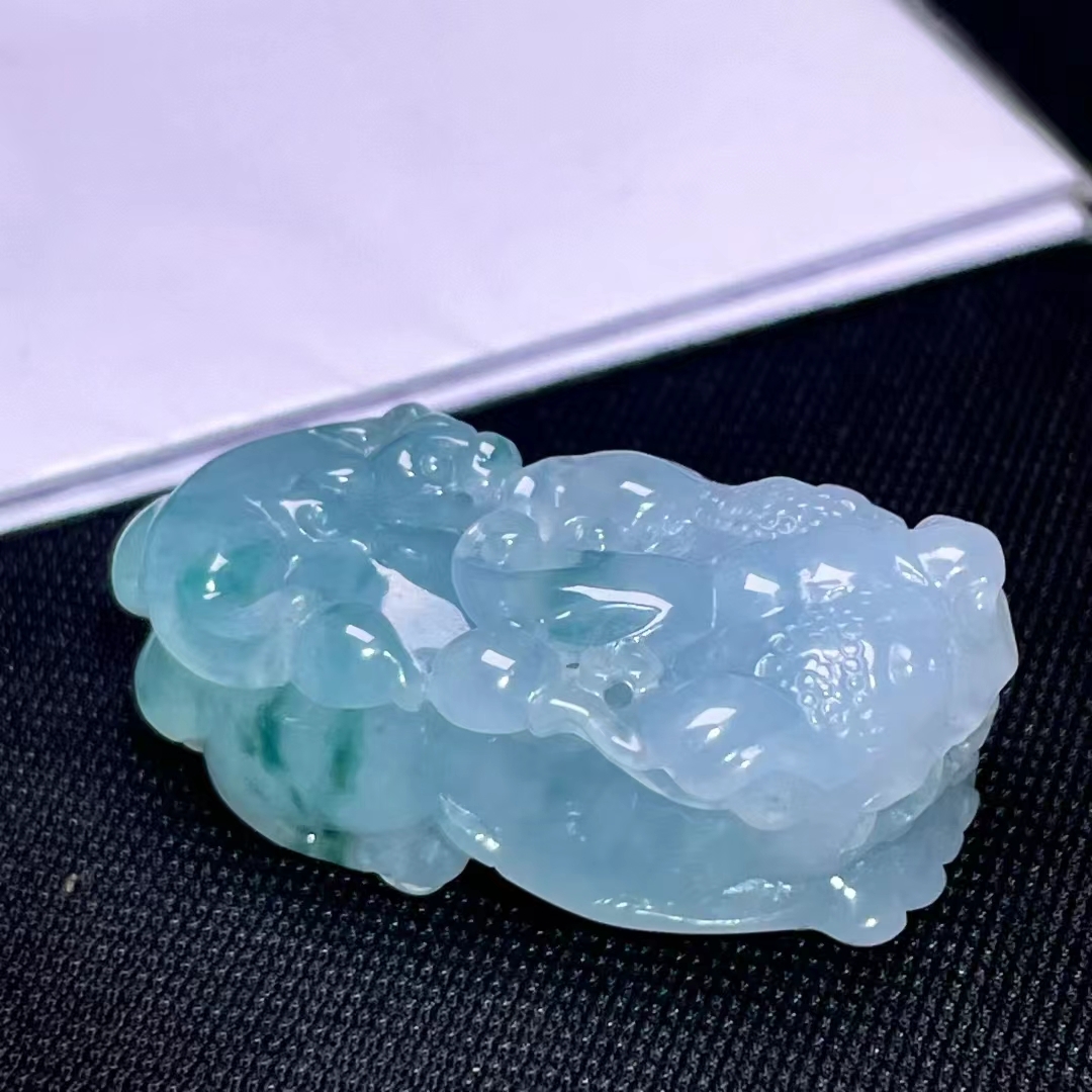 天然翡翠A玉,緬料,老坑冰種飄花,口含活動寶珠。
