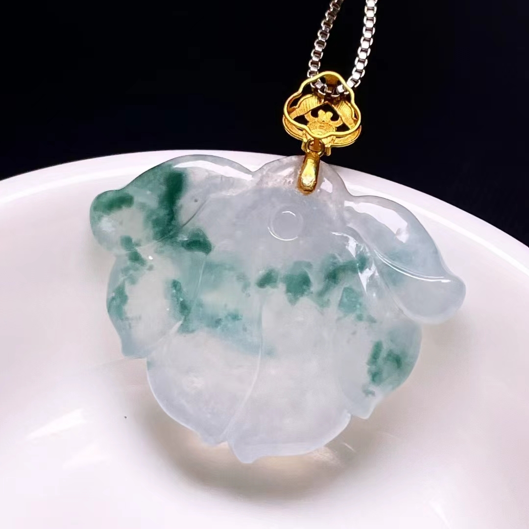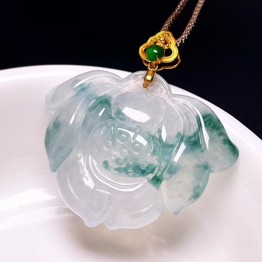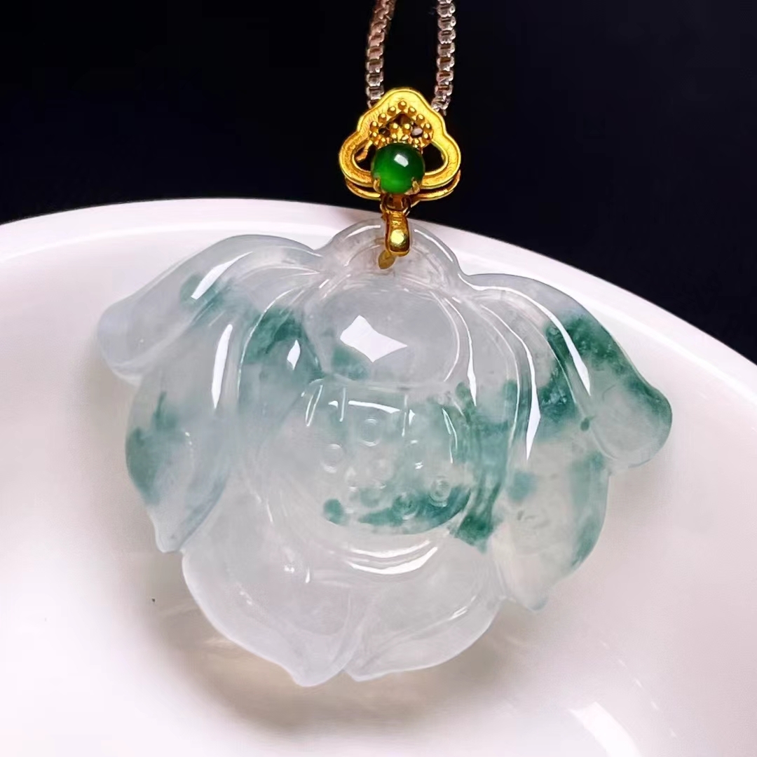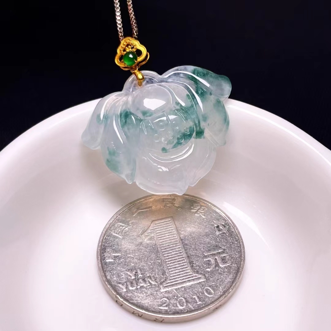 • 翡翠蓮花吊墜,天然翡翠A玉, 緬甸玉, Jade, Jadeite