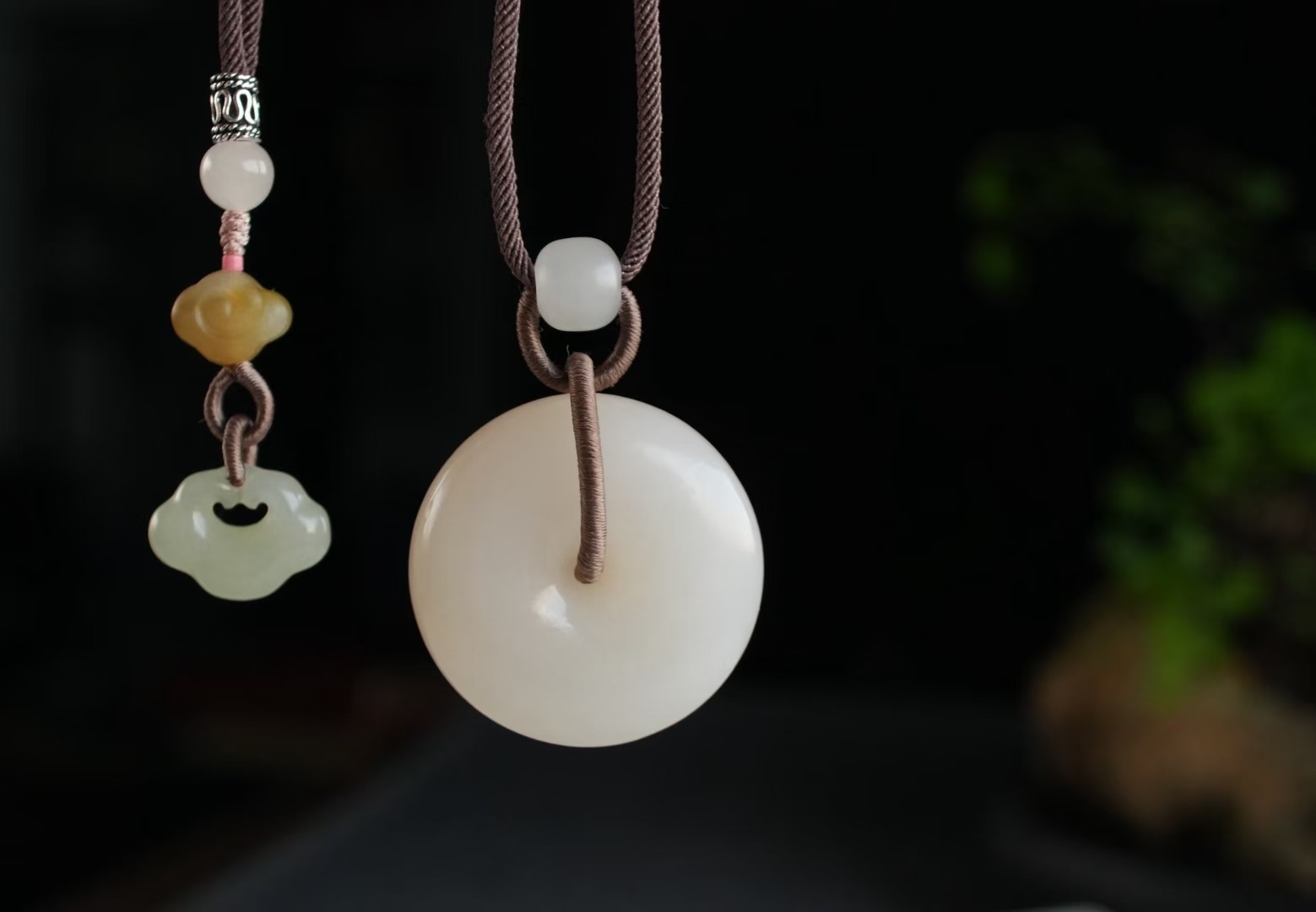搭配純手工製作進口調節繩,點綴和田玉如意、糖料祥雲,白玉路路通等,雙面均可佩戴。