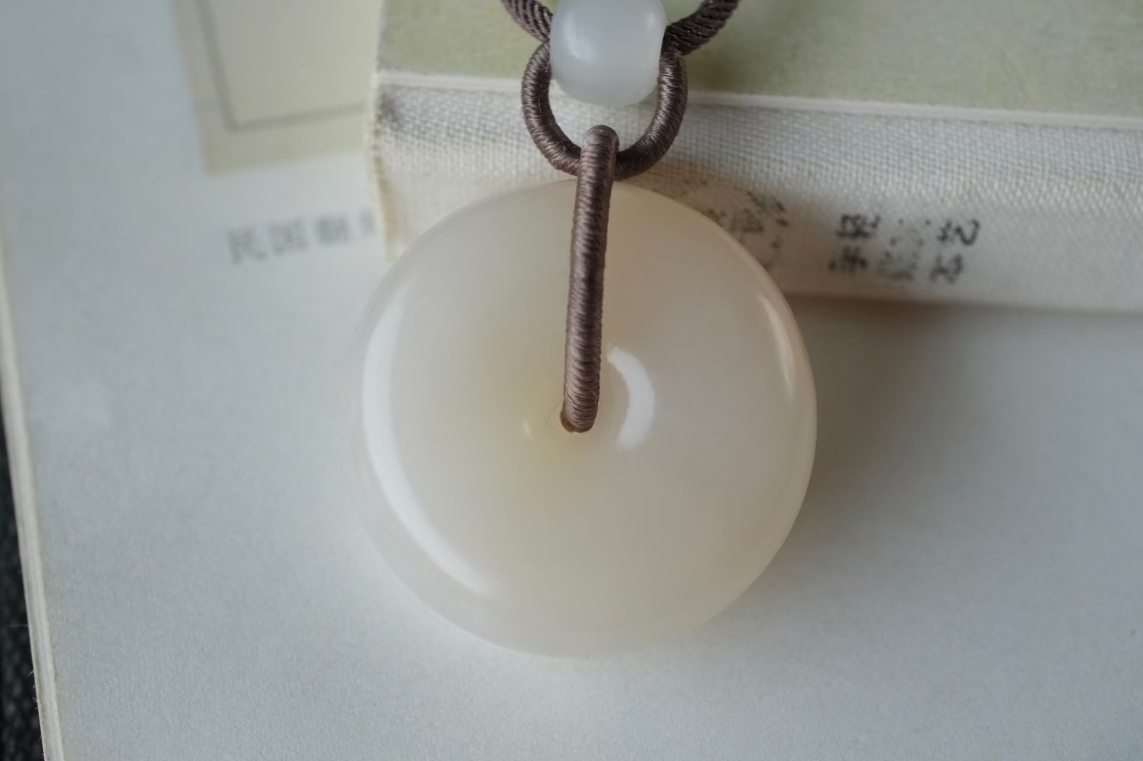 1229437 和田玉濃郁藕粉平安扣掛件 (30mm直徑)
