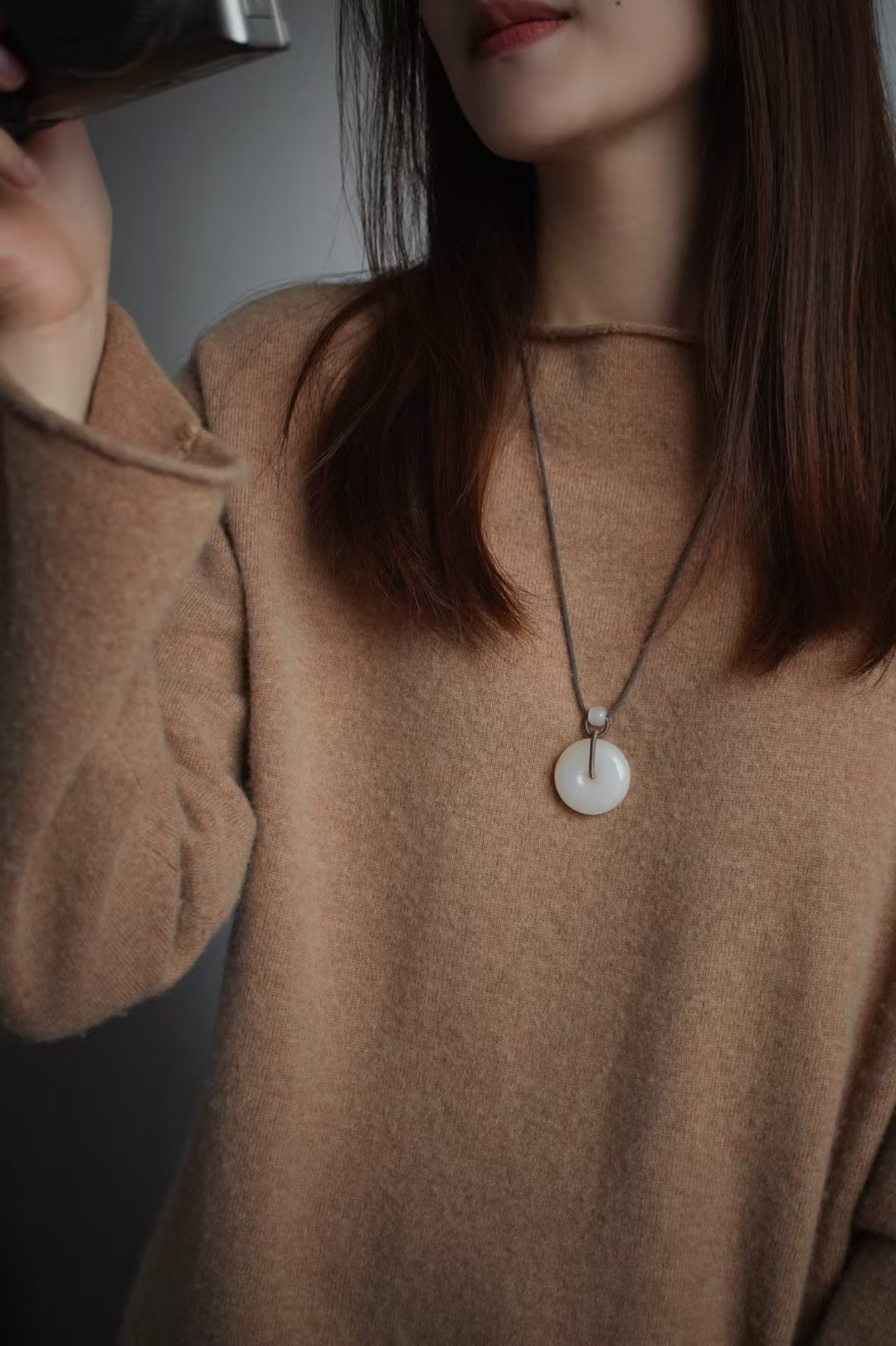 天然和田玉濃藕粉,特色雙色料,用料紮實,玉色不悶不灰,甜而不膩,上身婉約溫柔,扣子的細度、潤度都很好,無棉紋,無雜裂完美品相。