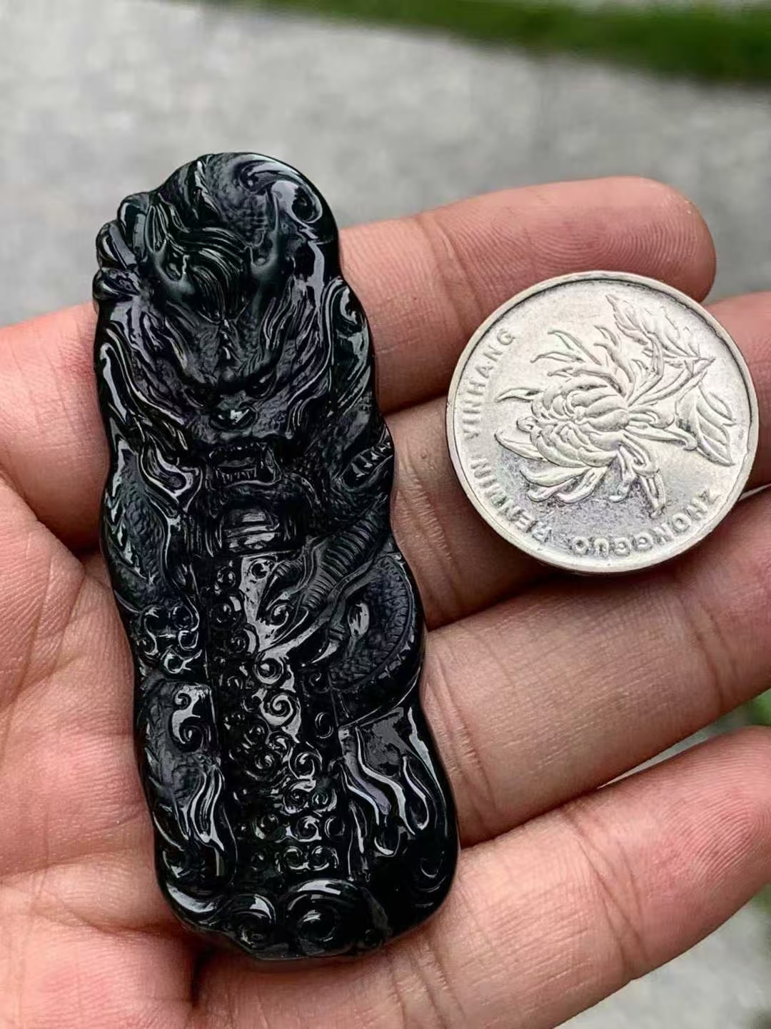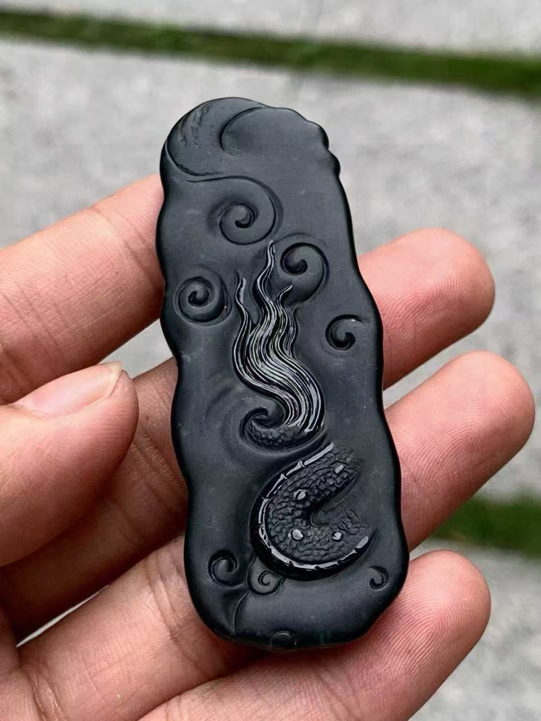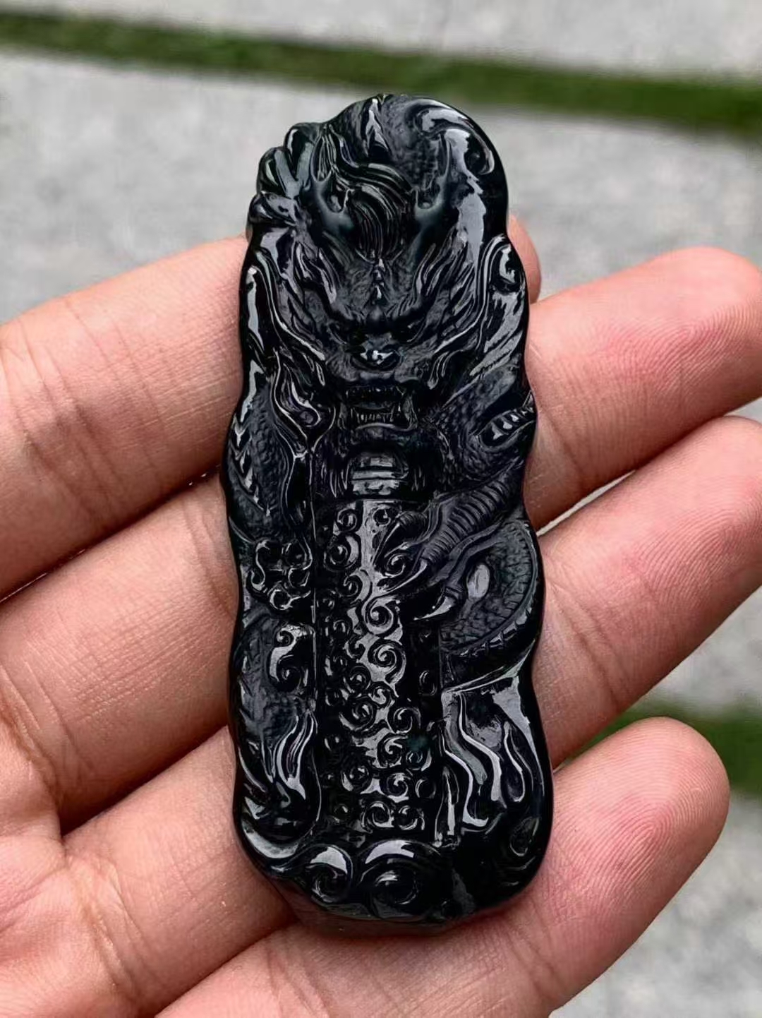 • 翡翠墨翠神龍柱,天然翡翠A玉, 緬甸玉, Jade, Jadeite