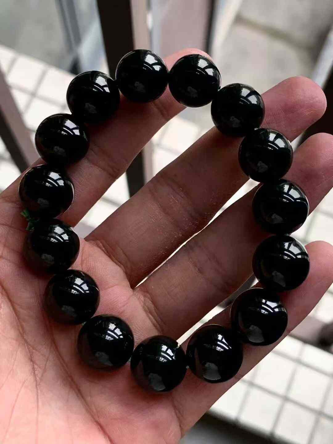 • 翡翠墨翠手串 (13.9mm直徑),天然翡翠A玉, 緬甸玉, Jade, Jadeite