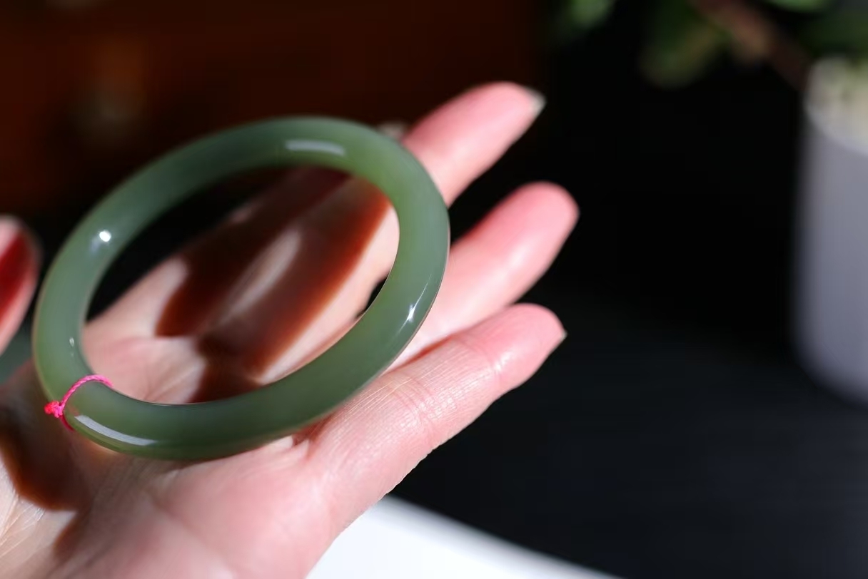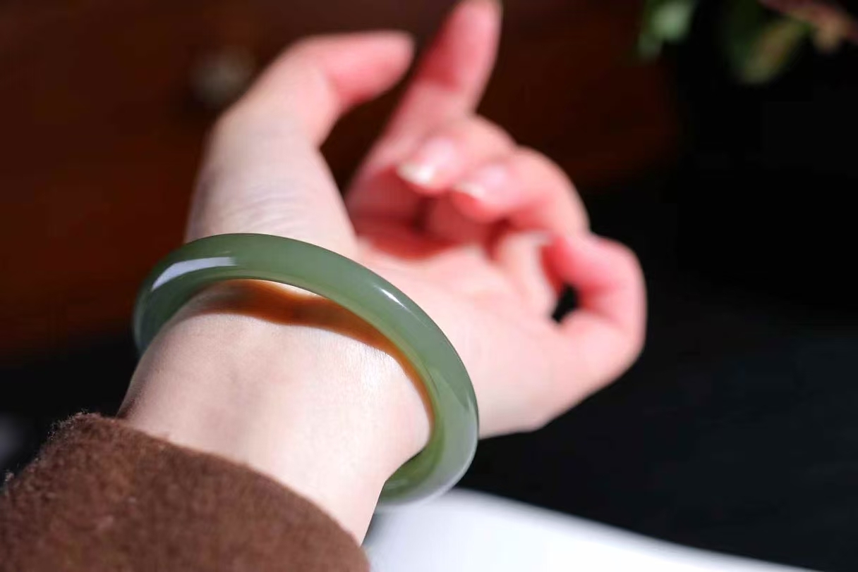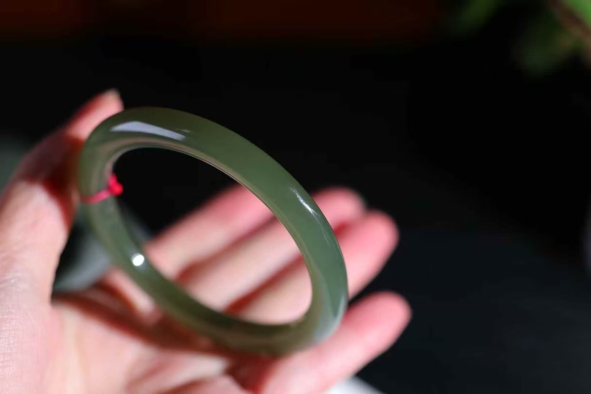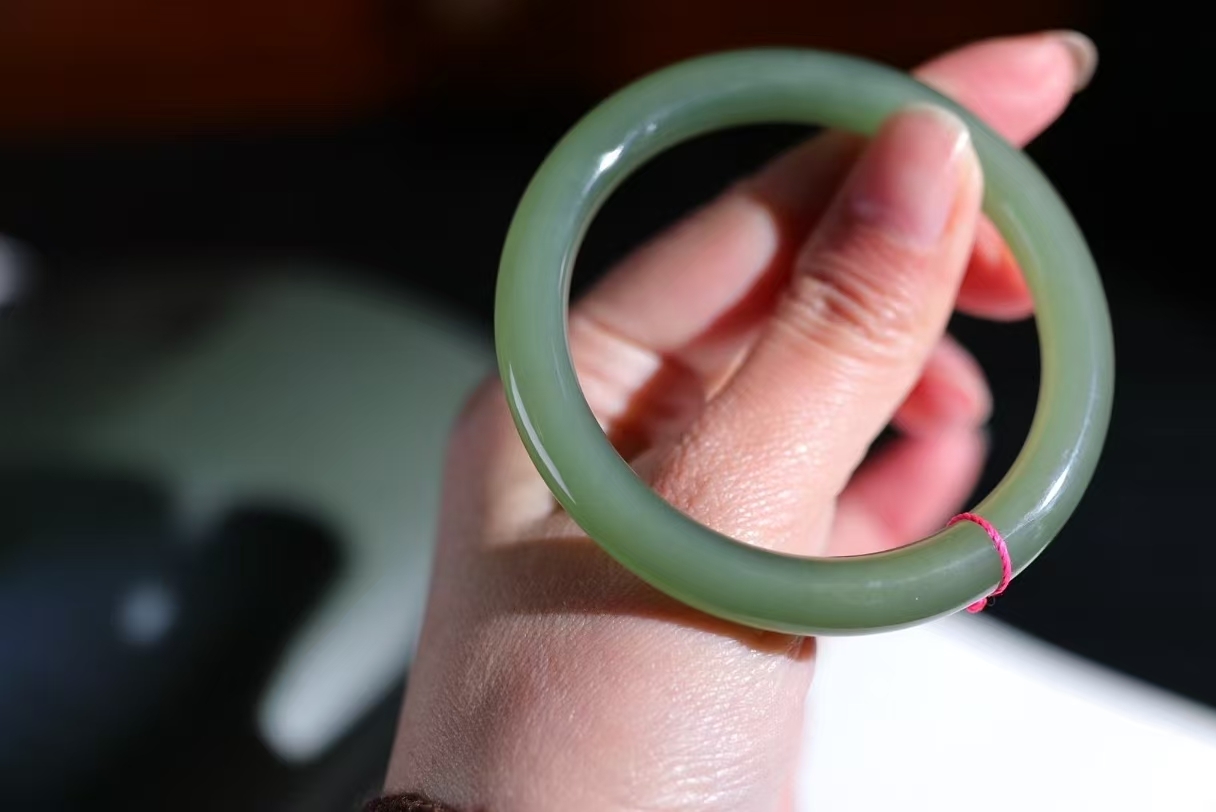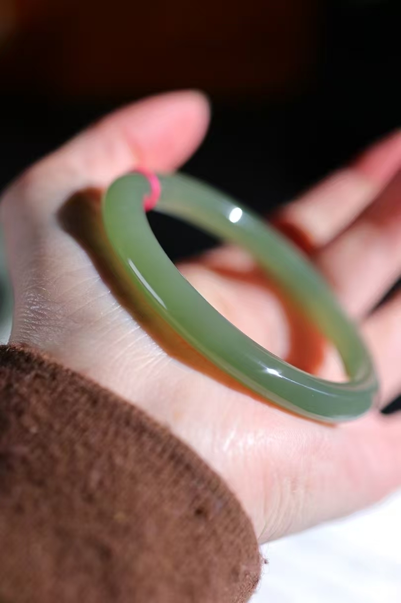 • 和田玉湖水綠手鐲,天然和田玉軟玉
