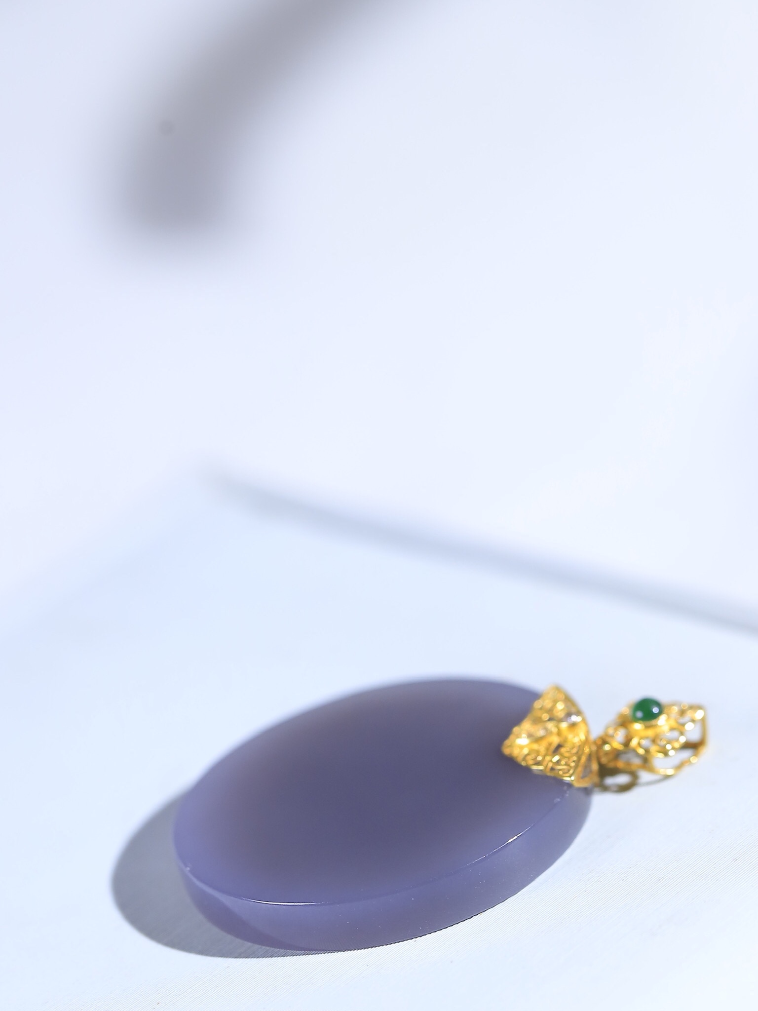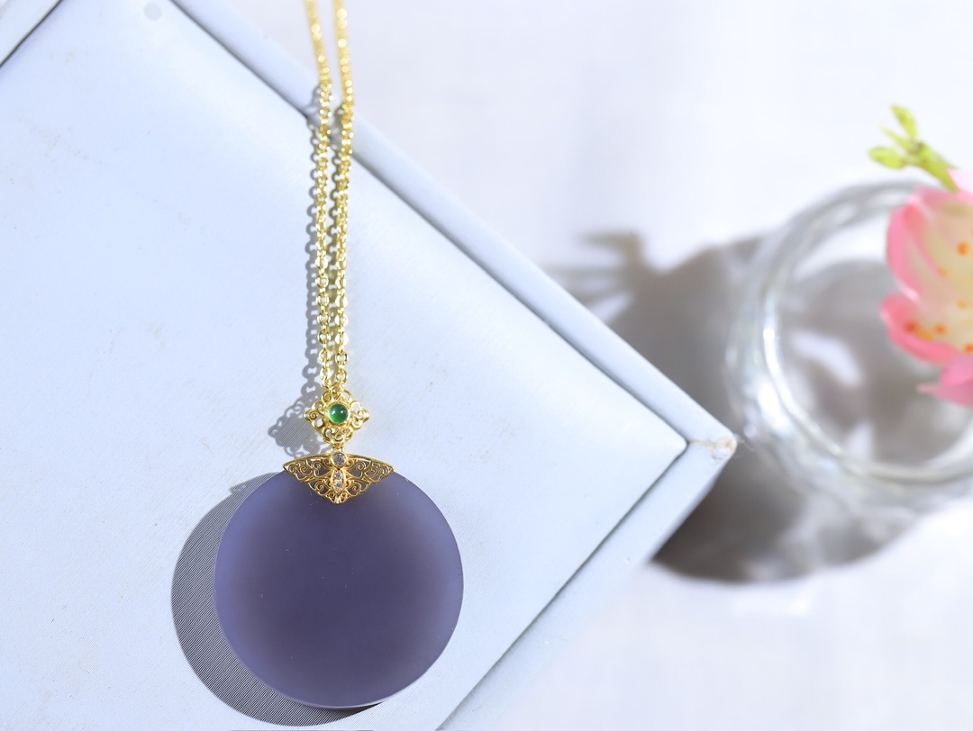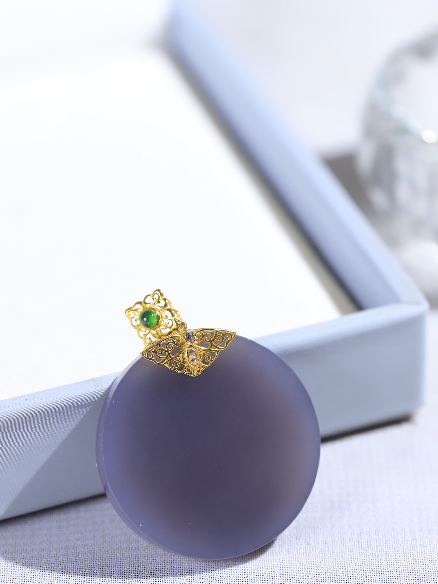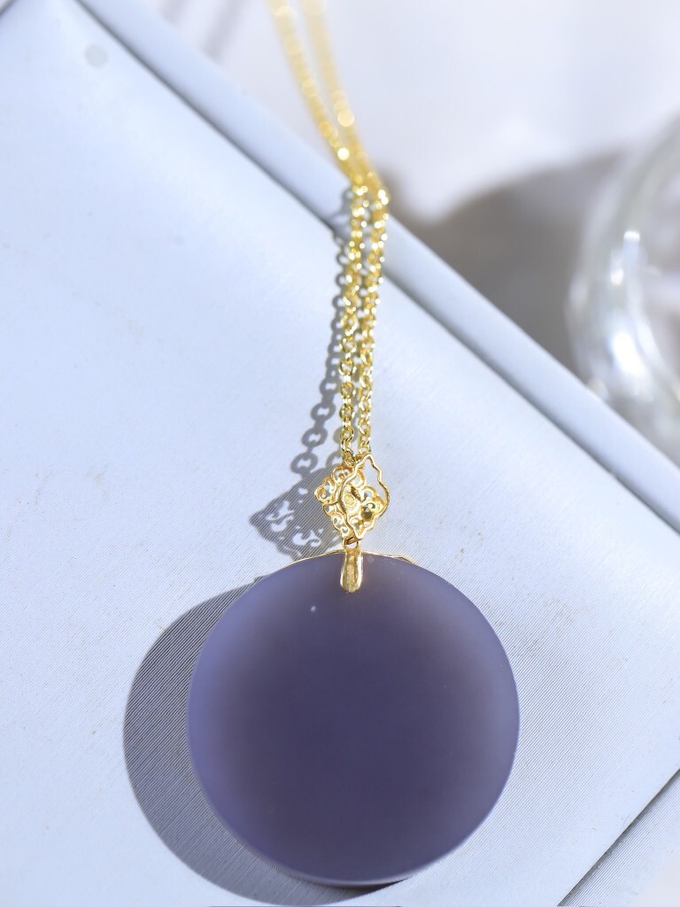 123140 和田玉煙紫平安圓牌掛件 (26mm直徑)