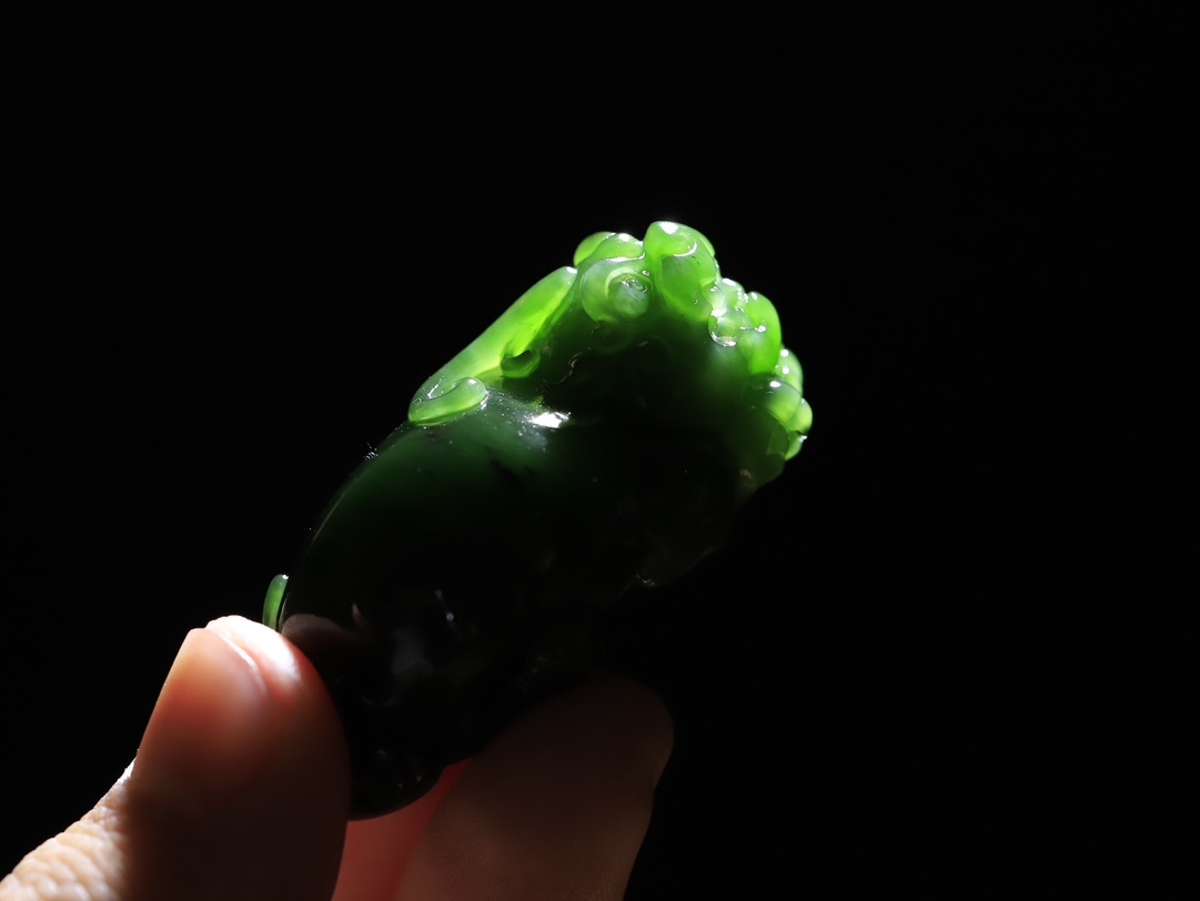 • 和田玉碧玉招財貔貅掛件,天然和田玉軟玉