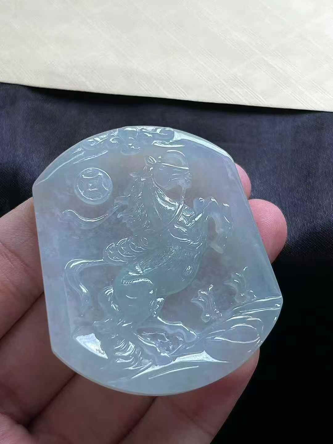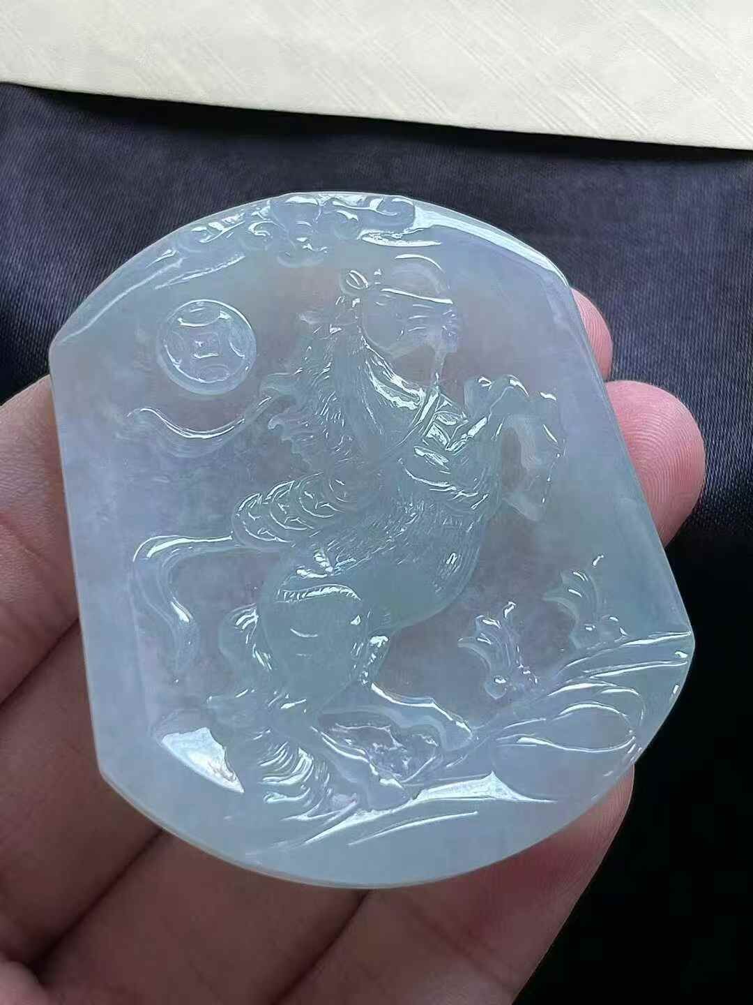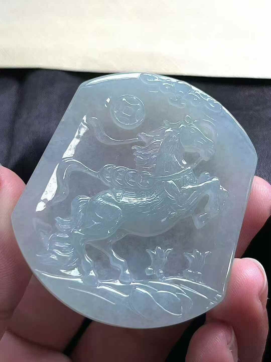 • 翡翠生肖馬牌,天然翡翠A玉, 緬甸玉, Jade, Jadeite
