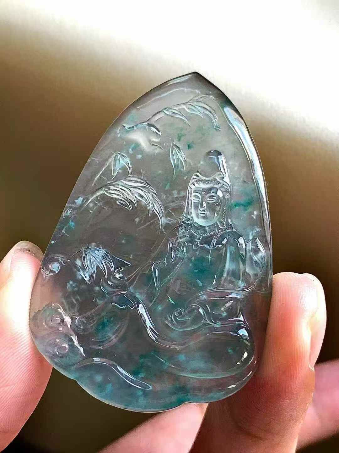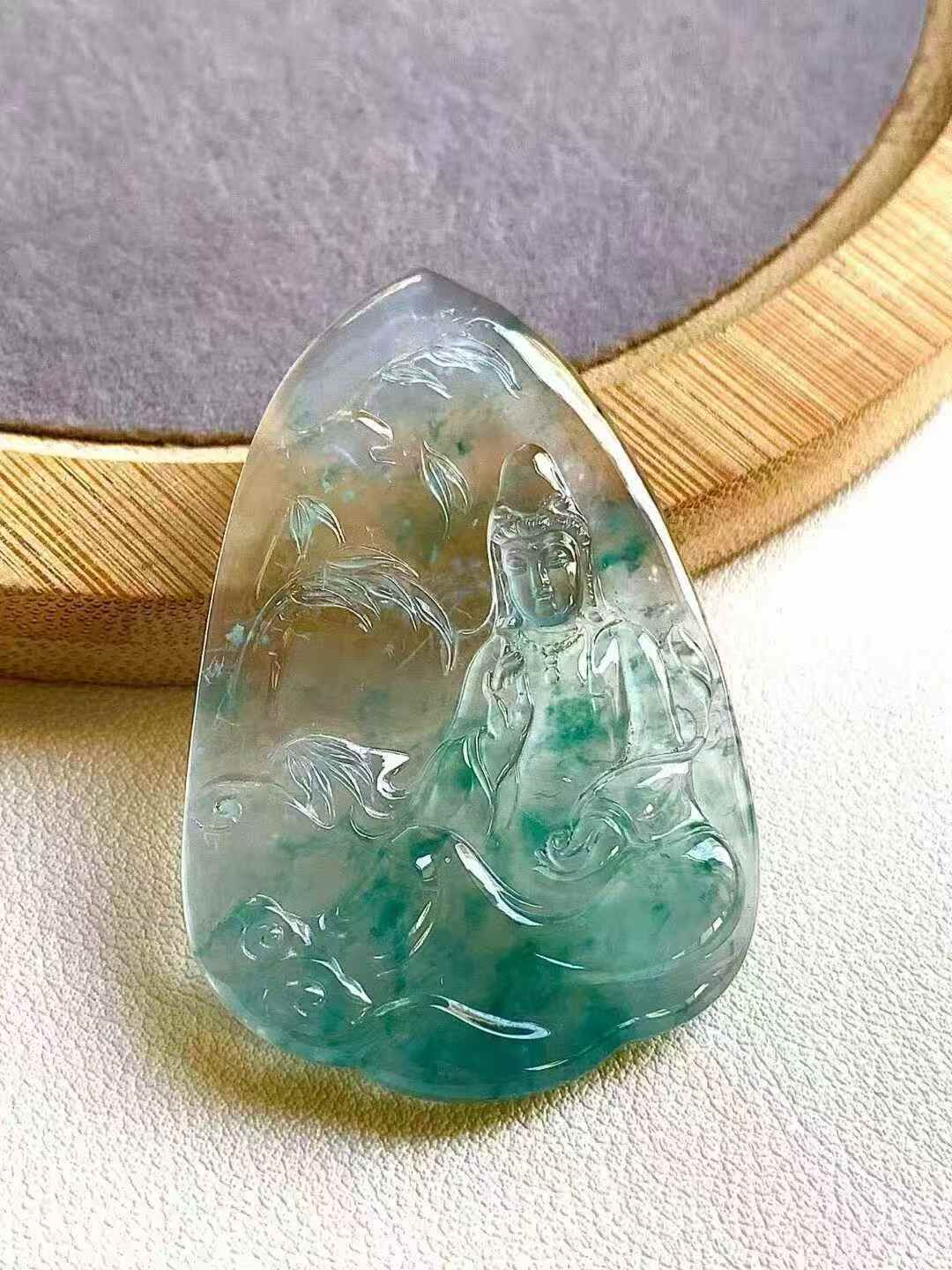 • 翡翠觀音牌,天然翡翠A玉, 緬甸玉, Jade, Jadeite