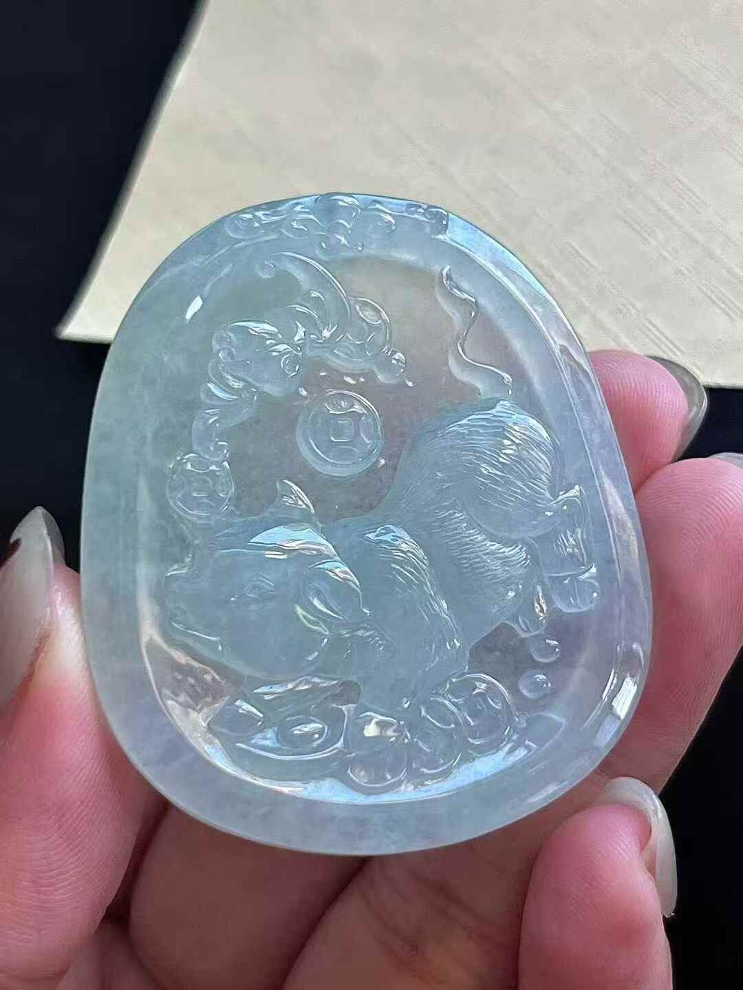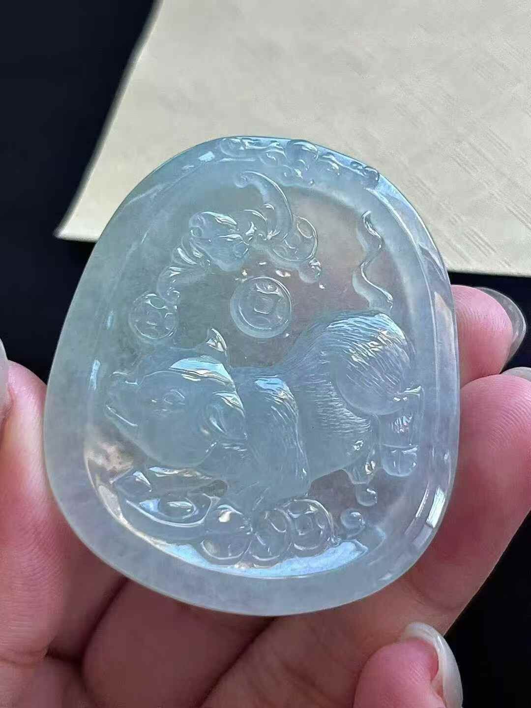 • 翡翠生肖豬牌,天然翡翠A玉, 緬甸玉, Jade, Jadeite