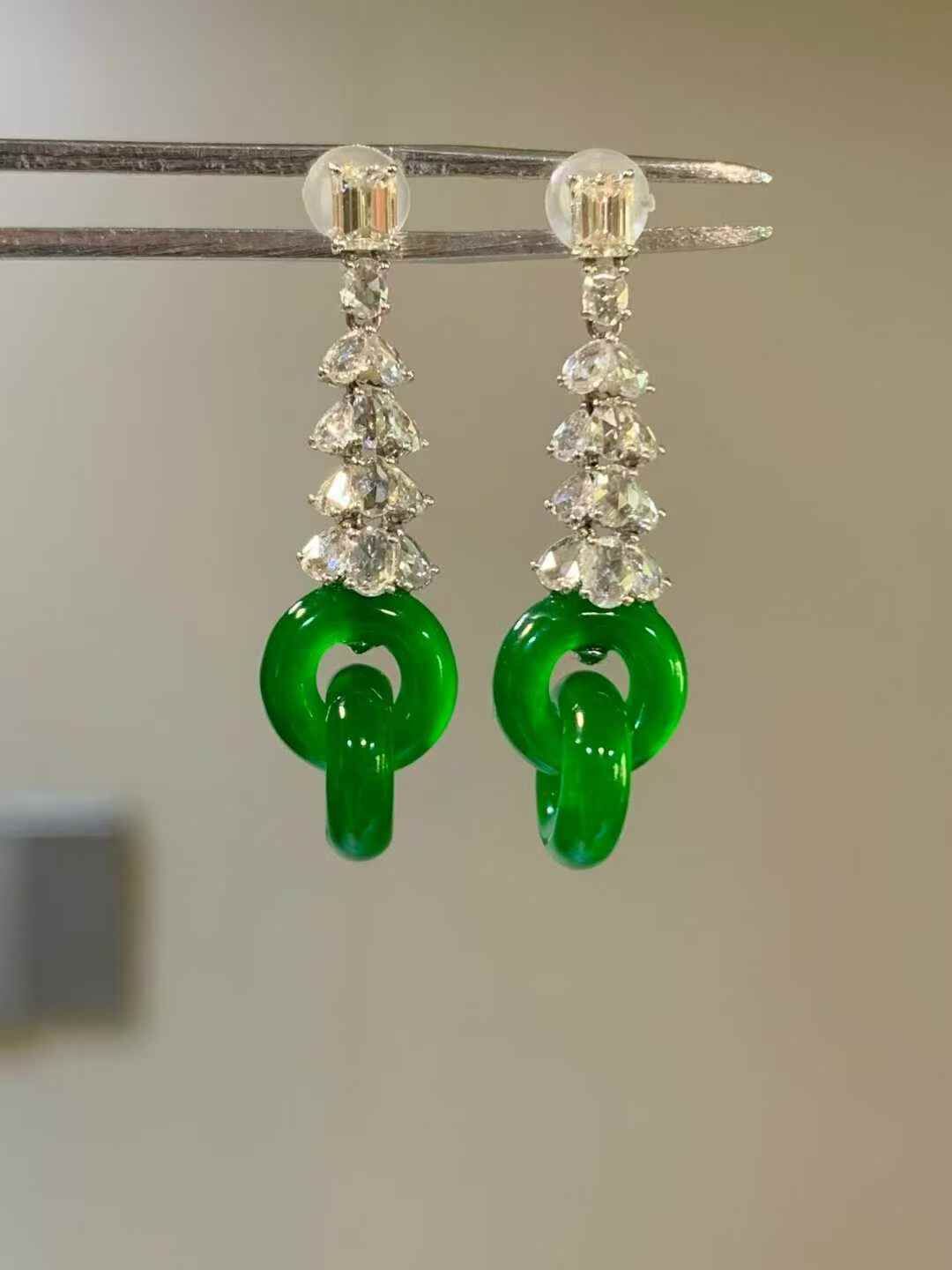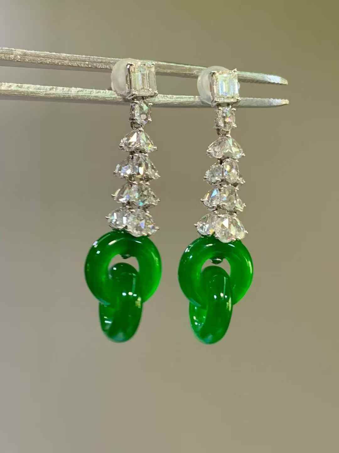 • 翡翠玉環耳墜一對,天然翡翠A玉, 緬甸玉, Jade, Jadeite