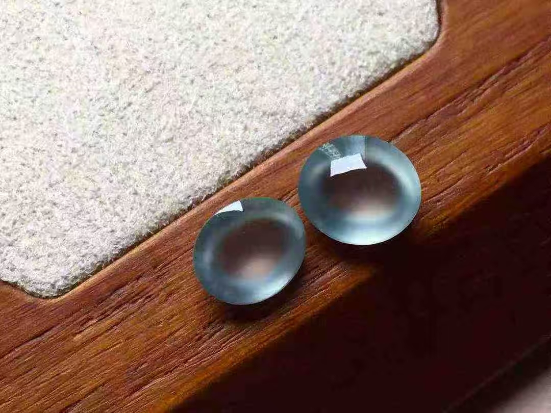 • 翡翠玻璃種蛋面一對,天然翡翠A玉, 緬甸玉, Jade, Jadeite