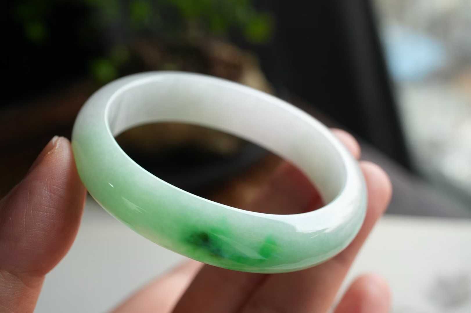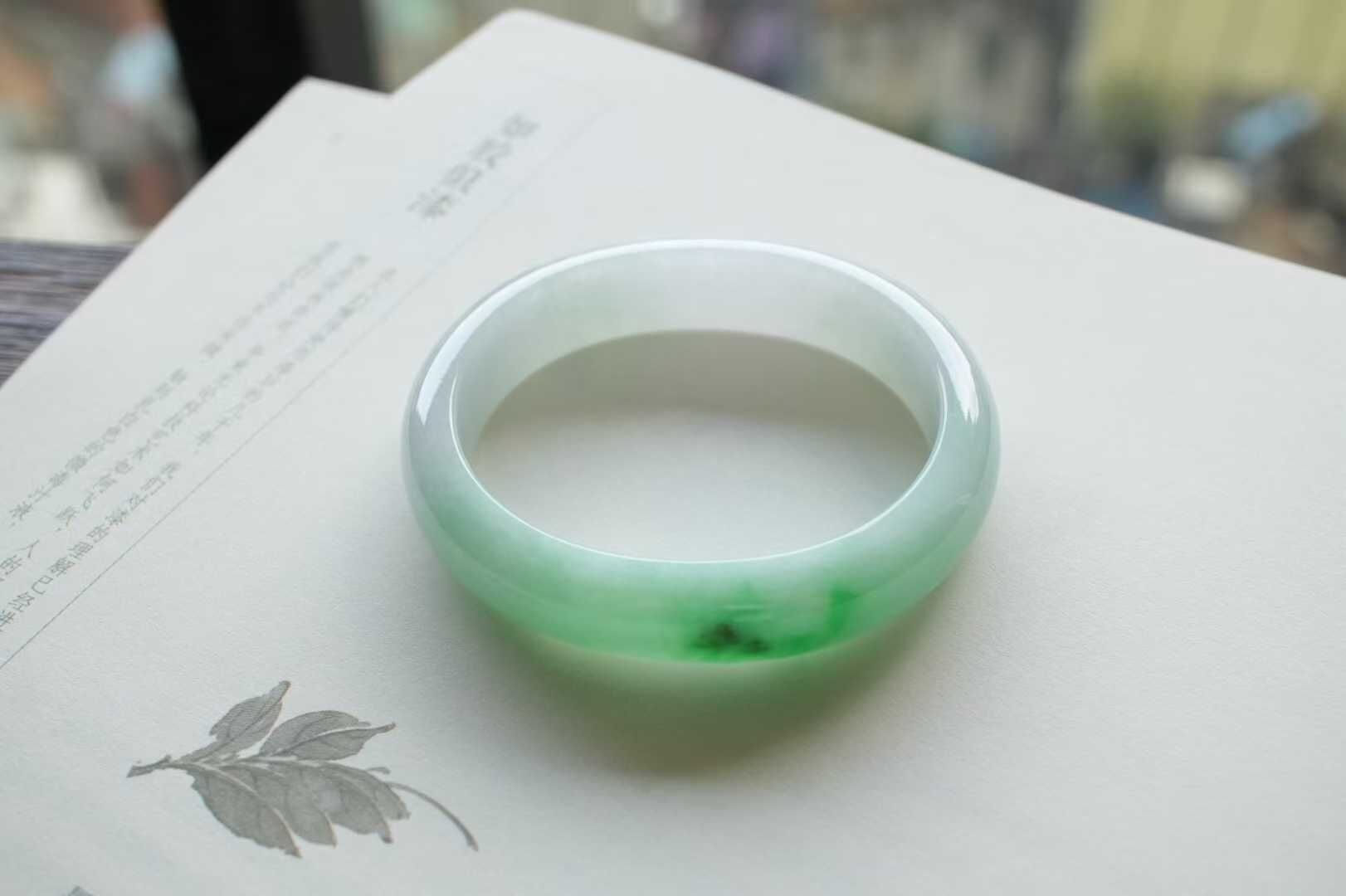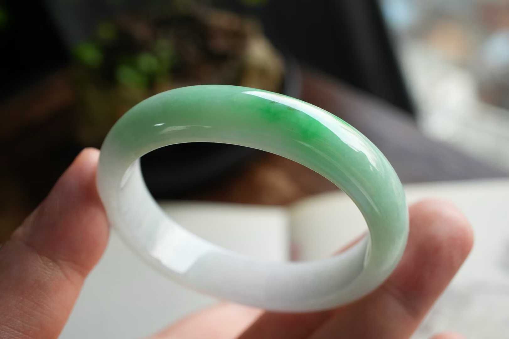 12382 50.5mm翡翠冰飄辣陽綠貴妃手鐲
