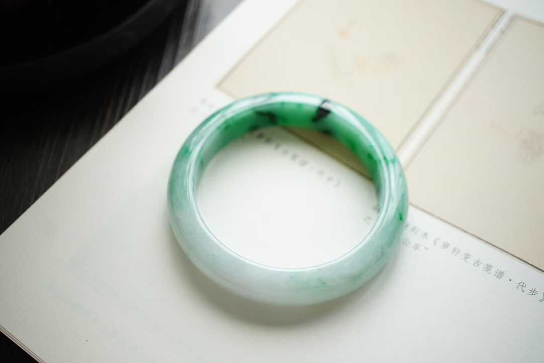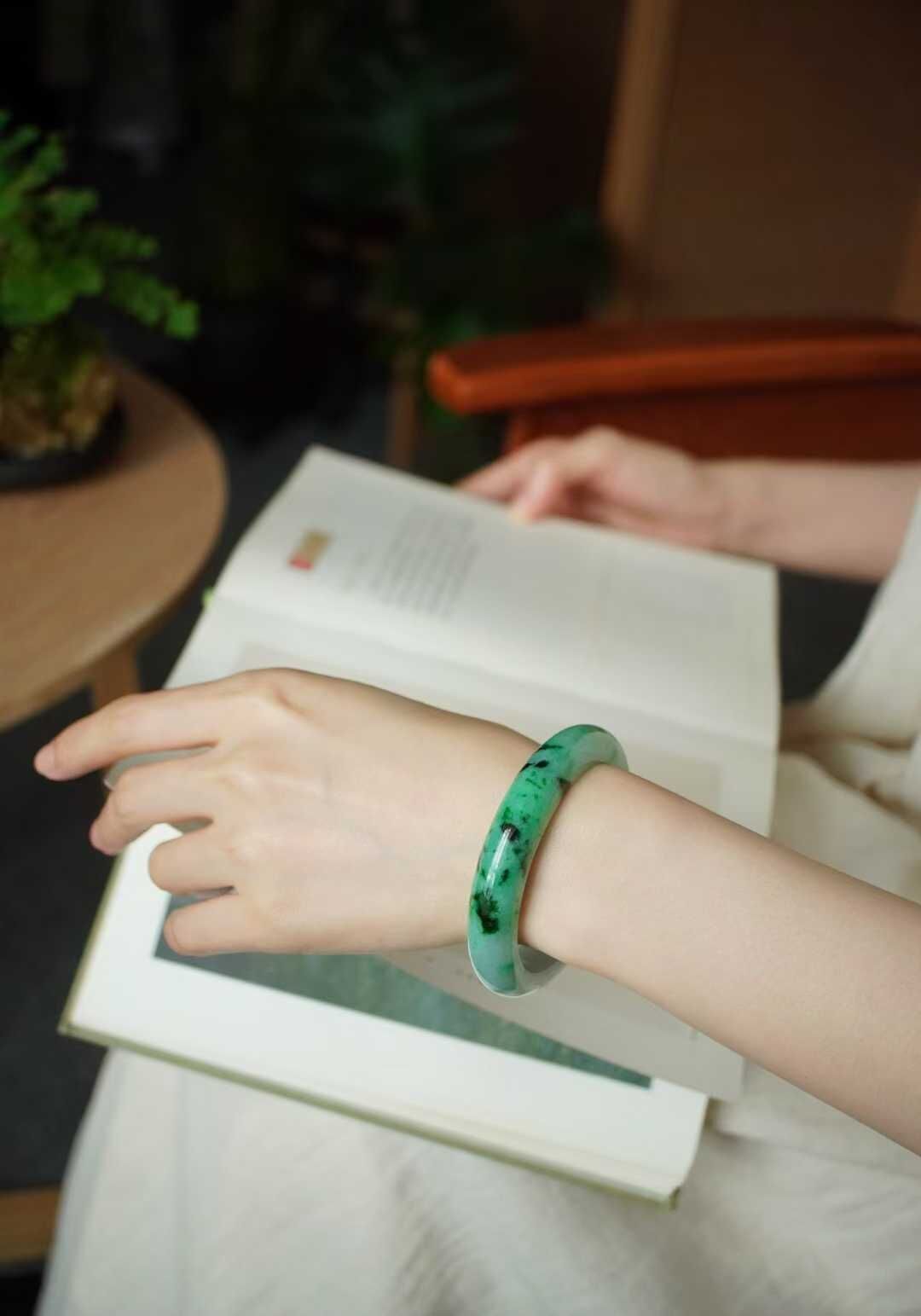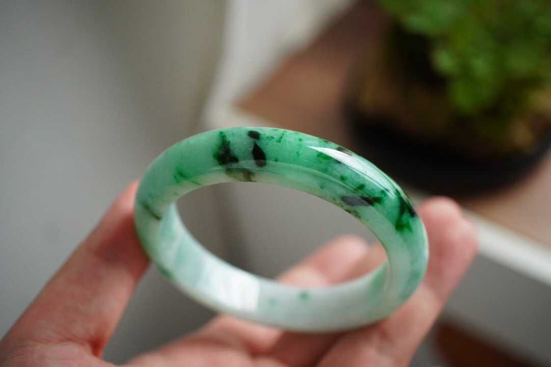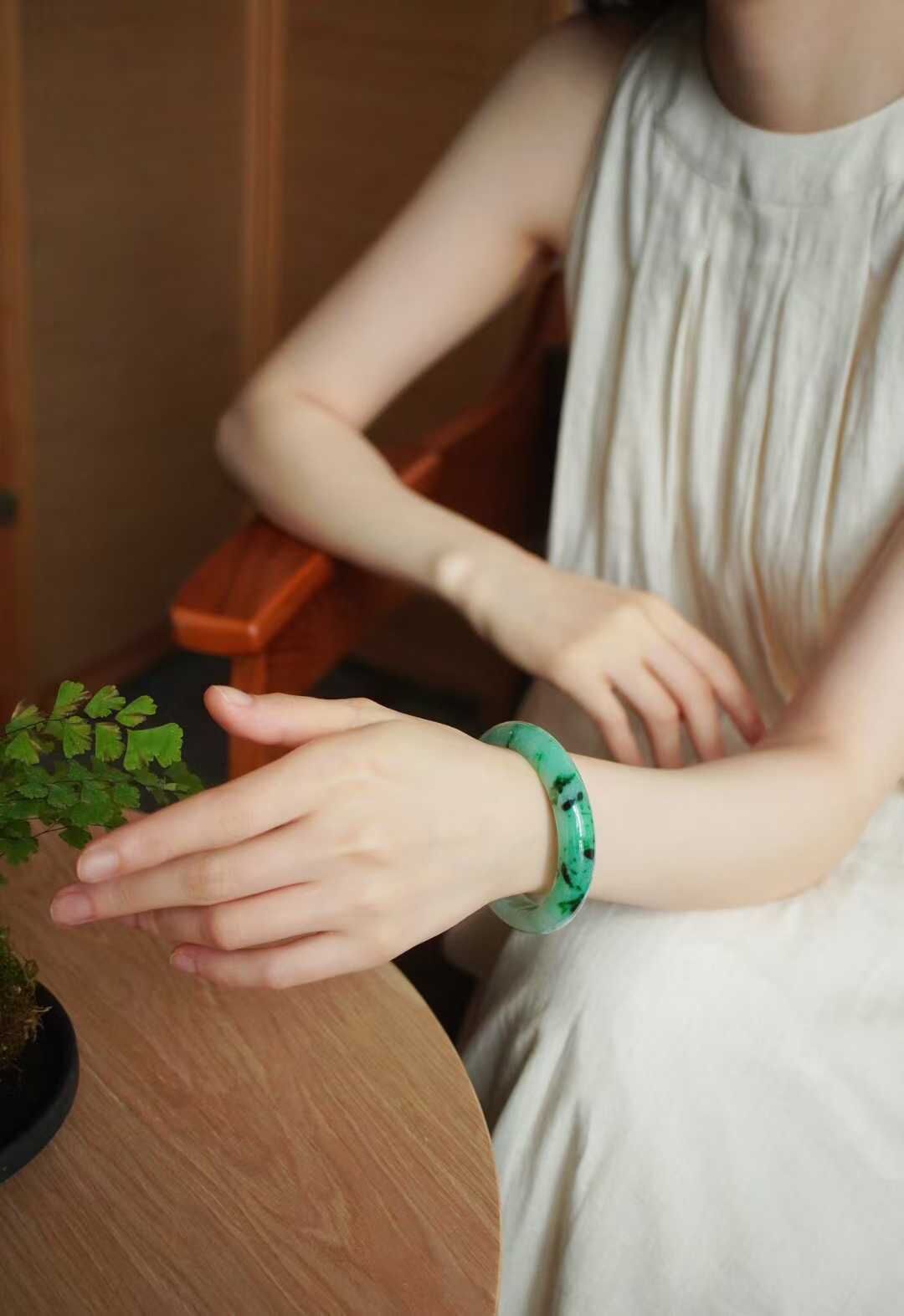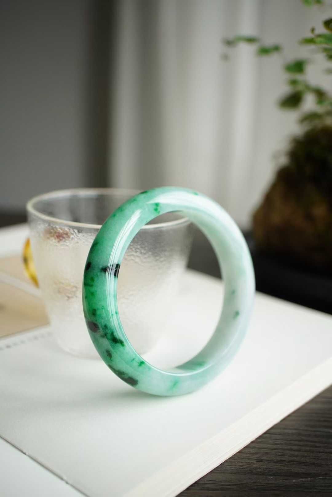 • 翡翠辣綠花正圈手鐲,天然翡翠A玉, 緬甸玉, Jade, Jadeite