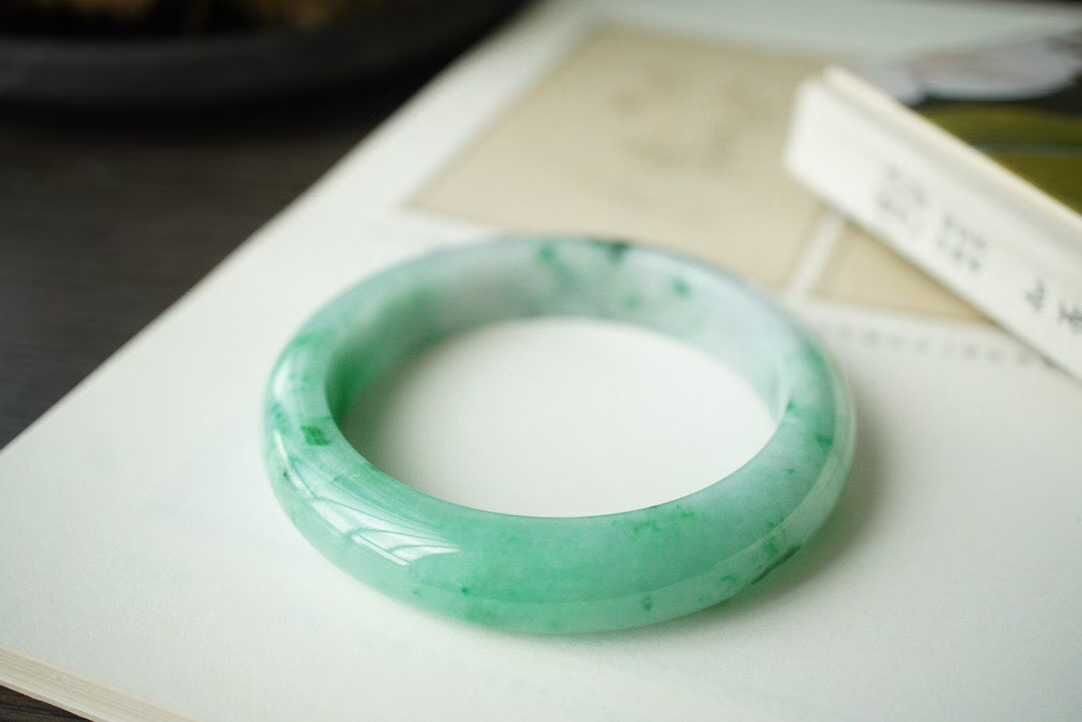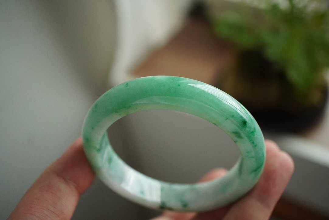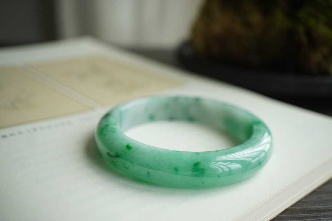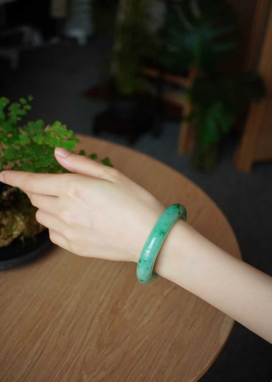 • 翡翠辣綠花正圈手鐲,天然翡翠A玉, 緬甸玉, Jade, Jadeite