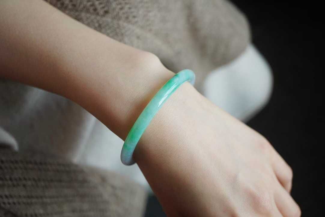 • 翡翠冰飄辣陽綠圓條手鐲,天然翡翠A玉, 緬甸玉, Jade, Jadeite