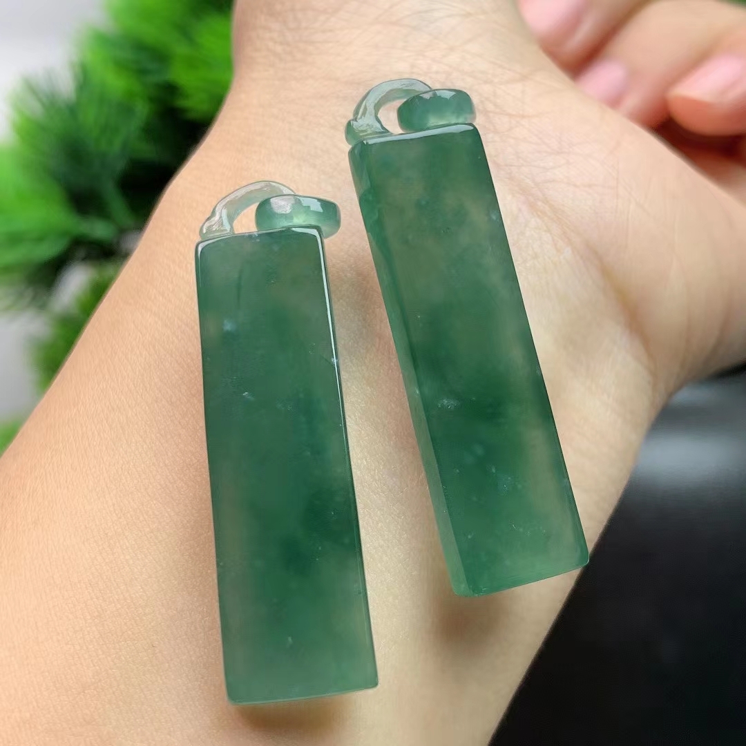 • 翡翠藍水悟道一對,天然翡翠A玉, 緬甸玉, Jade, Jadeite