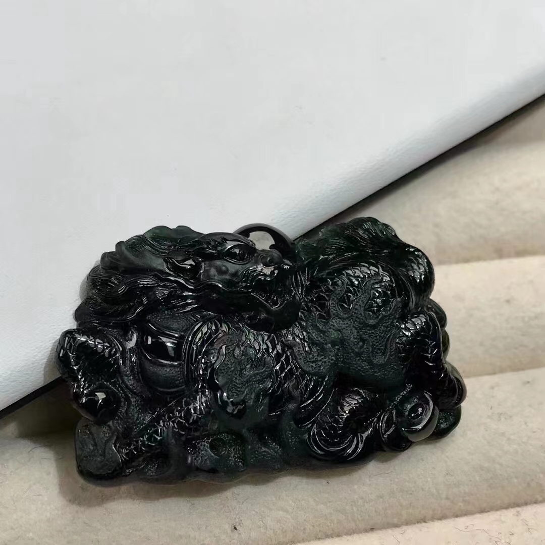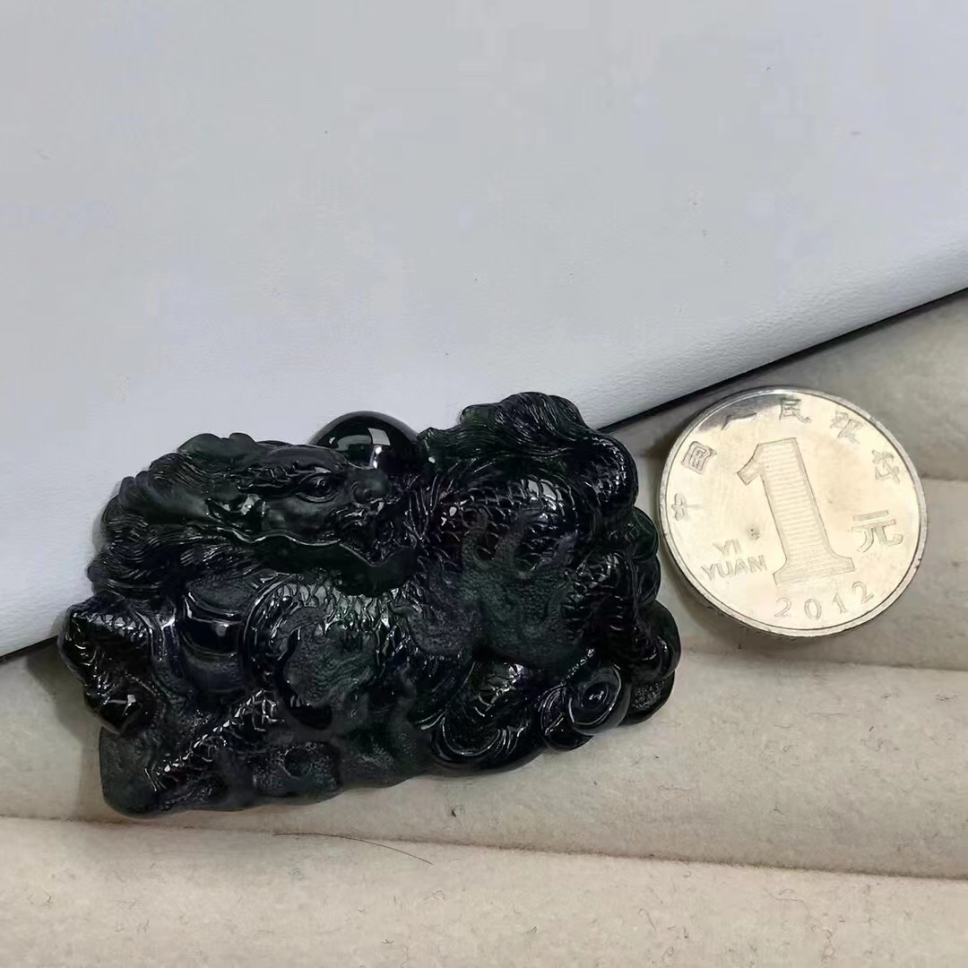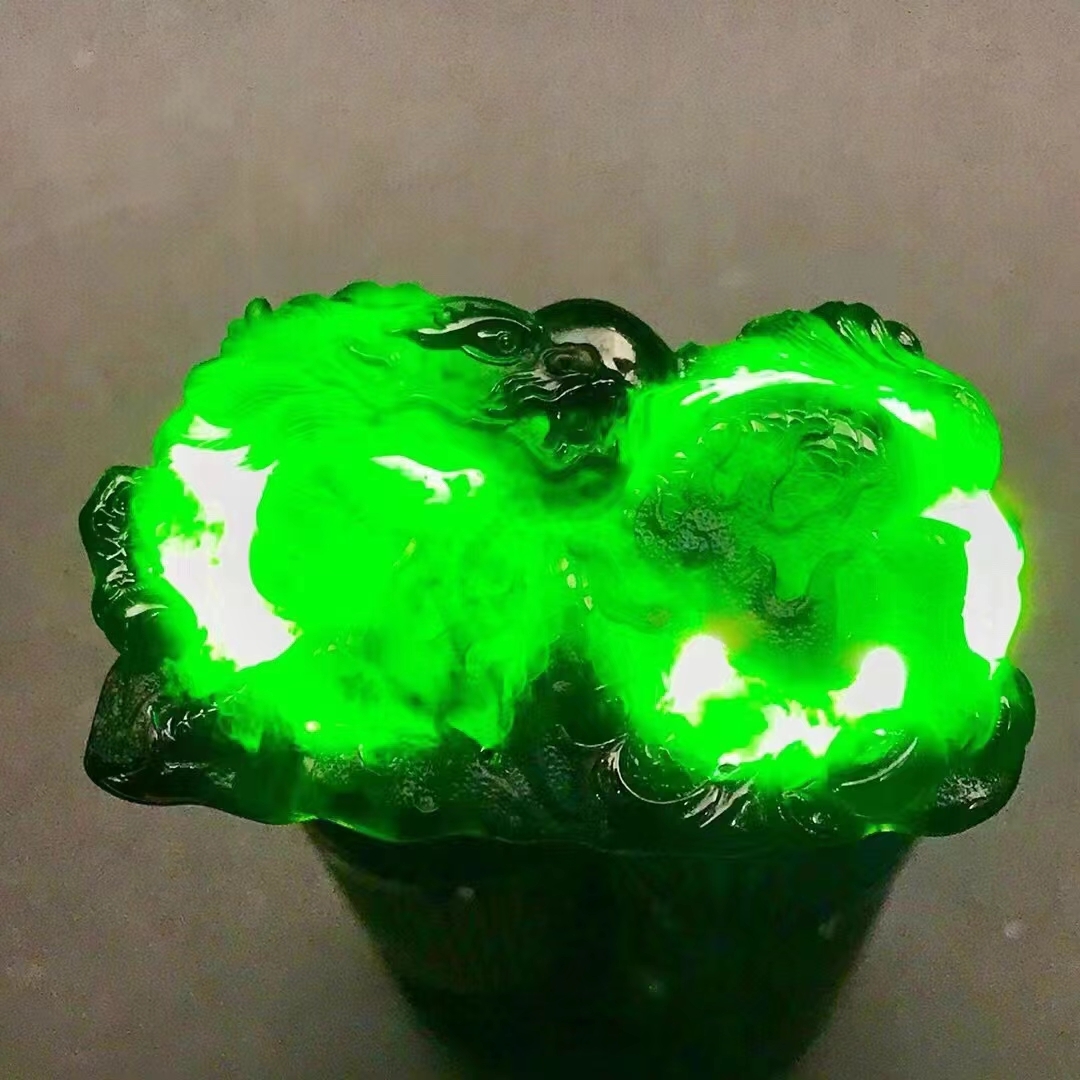 • 墨翠瑞獸麒麟,天然翡翠A玉, 緬甸玉, Jade, Jadeite